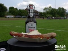 Im Sporthaus des SC Güntersen gab es gut gekühlte Flaschengetränke, darunter drei Biersorten. Auf der Terrasse wurden Bratwürste verkauft. Alles zu sportplatzüblichen, kleinen Preisen. Note: 3+.
