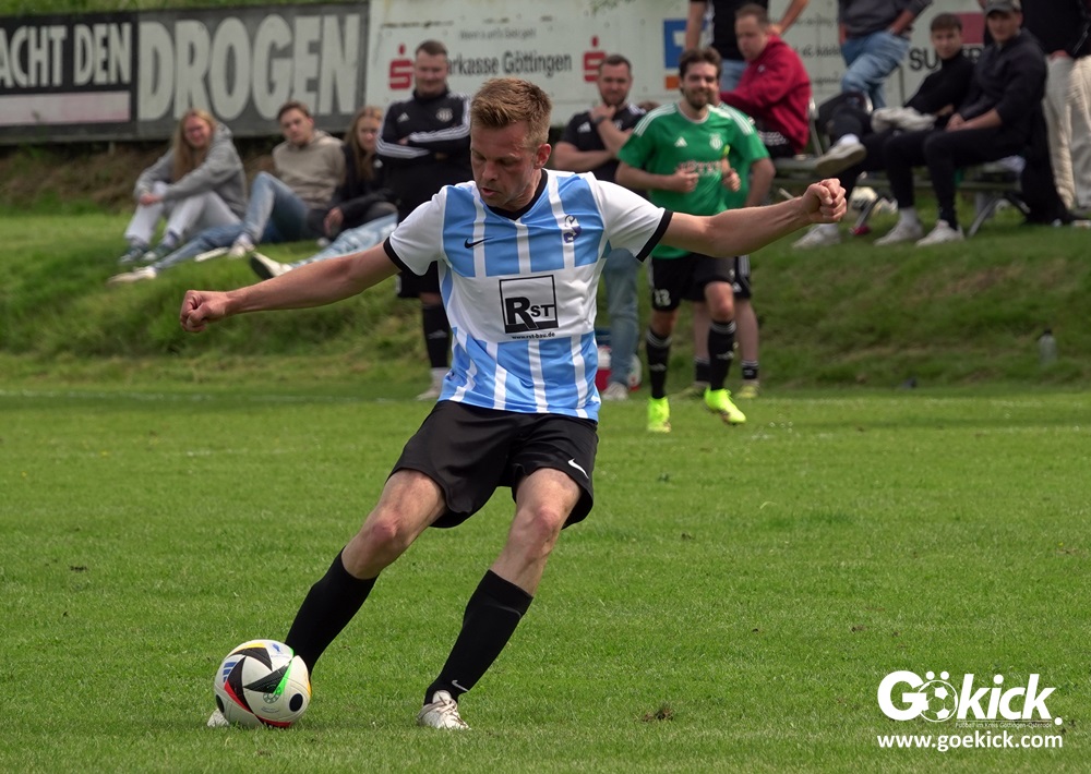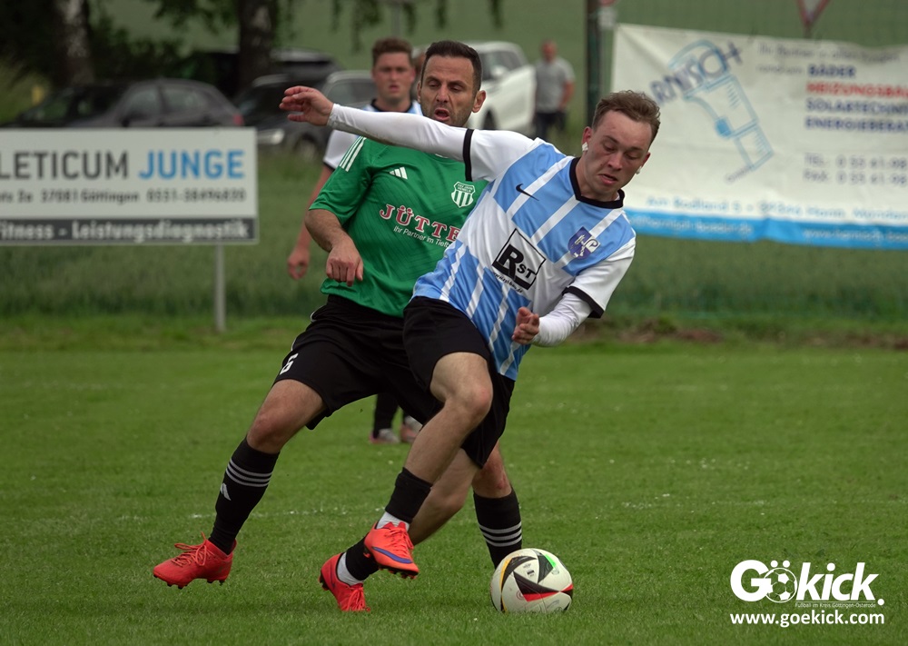 Der Gastgeber war im ersten Spielabschnitt leicht überlegen, der TSV verlegte sich hingegen auf das Kontern. Dennoch war das Spiel ausgeglichen mit Chancen auf beiden Seiten. Für die Führung der Hausherren sorgte Kapitän Sascha Iloge mit einem stark getretenen, direkten Freistoß aus 19 Metern über die Mauer in den Winkel. Allein dieses schöne Tor war die Reise nach Güntersen wert. Mit der knappen, aber verdienten Führung für den FC ging es in die Halbzeitpause.
