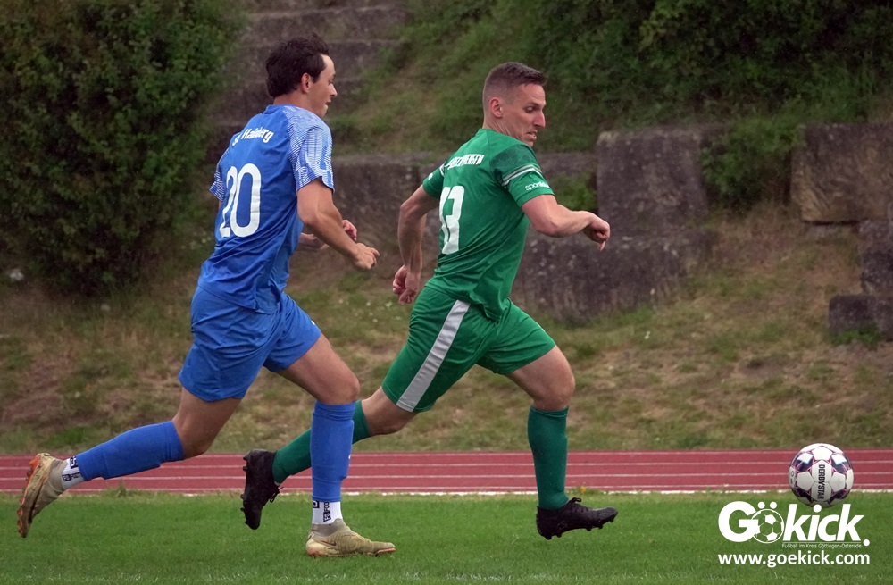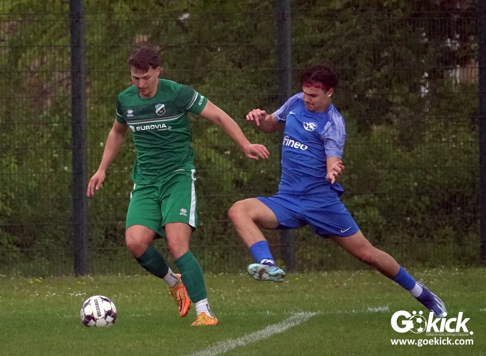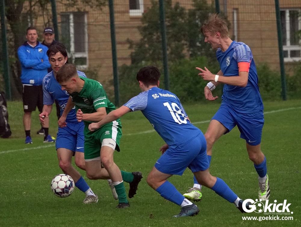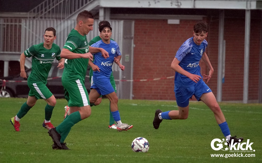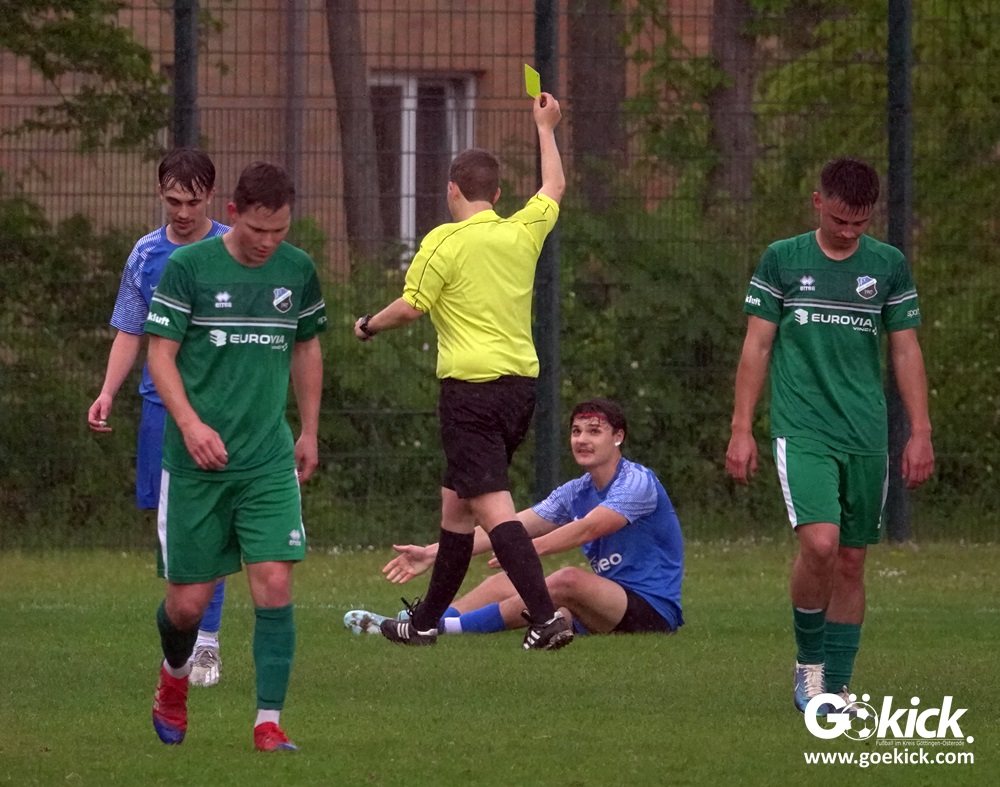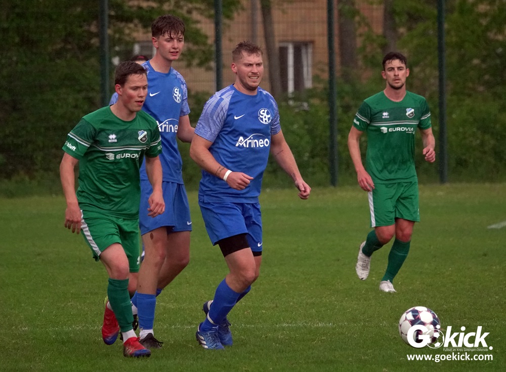 Der Gast ging nach elf Minuten durch Philipp Papenberg in Führung. Nach einem langen Eckstoß wurde der Ball wieder in den Fünfmeterraum der Hainberger geköpft, wo der Torschütze nur noch den Fuß hinhalten musste. Schlechte Nachrichten erhielt das Hainberger Trainerduo nach 26 Minuten. Daniel Laurin Petzke wurde wegen wiederholtem Foulspiel mit Gelb-Roter Karte des Feldes verwiesen. Bis zum Halbzeitpfiff blieb es bei der knappen Gäste-Führung.