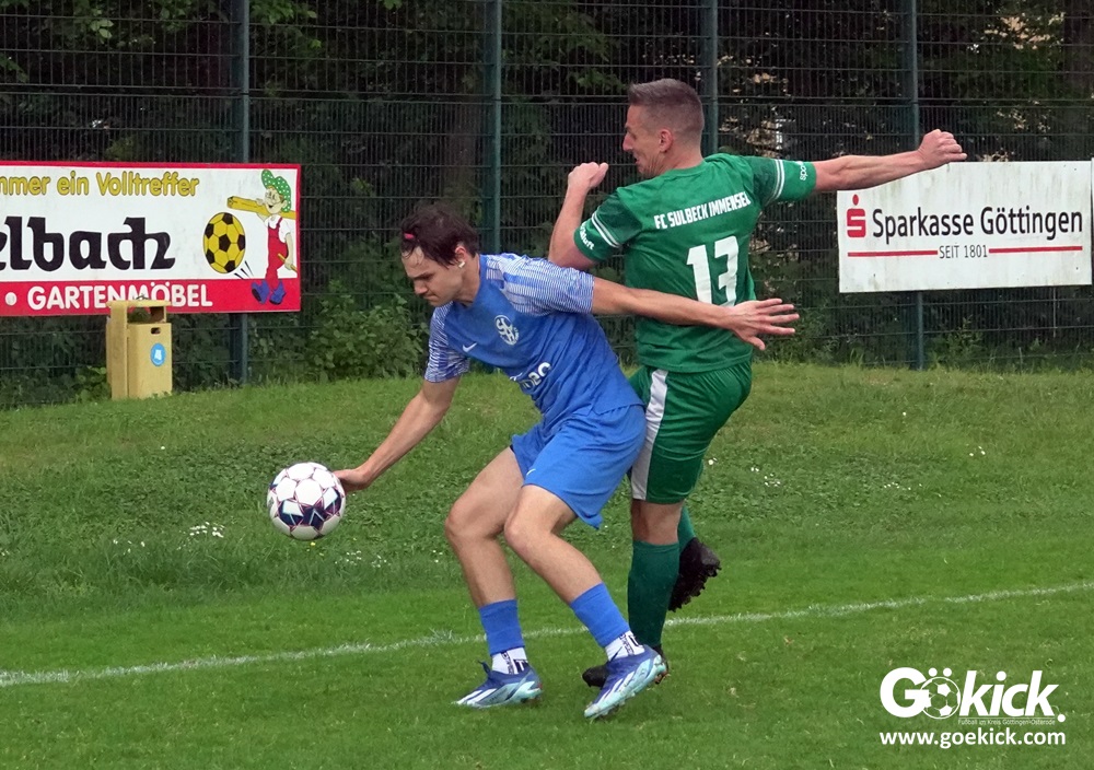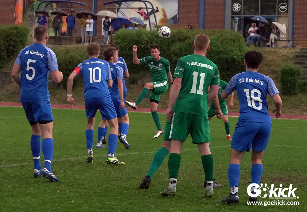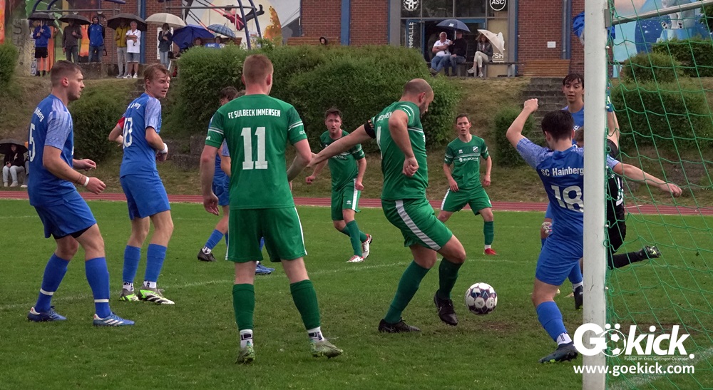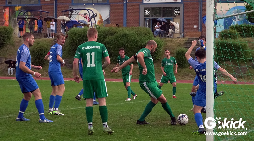 In einem Nachholspiel der Bezirksliga empfing am Pfingstsamstag der SC Hainberg den stärksten Bezirksliga-Vertreter des Nachbarkreises, den FC Sülbeck/Immensen. Nach 90 abwechslungsreichen Minuten trennten sich die Teams 2:2-unentschieden. Die Gastgeber mussten dabei über eine Stunde in Unterzahl gestalten und dennoch wurde ihnen der mögliche Sieg in allerletzter Sekunde entrissen. Hainberg rangiert zwei Spieltage vor Saison-Ende mit 51 Punkten auf Platz sieben, der Gast mit vier Punkten mehr auf Platz fünf.