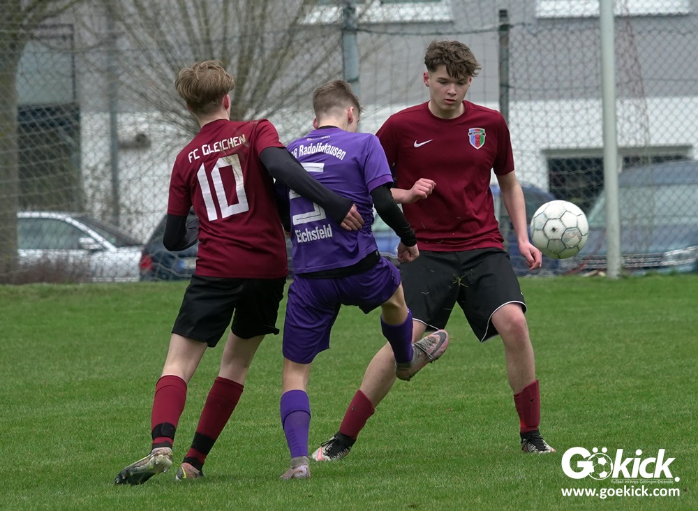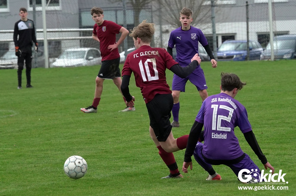 Am vergangenen Samstag-Morgen empfing in der B-Jugend-Kreisliga Nord die noch punktlose JSG Radolfshausen/Eichsfeld auf dem Sportplatz in Desingerode den Tabellenführer FC Gleichen. Am Ende der Partie siegte der Gast erwartungsgemäß und verdient mit 4:0 (2:0). Der FC Gleichen bleibt mit dem Sieg weiter auf dem Weg in Richtung Rückkehr in die Bezirksliga. Der Gastgeber bleibt, trotz großen Kampfes ohne einen Zähler auf Platz sechs der Liga.