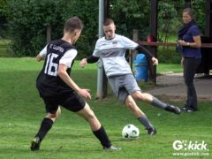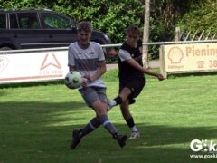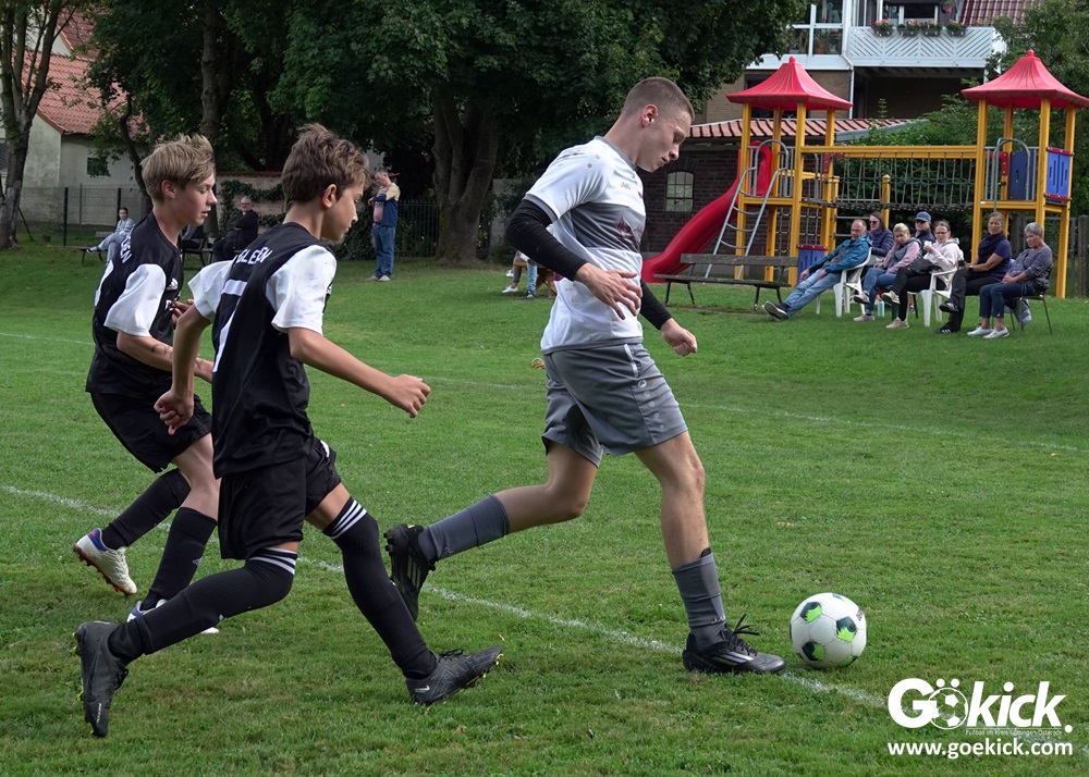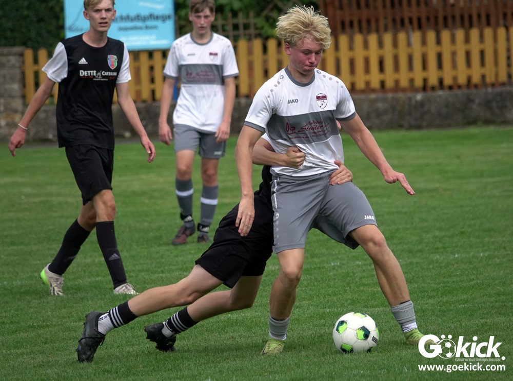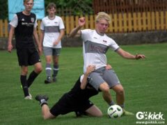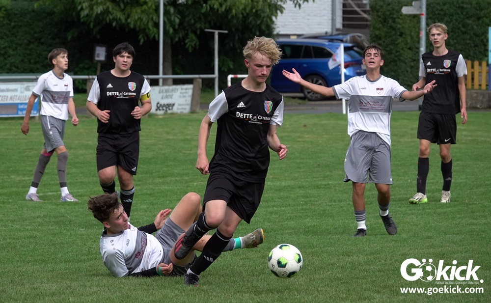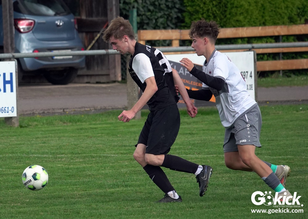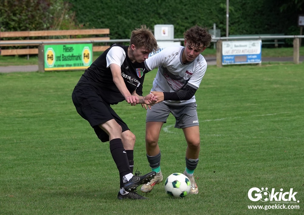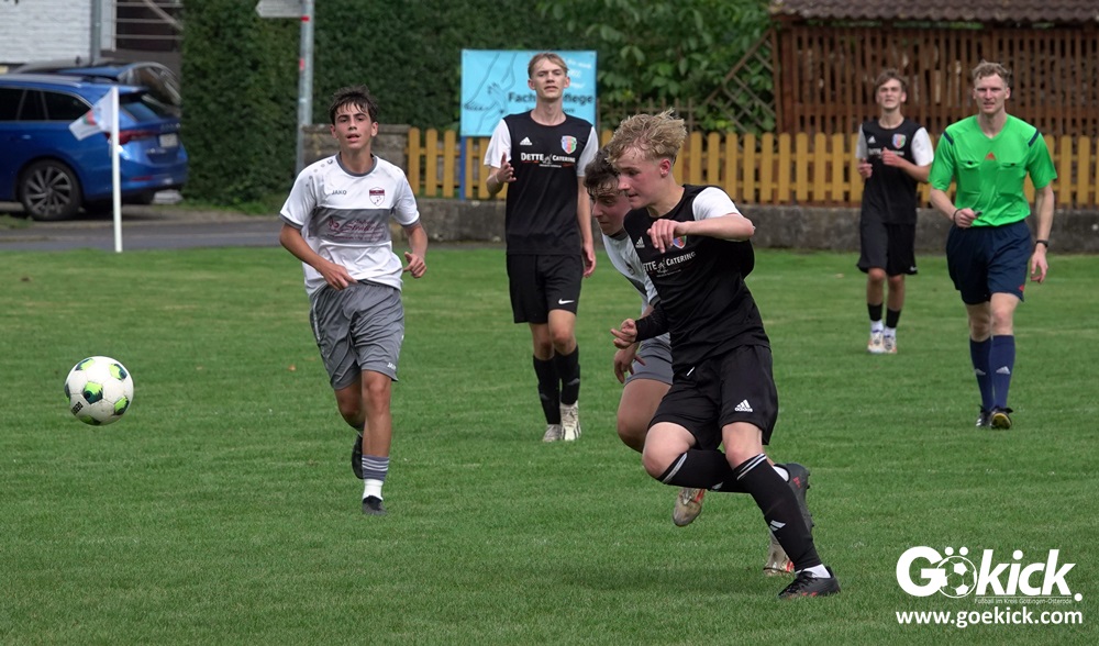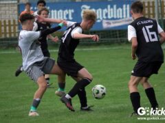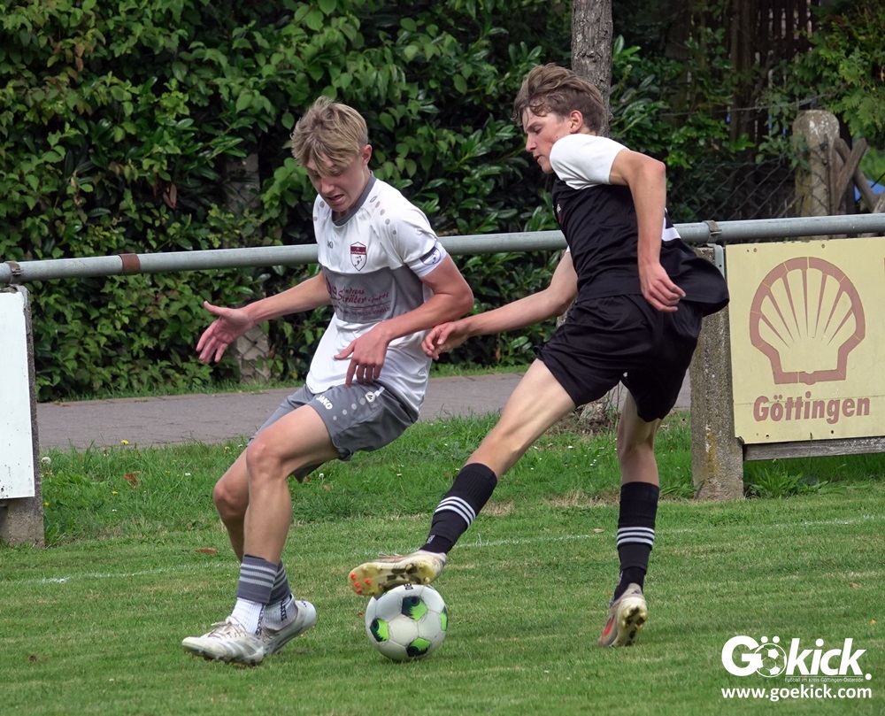 Doch der Gastgeber blieb im Spiel. Kurz vor der Pause sorgte ein Fehler in der Defensive der Gäste für den Anschluss. Ein weiter Freistoß von Johann Gräve führte zu einem missratenen Kopfball-Rückpass, Mathis Koehn war hellwach, spritzte dazwischen und stellte in der 38. Minute auf 1:2. Wenig später beendete der gut leitende Schiedsrichter Marvin Ralf Koschinski die erste Halbzeit.