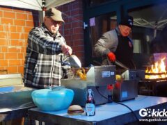 Erneut verdienten sich die Veranstalter ein großes Lob für ihr Catering. Innerhalb der Halle wurde groß aufgefahren. Und auch vor dem Eingang zur Sporthalle bot das zuverlässige Grill-Team den Gästen Leckereinen vom Grill und aus der Fritteuse an – diesmal gab es sogar Steaks. Hervorragend und vorbildlich auch für andere Veranstalter!