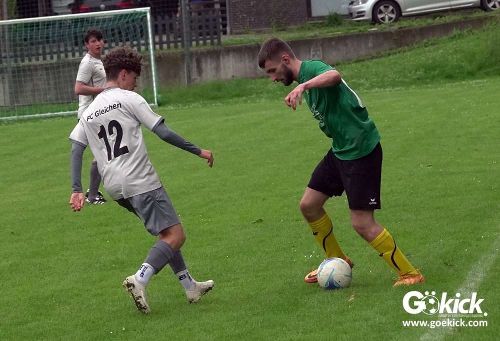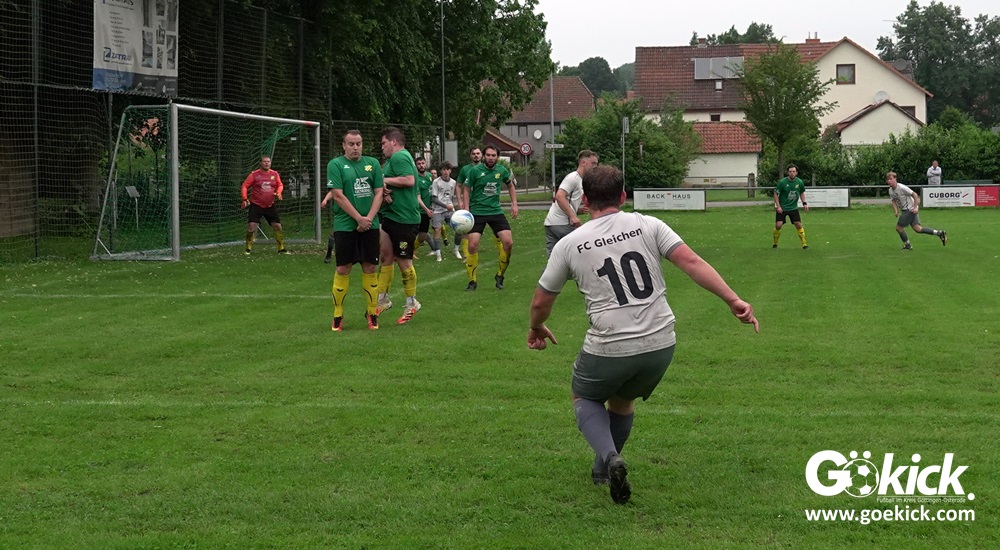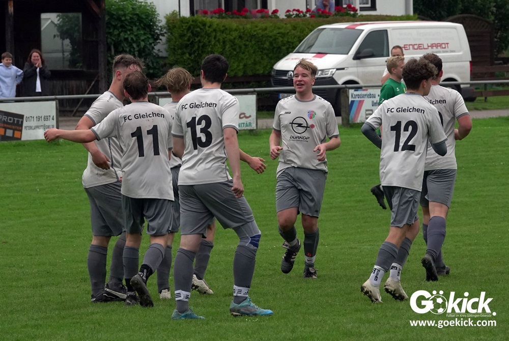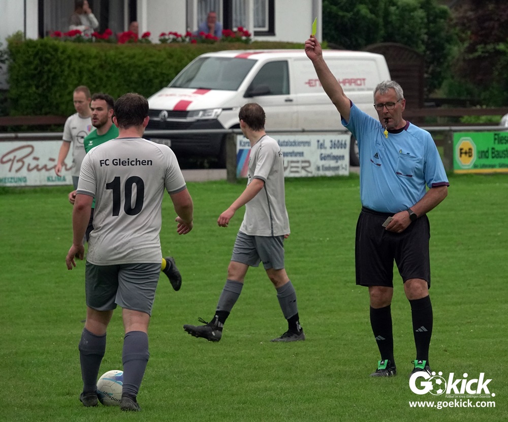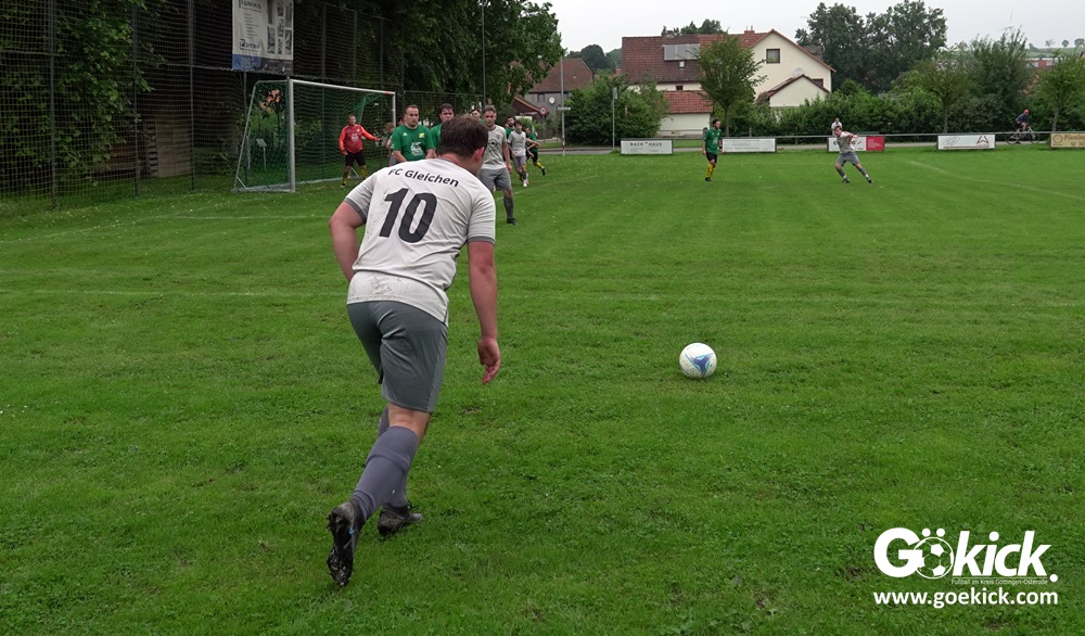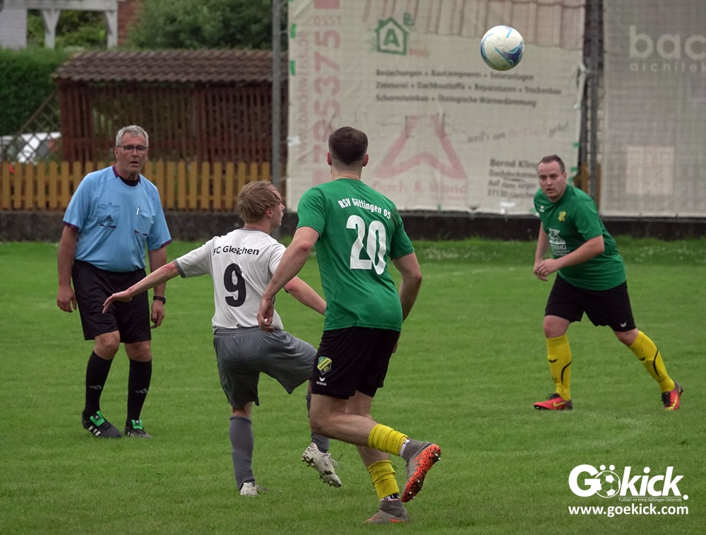 Der Favorit aus Geismar ging nach acht Minuten durch Louis Emme-Weiß mit 1:0 in Führung. Doch die Hausherren, diesmal mit nahezu vollständigem Kader – zuletzt mussten Altherren-Spieler und Frauen aushelfen – kamen durch Luka Hirschmann nach 22 Minuten zum 1:1-Ausgleich. Erneut war es in der 28. Spielminute Louis Emme-Weiß, der den RSV mit 2:1 in Front brachte. Aber die Gleichener ließen sich nicht abschütteln. Kilian Kreis besorgte in der 34. Spielminute den 2:2-Ausgleich. Ein Eigentor war dafür verantwortlich, dass der Favorit mit einer Führung in die Halbzeitpause ging – Jan-Cedric Maussang traf bei seinem Rettungsversuch in die eigenen Maschen.