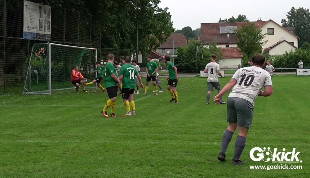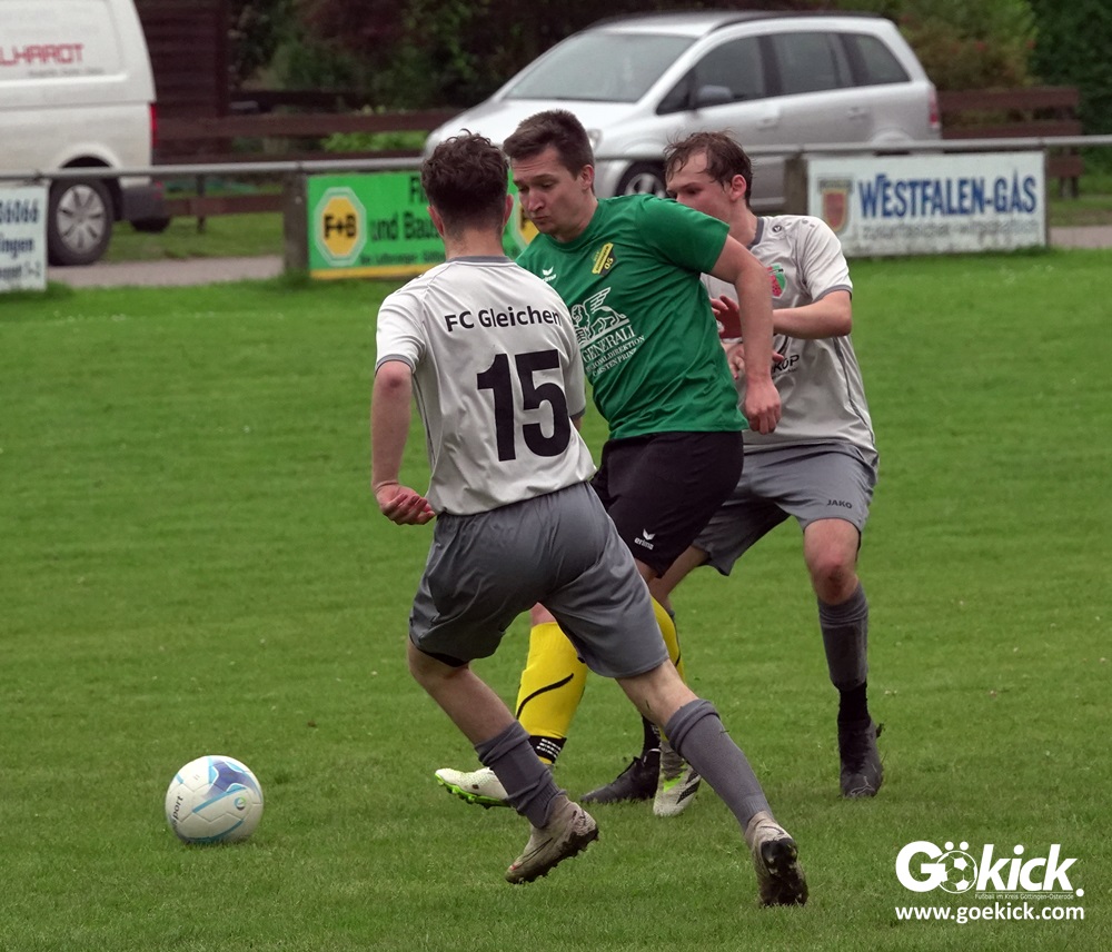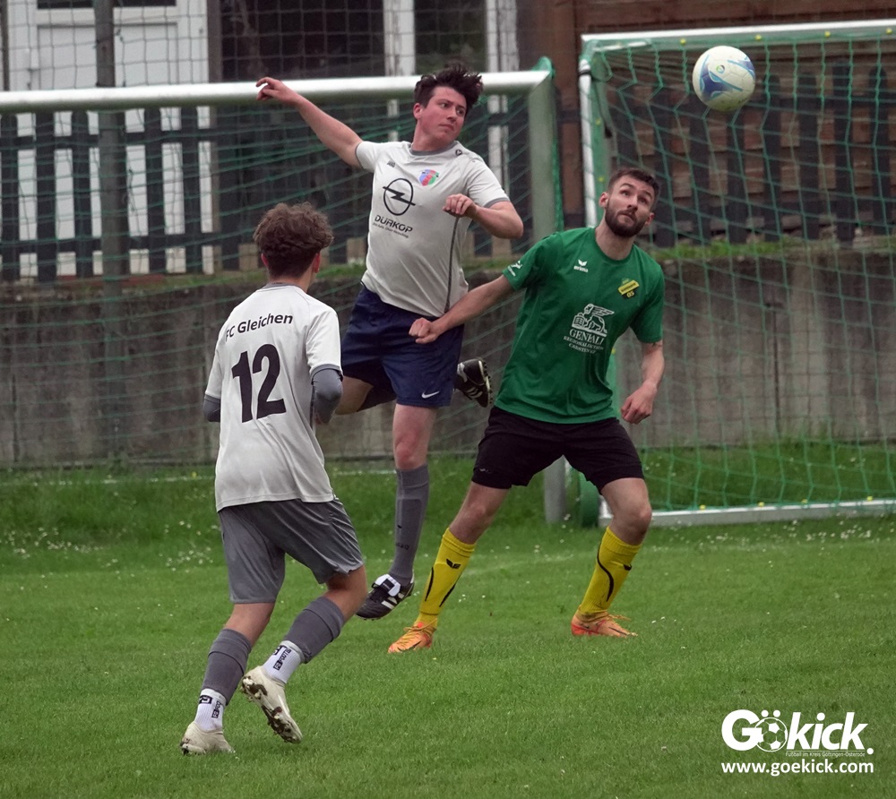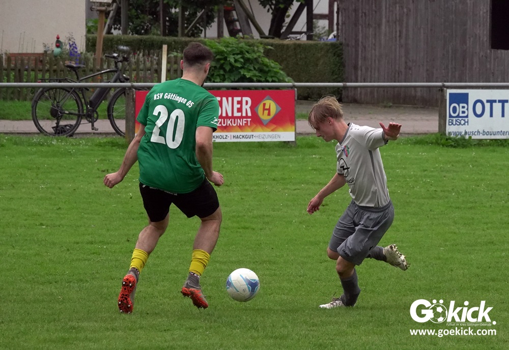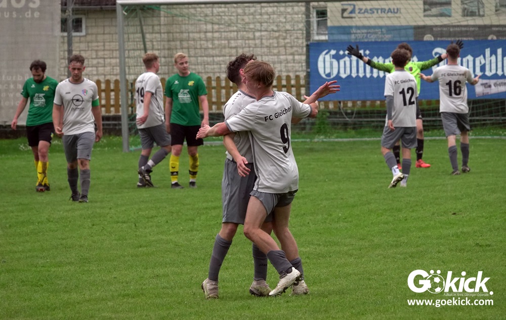 Der Favorit aus Geismar ging nach acht Minuten durch Louis Emme-Weiß mit 1:0 in Führung. Doch die Hausherren, diesmal mit nahezu vollständigem Kader – zuletzt mussten Altherren-Spieler und Frauen aushelfen – kamen durch Luka Hirschmann nach 22 Minuten zum 1:1-Ausgleich. Erneut war es in der 28. Spielminute Louis Emme-Weiß, der den RSV mit 2:1 in Front brachte. Aber die Gleichener ließen sich nicht abschütteln. Kilian Kreis besorgte in der 34. Spielminute den 2:2-Ausgleich. Ein Eigentor war dafür verantwortlich, dass der Favorit mit einer Führung in die Halbzeitpause ging – Jan-Cedric Maussang traf bei seinem Rettungsversuch in die eigenen Maschen.