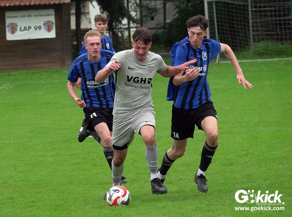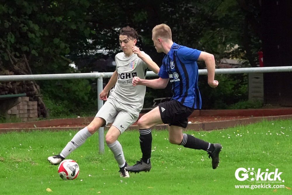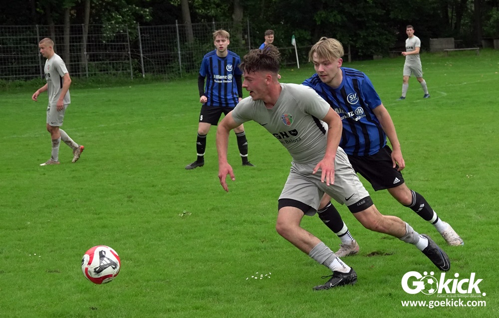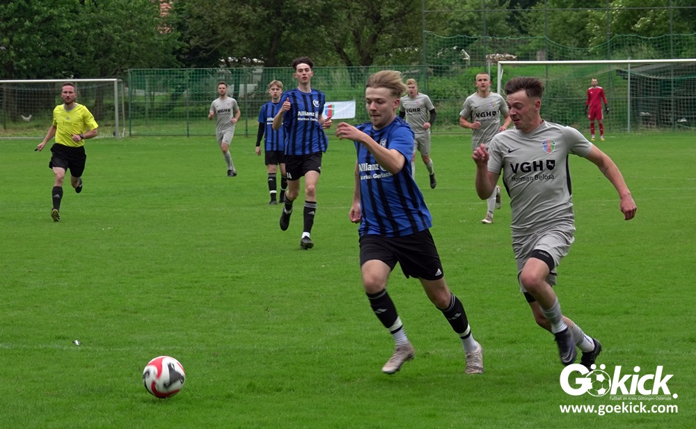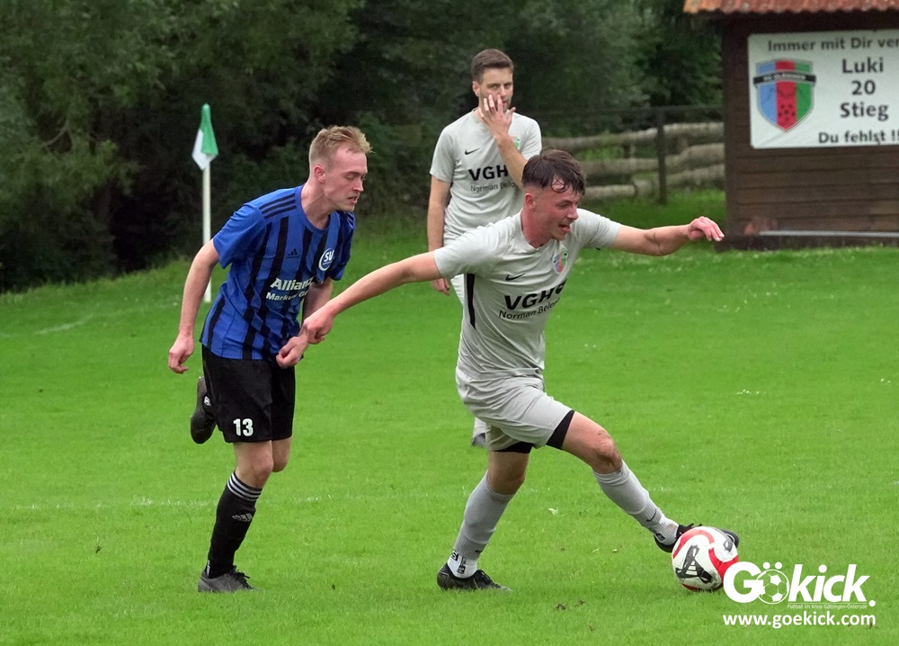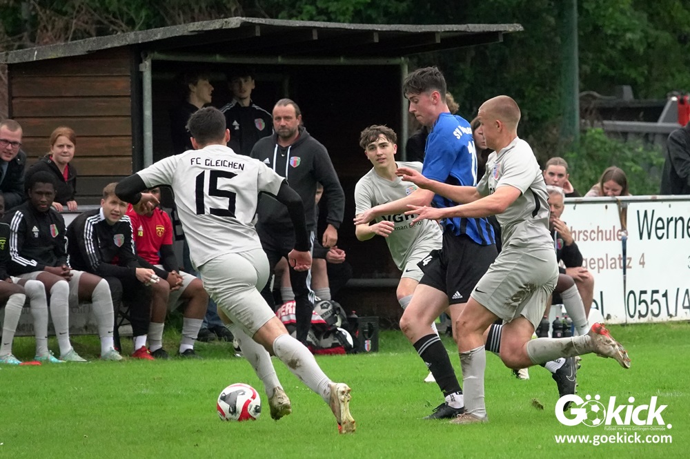 Vor etwa 100 Zuschauern führte der FC Gleichen von Anbeginn die Regie der Partie. Mit einem Doppelpack durch zwei Fernschüsse in den Minute 13 und 27 brachte Can Niko Erden den Gastgeber mit 2:0 in Führung. In der Nachspielzeit der ersten Halbzeit traf Routinier Björn Denecke zum 3:0. Praktisch im Gegenzug verkürzte Melvin Sommer auf 3:1. Damit ging es in die Halbzeitpause.