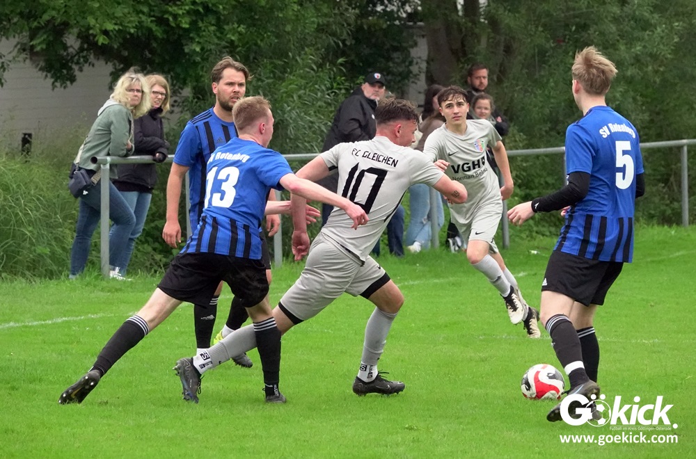 Mit drei Siegen in Folge sichert sich der FC Gleichen in der Bezirksliga-Tabelle den fünften Platz. Am abschließenden Spieltag gewann das Team von Trainer Gregor Czosnyka gegen den SV Rotenberg auf eigenem Platz in Bremke mit 5:1 (3:1). Der Gast aus dem Eichsfeld beendet die Saison 2023/24 auf Platz elf.