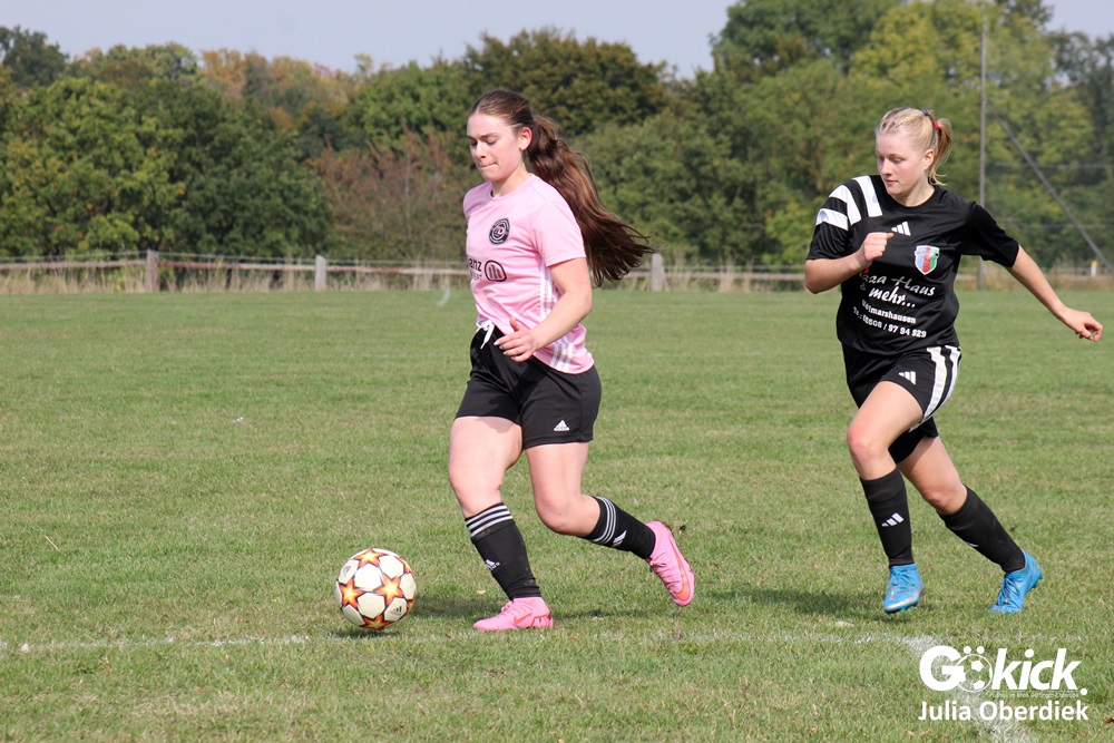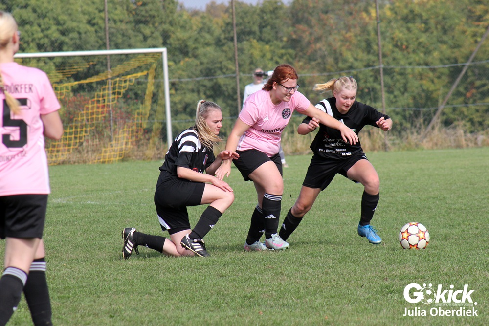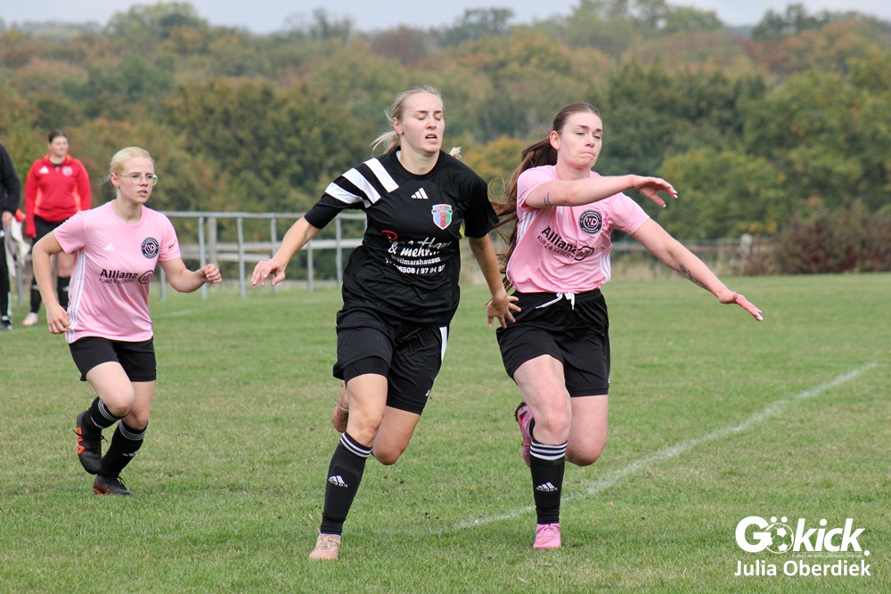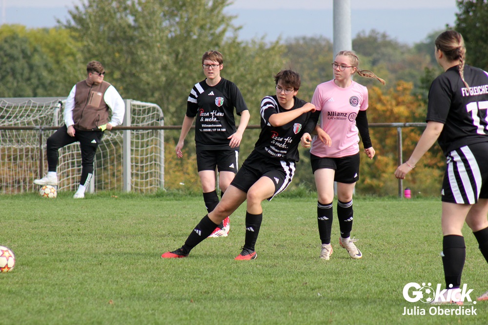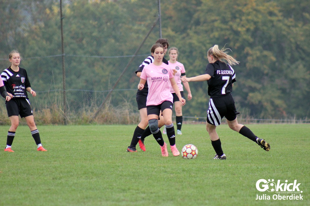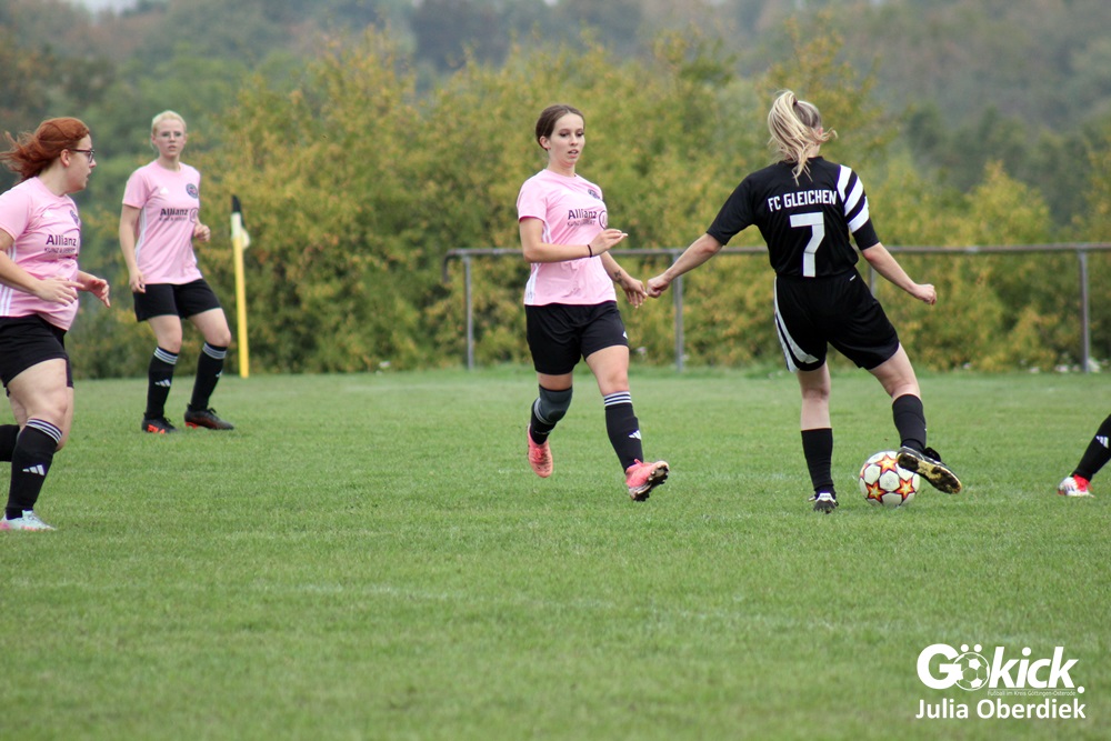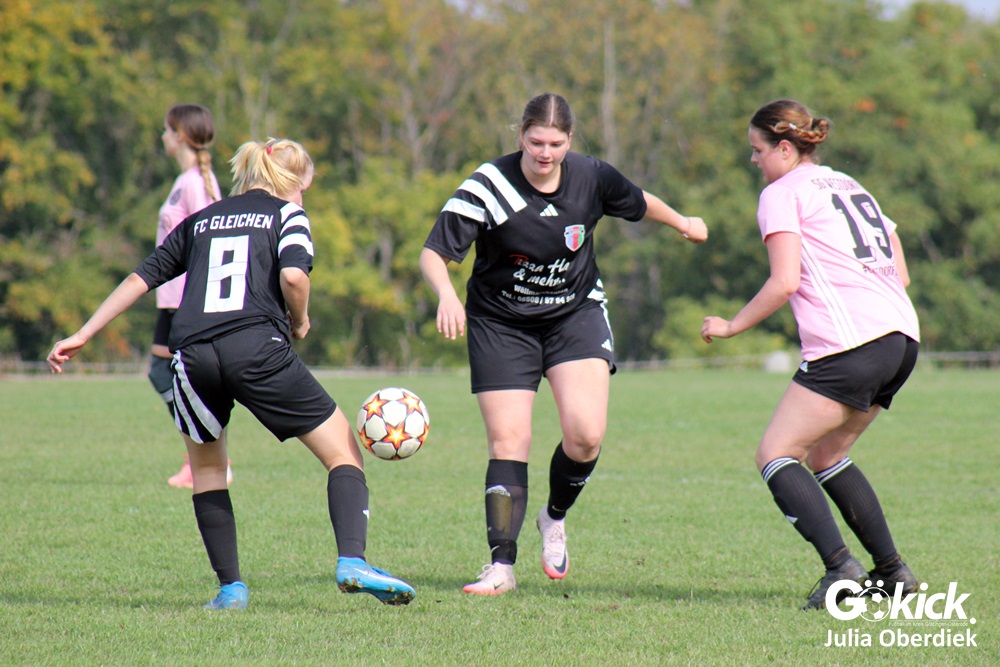Die Partie nahm früh den erwarteten Verlauf: Bereits in der 12. Minute brachte Kapitänin Liv Dostal den FC Gleichen in Führung. Danach erhöhte das Pech der SG Westdörfer den Rückstand: Tessa Sassenberg lenkte den Ball unglücklich ins eigene Tor (27.), nur wenige Minuten später unterlief auch Fabienne Schoen ein Eigentor (36.). Kurz vor der Pause traf Josephin Oetzel zum 0:4, ehe Schiedsrichter Robert Hajrusi die erste Halbzeit beendete.