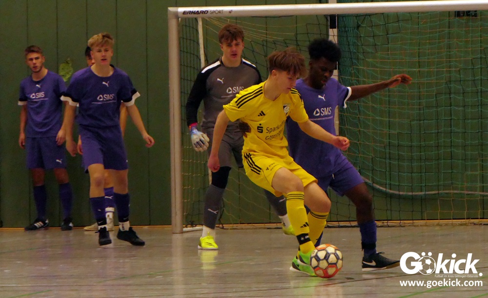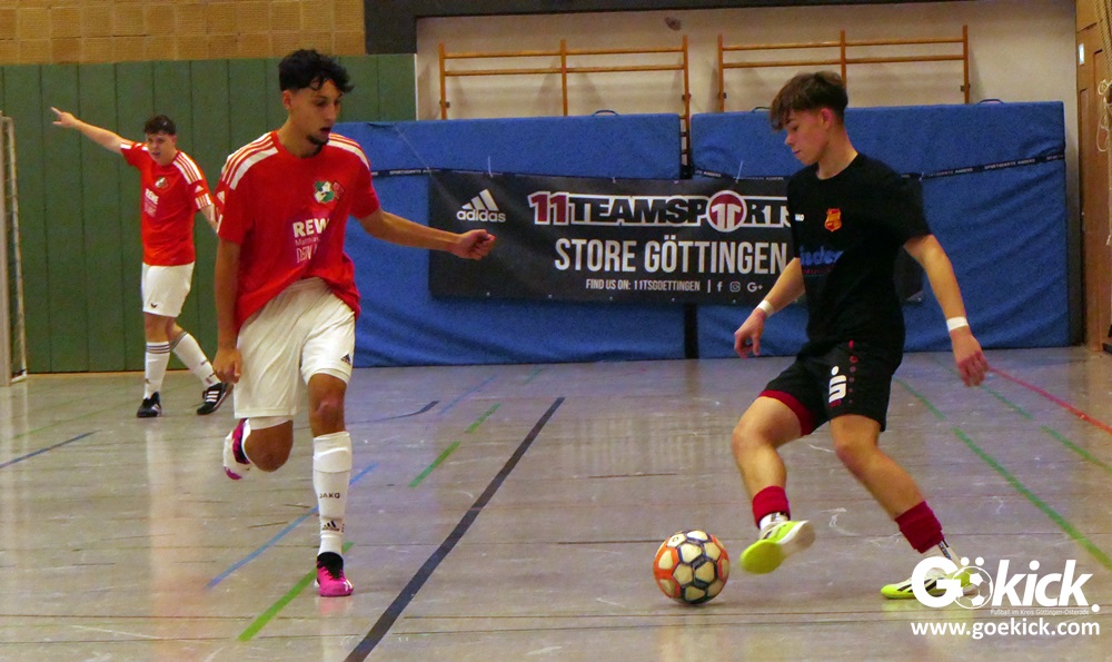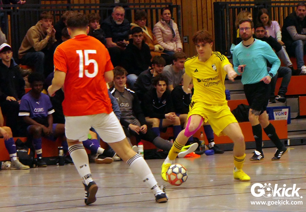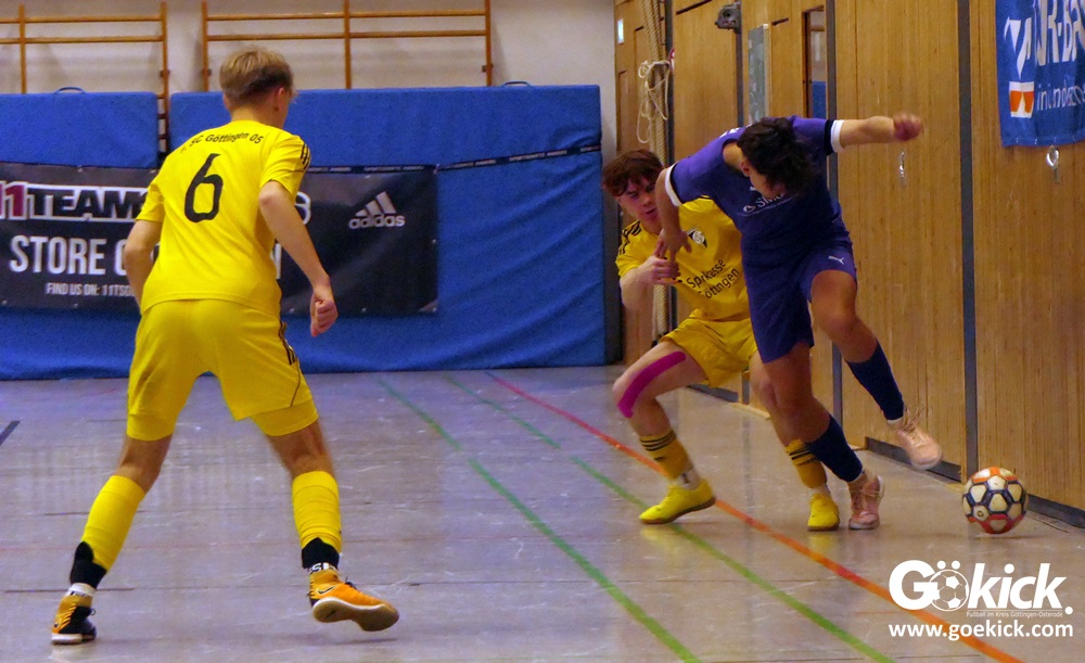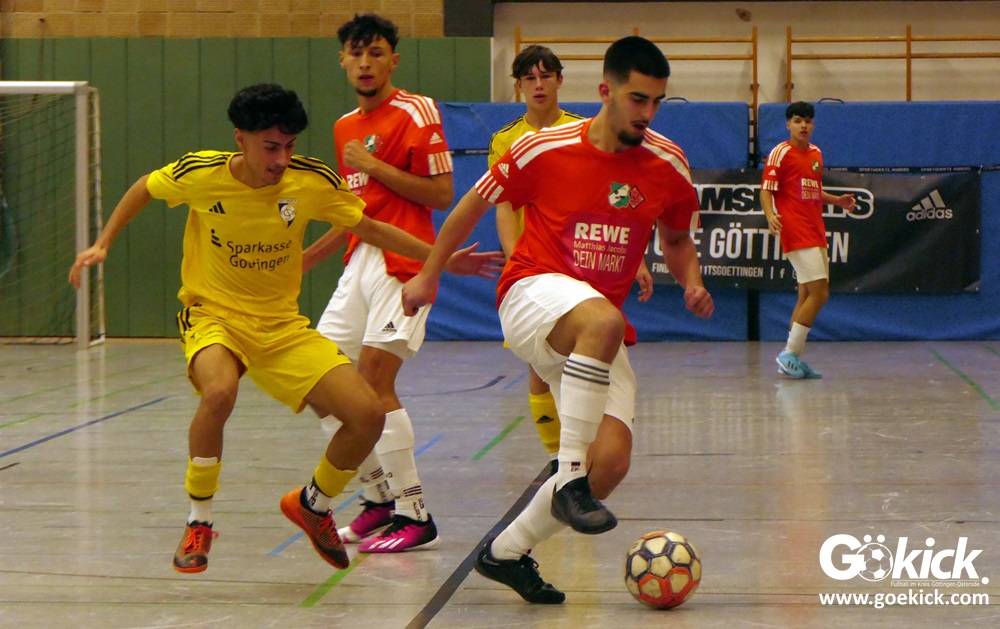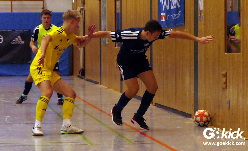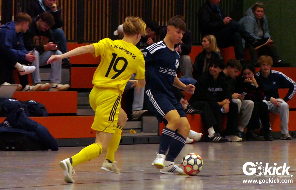 Der DSC-Indoor-Cup des Dransfelder SC in der Sporthalle Lange Trift gilt traditionell als Generalprobe für den am Donnerstag beginnenden REWE JUNIORCUP in der Göttinger Lokhalle. Die besten regionalen A-Jugend-Mannschaften treffen sich dort zwischen den Jahren, um sich noch einmal auf das Spiel auf dem begrenzten Spielfeld einer Sporthalle intensiv vorbereiten zu können. Auch, wenn das Hallenparkett nicht mit der Kunstrasenfläche in der Lokhalle zu vergleichen ist, so zeigte der Niedersachsenligist 1. SC Göttingen 05 am Finaltag die beste Leistung.