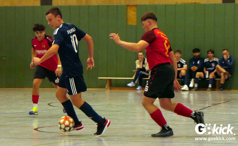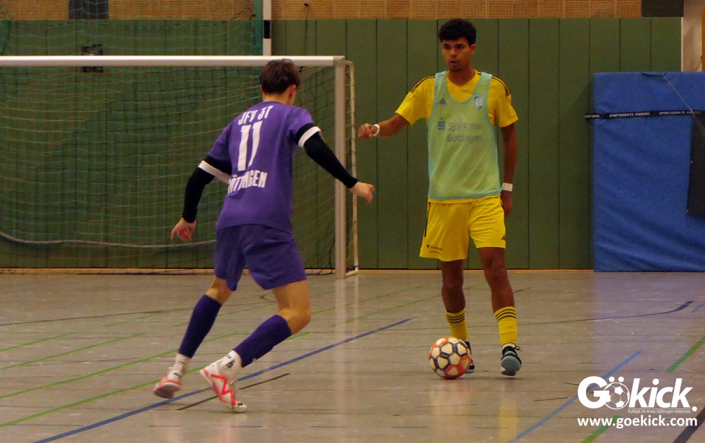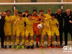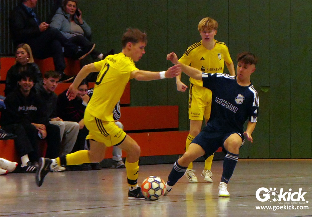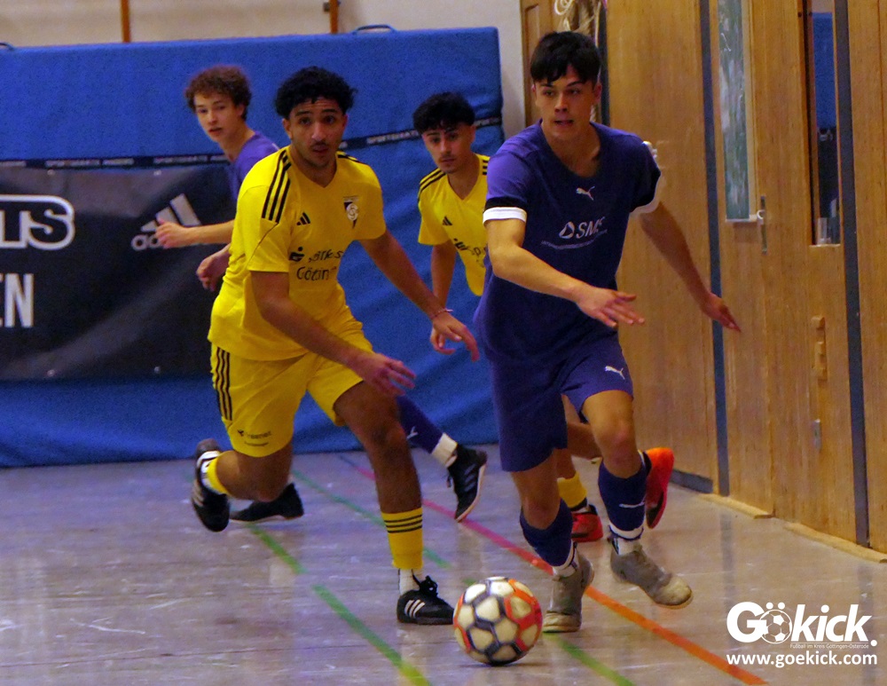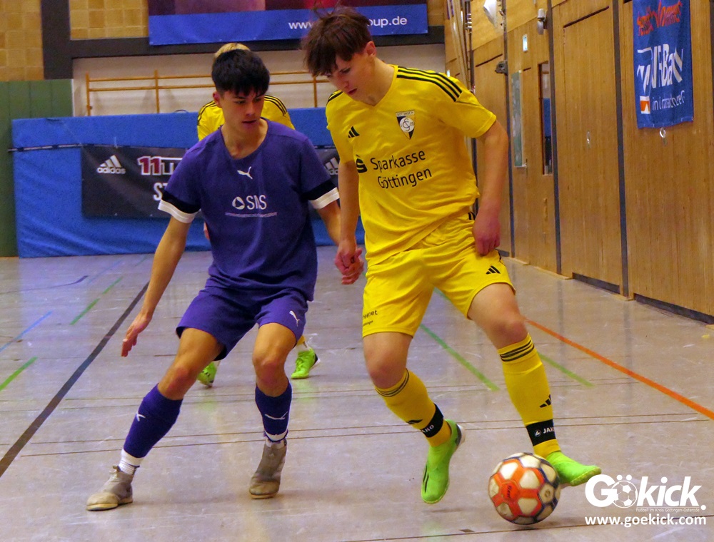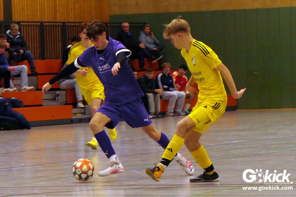 Der DSC-Indoor-Cup des Dransfelder SC in der Sporthalle Lange Trift gilt traditionell als Generalprobe für den am Donnerstag beginnenden REWE JUNIORCUP in der Göttinger Lokhalle. Die besten regionalen A-Jugend-Mannschaften treffen sich dort zwischen den Jahren, um sich noch einmal auf das Spiel auf dem begrenzten Spielfeld einer Sporthalle intensiv vorbereiten zu können. Auch, wenn das Hallenparkett nicht mit der Kunstrasenfläche in der Lokhalle zu vergleichen ist, so zeigte der Niedersachsenligist 1. SC Göttingen 05 am Finaltag die beste Leistung.
