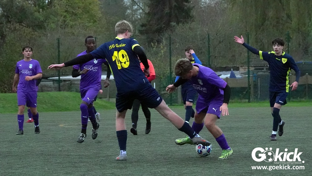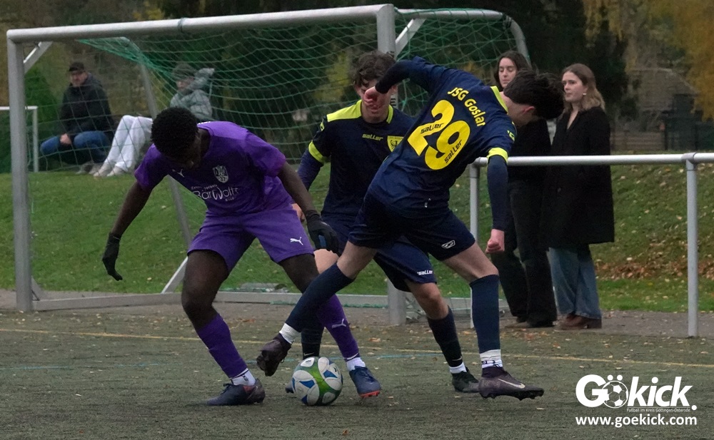 Der Druck war groß, die Ausgangslage klar: Im Aufeinandertreffen des Vorletzten gegen das Schlusslicht der A-Jugend-Bezirksliga zählte für beide Mannschaften nur ein Sieg. Am Ende behielt die U18 des JFV 37 Göttingen gegen die JSG Goslar auf dem Kunstrasen im KRÜGERPARK am Sandweg mit 2:1 (1:1) die Oberhand und verschaffte sich im Tabellenkeller etwas Luft.