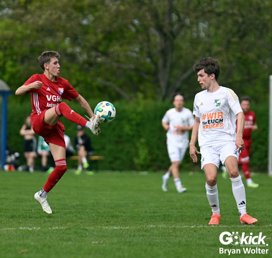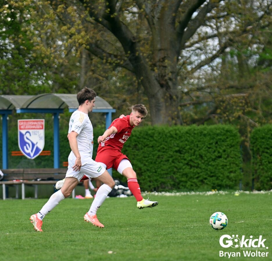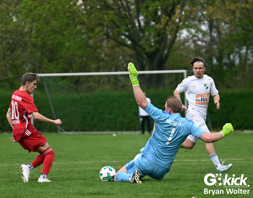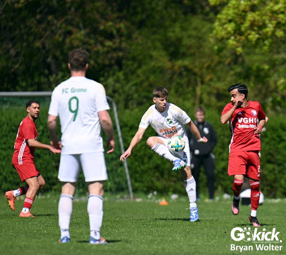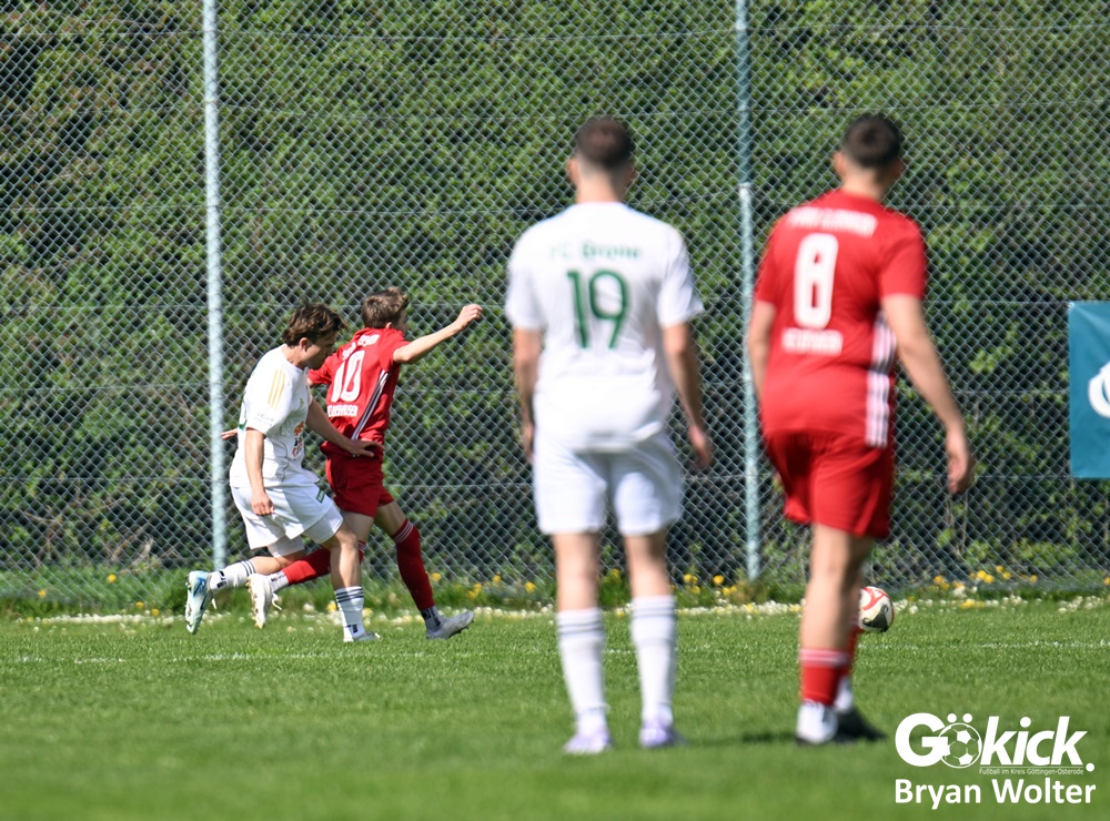 Für den Ausgleich in der 53. Spielminute sorgte Milo Apel mit seinem 12. Saisontor. Doch nach 71 Spielminuten geriet der Gastgeber erneut in Rückstand: Alexander Frees traf für die Gäste vom Rehbach zur 2:1-Führung. Fünf Minuten vor dem regulären Ende der Partie traf Aria Sakhli vom Gastgeber, allerdings in die eigenen Maschen. Das 3:1 für den FC Grone war die Entscheidung in diesem umkämpften Derby. Am Ende stand der vierte Saisonsieg für das Gäste-Team fest.