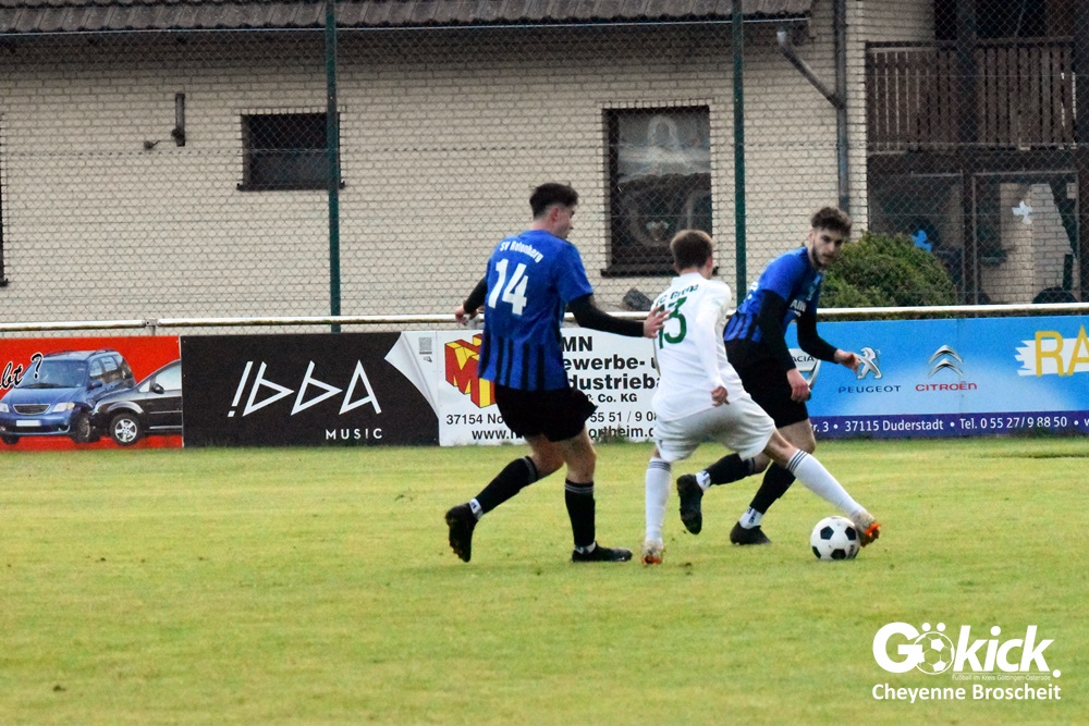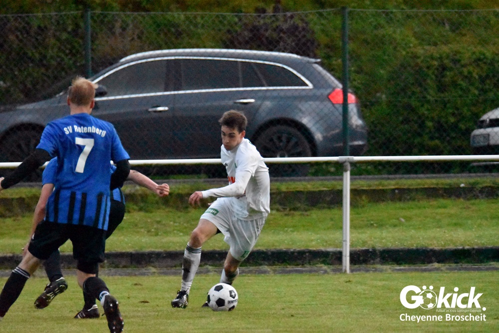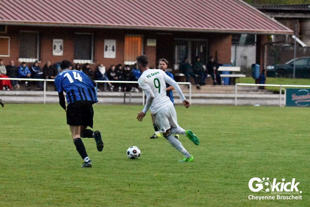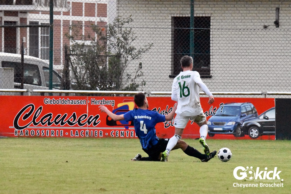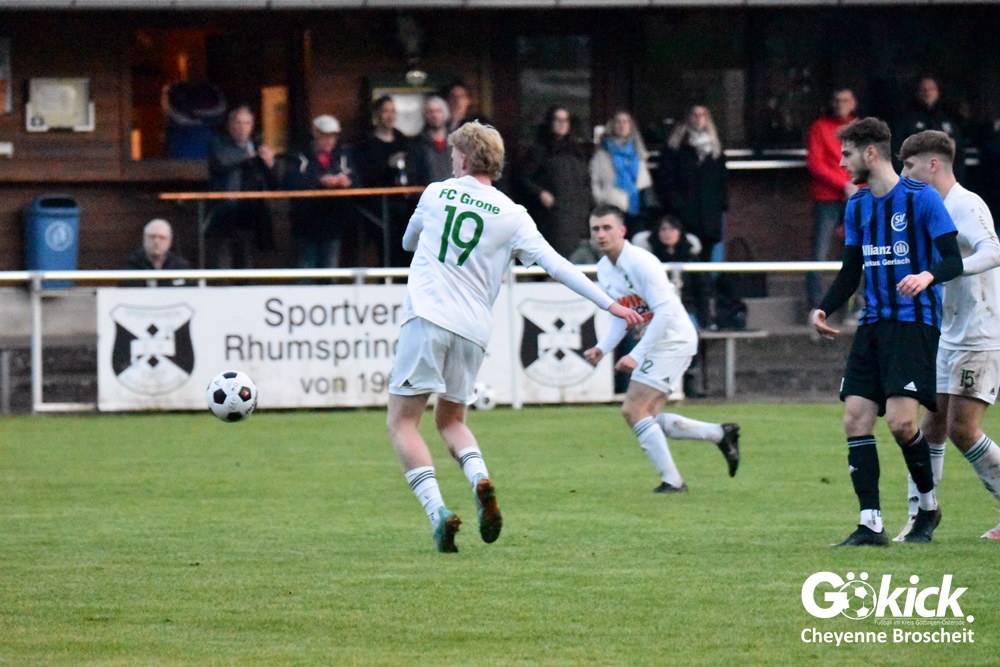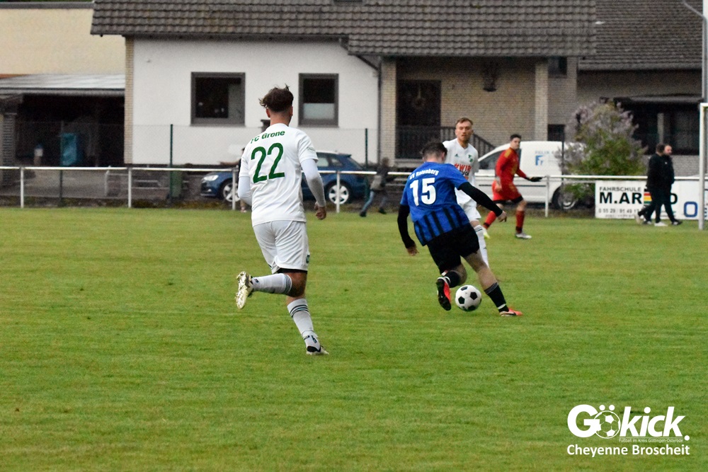 Auf dem Sportplatz in Rhumspringe ging der FC Grone nach einer halben Stunde Spielzeit durch einen verwandelten Strafstoß von Yannick Triebe mit 1:0 in Führung. Ach Minuten später konnte der SV Rotenberg durch Melvin Sommer ausgleichen. Damit ging es in die Halbzeitpause.