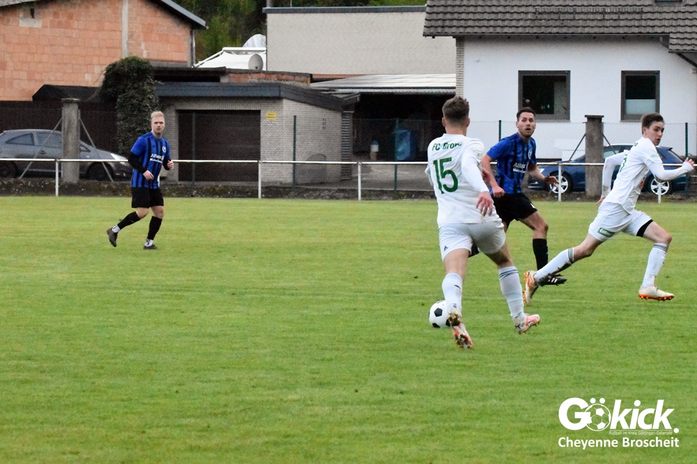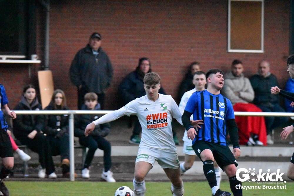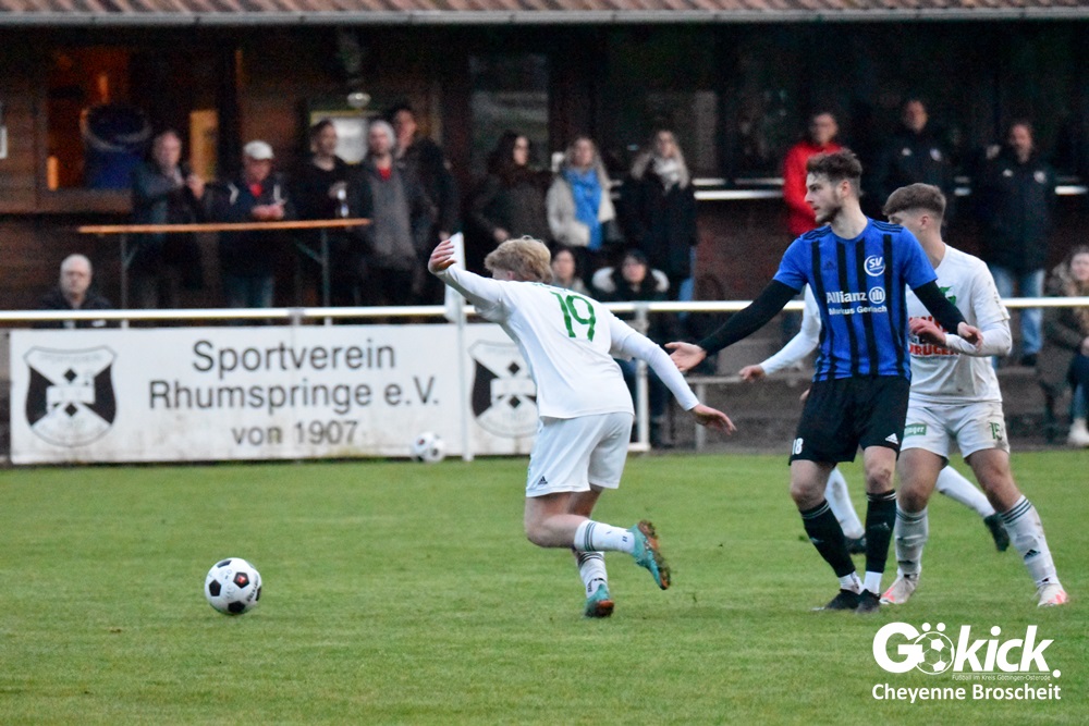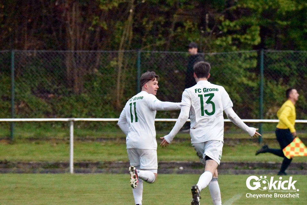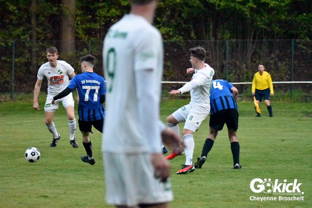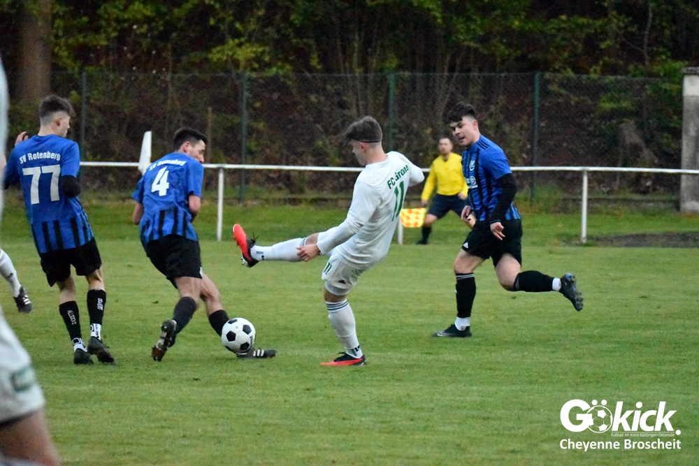 Auf dem Sportplatz in Rhumspringe ging der FC Grone nach einer halben Stunde Spielzeit durch einen verwandelten Strafstoß von Yannick Triebe mit 1:0 in Führung. Ach Minuten später konnte der SV Rotenberg durch Melvin Sommer ausgleichen. Damit ging es in die Halbzeitpause.