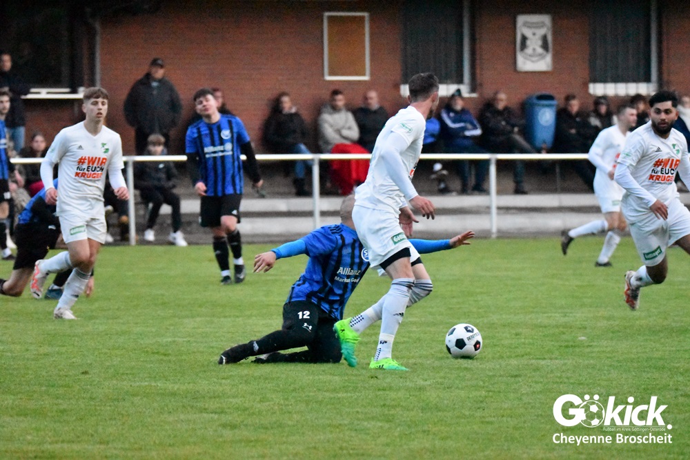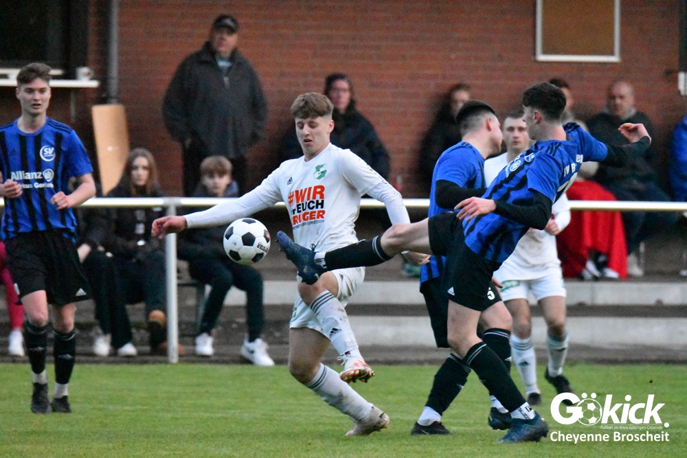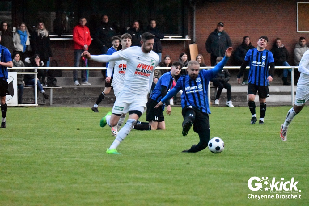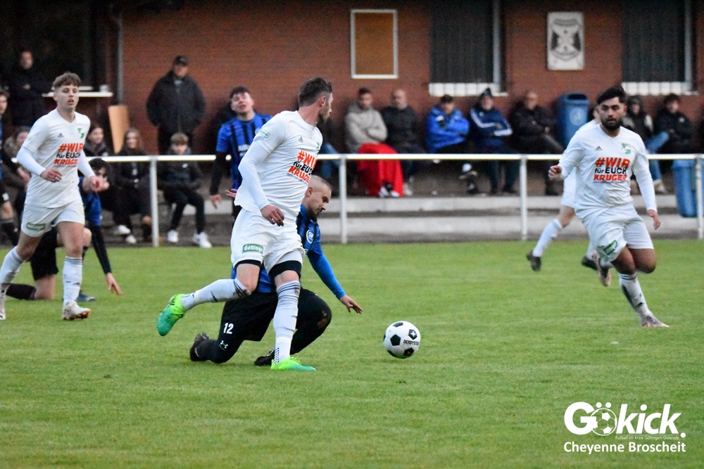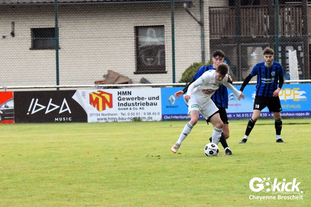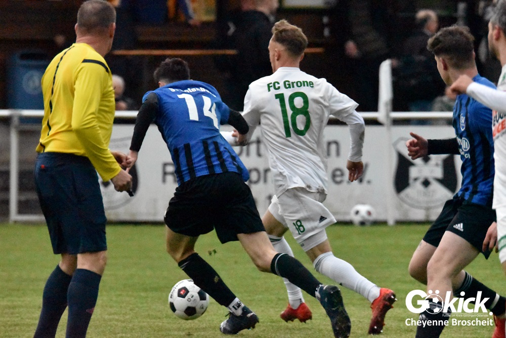 War das Glück den Gronern in Rhumspringe noch hold, so sollte es sie bei der 05-Reserve verlassen. Denn bis zur Schlussminute sollte am Sonntag-Mittag kein Treffer auf beiden Seiten notiert werden. Dann kam Keanu Symanski und traf für die zweite Mannschaft des 1. SC Göttingen 05, wo Abwehr-Routinier Philipp Käschel als Torwart zwischen den Pfosten stand, zum 1:0. Am Ende siegte der abstiegsbedrohte Gastgeber von Trainer Philipp Ernst glücklich und kann sich über jetzt 31 Punkte und damit drei Zähler zu den Abstiegsplätzen freuen.