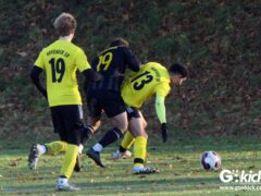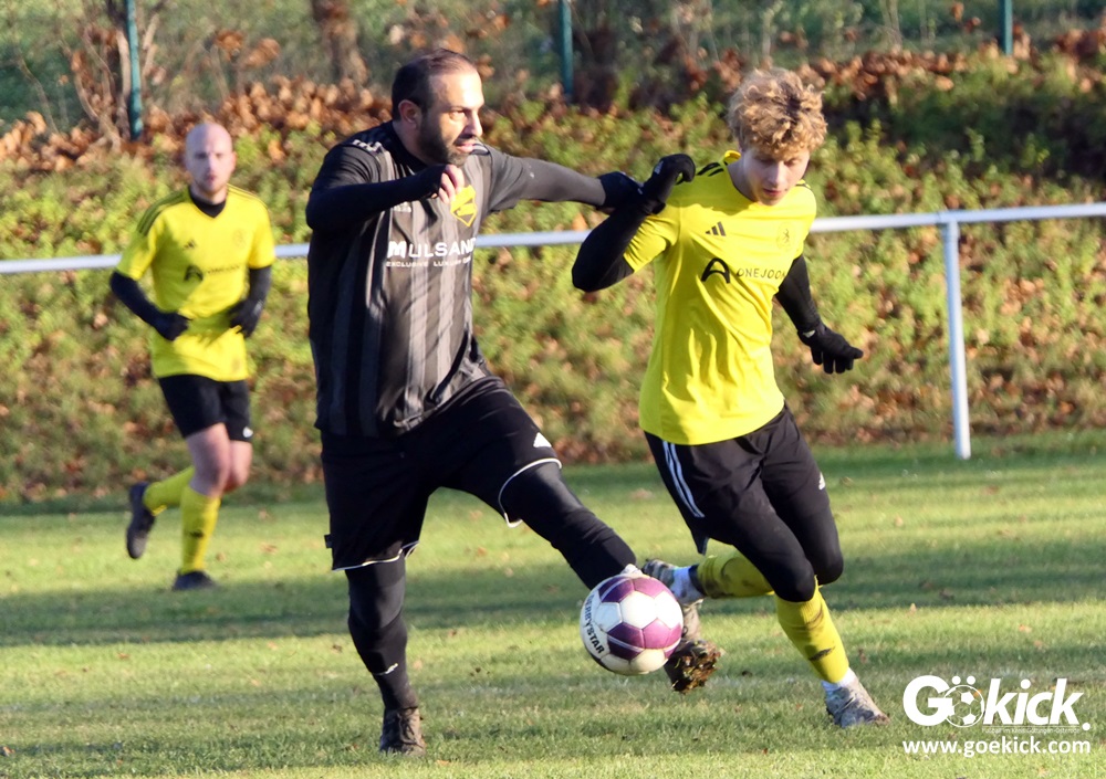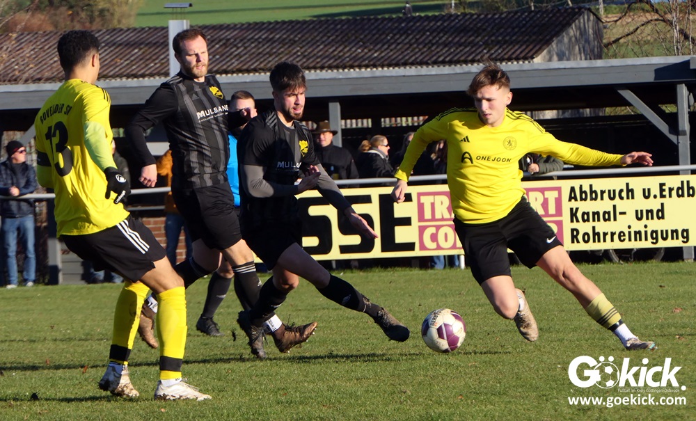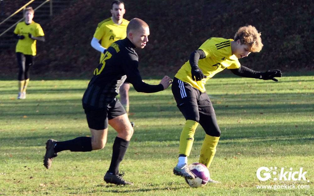 Bereits in der siebten Spielminute brachte Noah-Samuel Reinholz die Hausherren in Führung. Anschließend blieb der Gastgeber auf dem tiefen Boden des Einzelbergstadions die bessere Mannschaft. Nach 37 Minuten erhöhte Noah-Samuel Reinholz mit seinem zweiten Tagestreffer auf 2:0. Damit ging es in die Halbzeitpause.