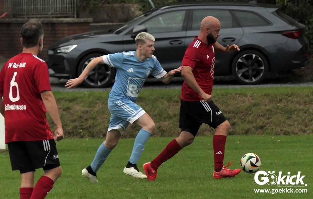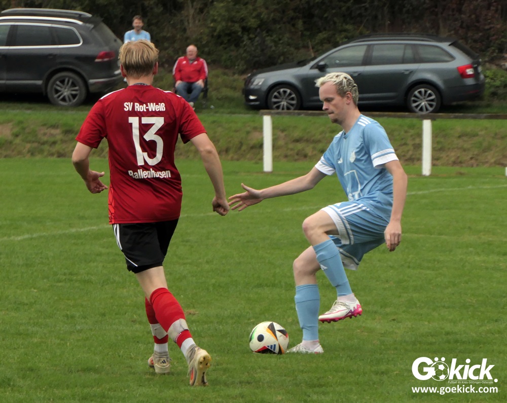 Die Partie begann intensiv, beide Seiten suchten den direkten Weg zum Tor. Ballenhausen wirkte zunächst gefestigter und belohnte sich nach einer guten halben Stunde: Vincent Albrecht traf in der 33. Minute zur Führung. Mit diesem Zwischenstand ging es in die Pause.