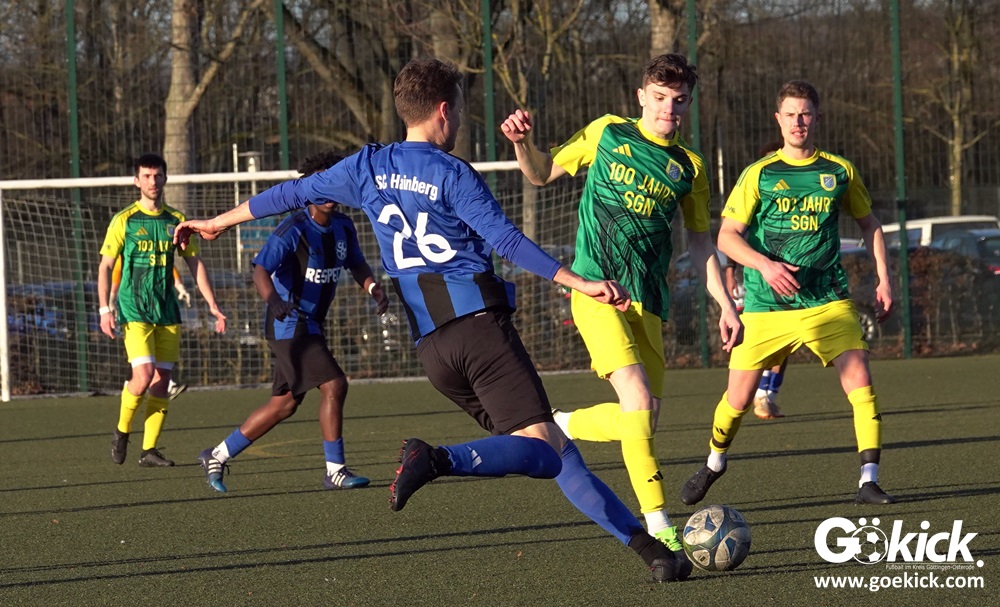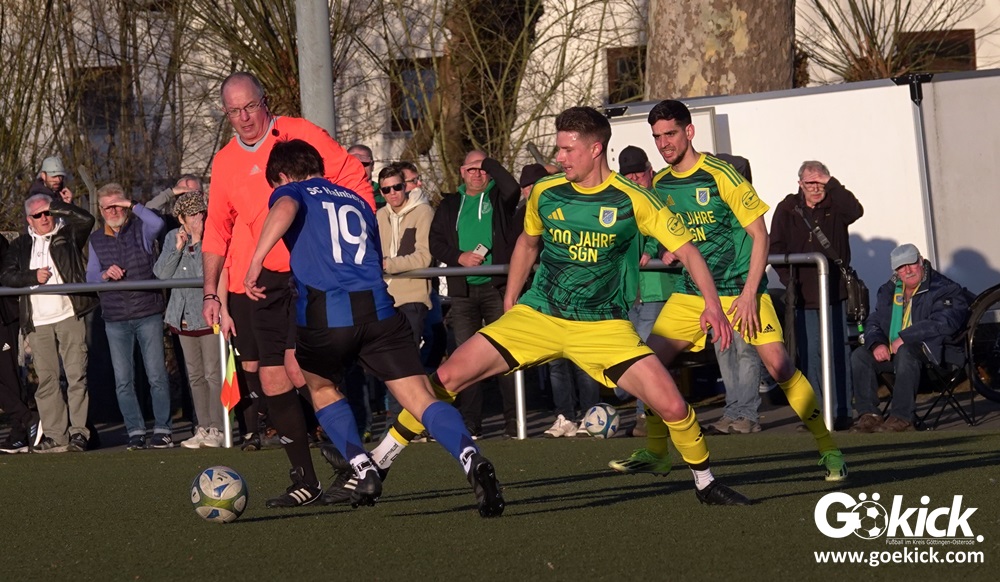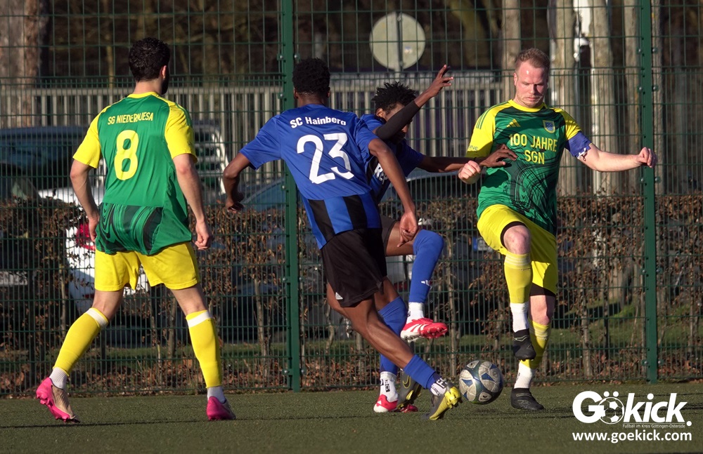Der SC Hainberg übernahm früh die Initiative. In der 15. Minute köpfte Vivakaran Paramarajah nach einem Eckball zum 1:0 ein. Nur neun Minuten später erhöhte Lukas Lukas mit einem abgefälschten Schuss aus der Distanz auf 2:0. Kurz vor der Pause geriet die SG Niedernjesa weiter ins Hintertreffen: Kapitän Dominik-Marcel Brömsen sah in der Nachspielzeit der ersten Hälfte die Gelb-Rote Karte (47.) und schwächte sein Team für den gesamten zweiten Durchgang.