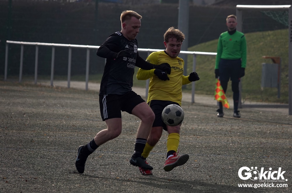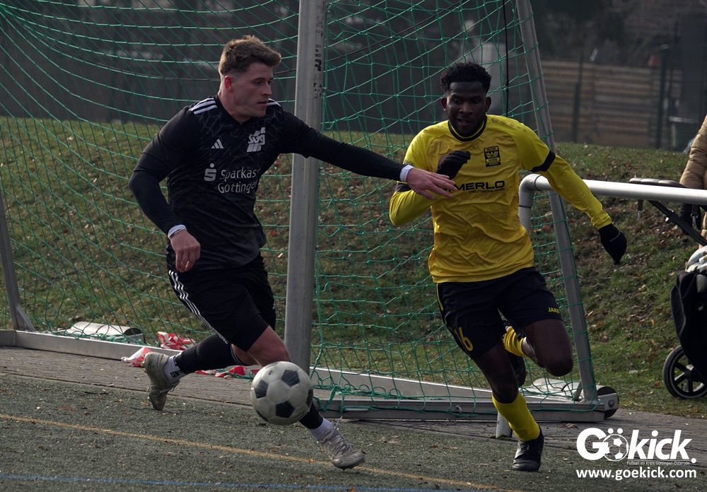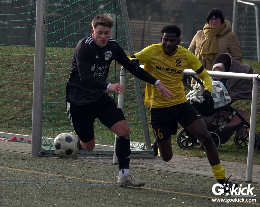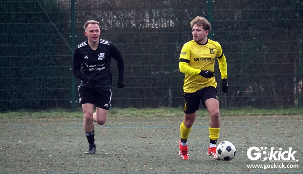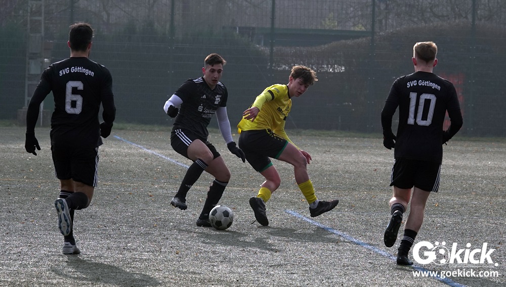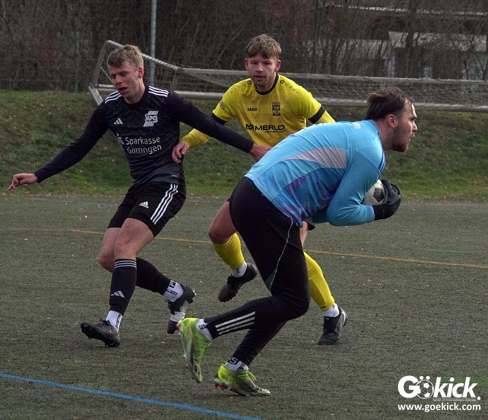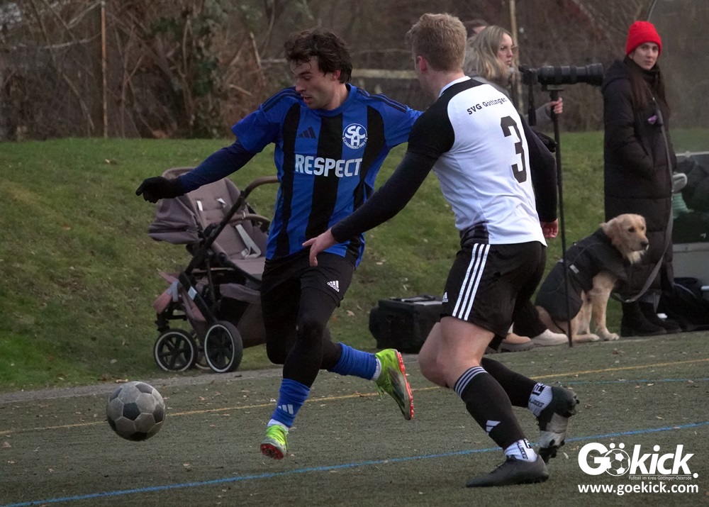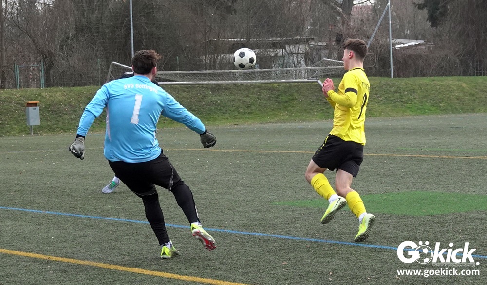 Die frühe Phase der Begegnung war von hoher Aufmerksamkeit geprägt, echte Torchancen blieben zunächst rar. In der 14. Minute nutzte die SVG Göttingen dann einen Moment der Entschlossenheit: Nach einem Pfostenschuss reagierte Thore Salzmann am schnellsten, setzte nach und traf aus kurzer Distanz ins kurze Eck zum 1:0. Der Treffer verlieh der Mannschaft von Nils Reutter zusätzliche Sicherheit, ohne dass sie den strukturierten Ansatz aus den Augen verlor.