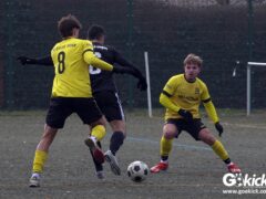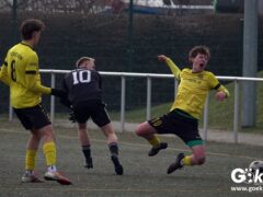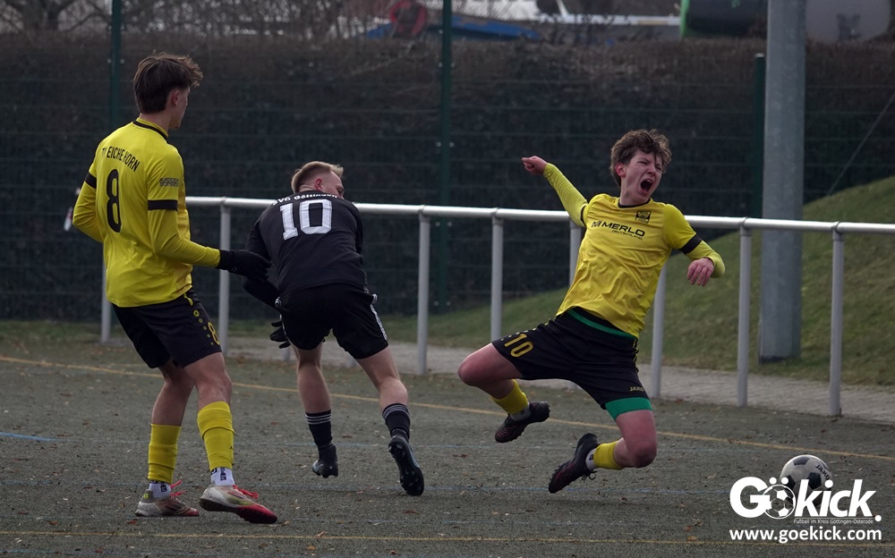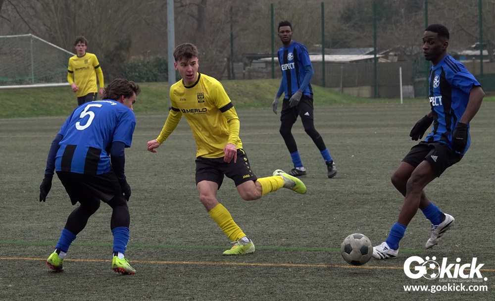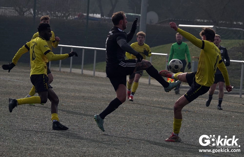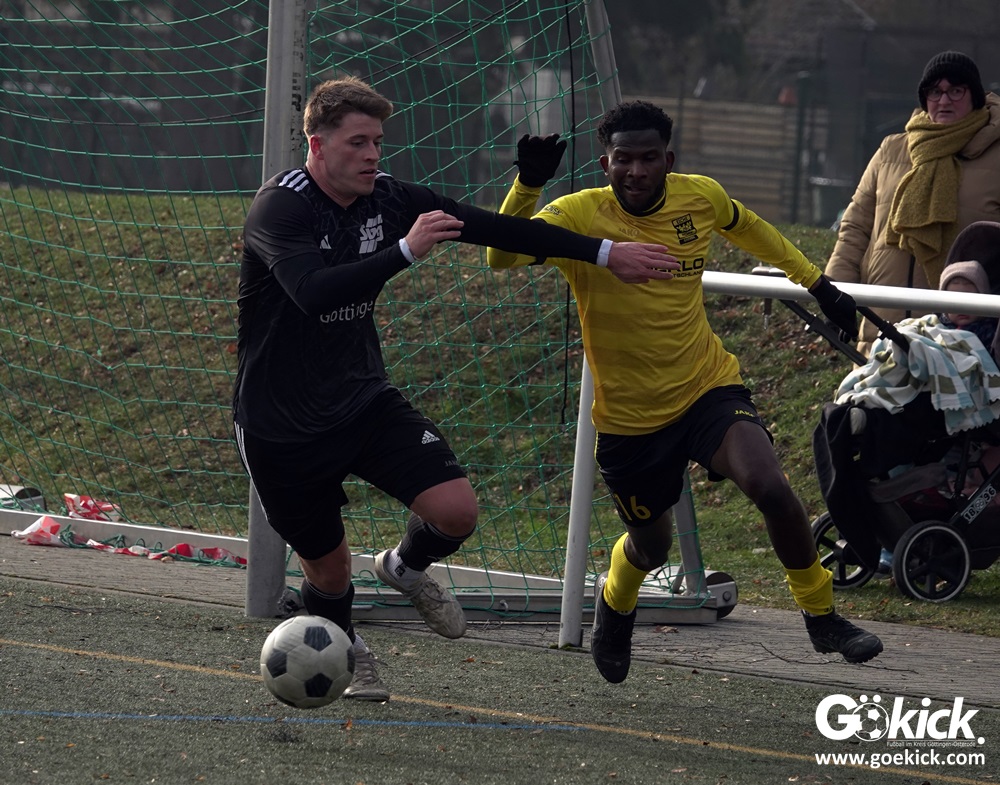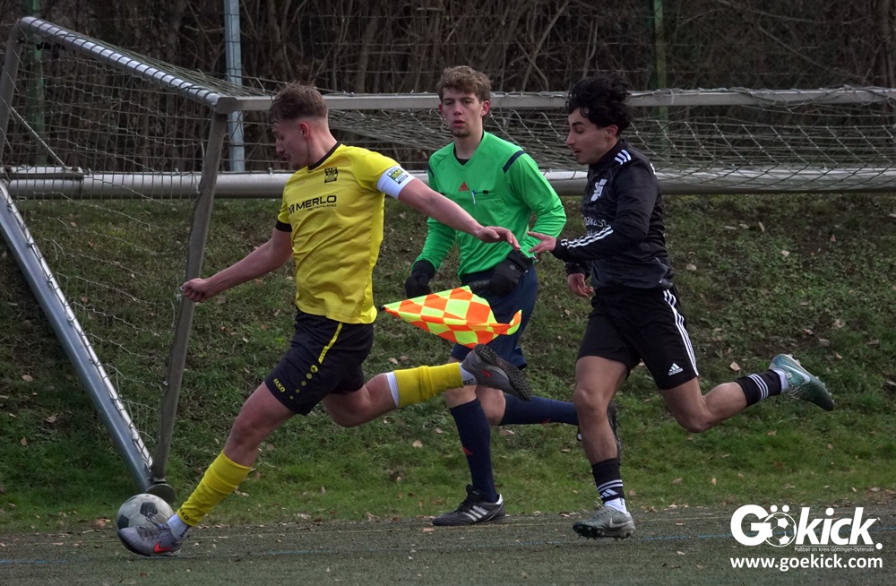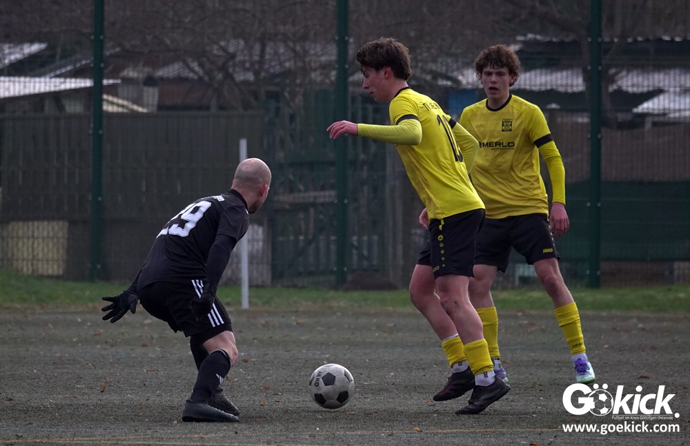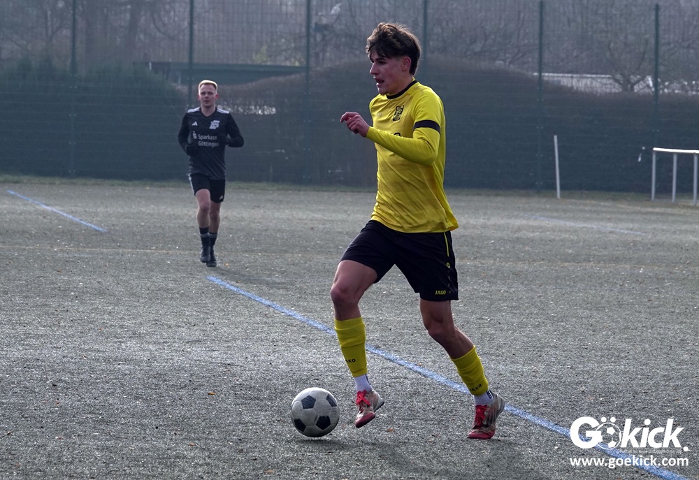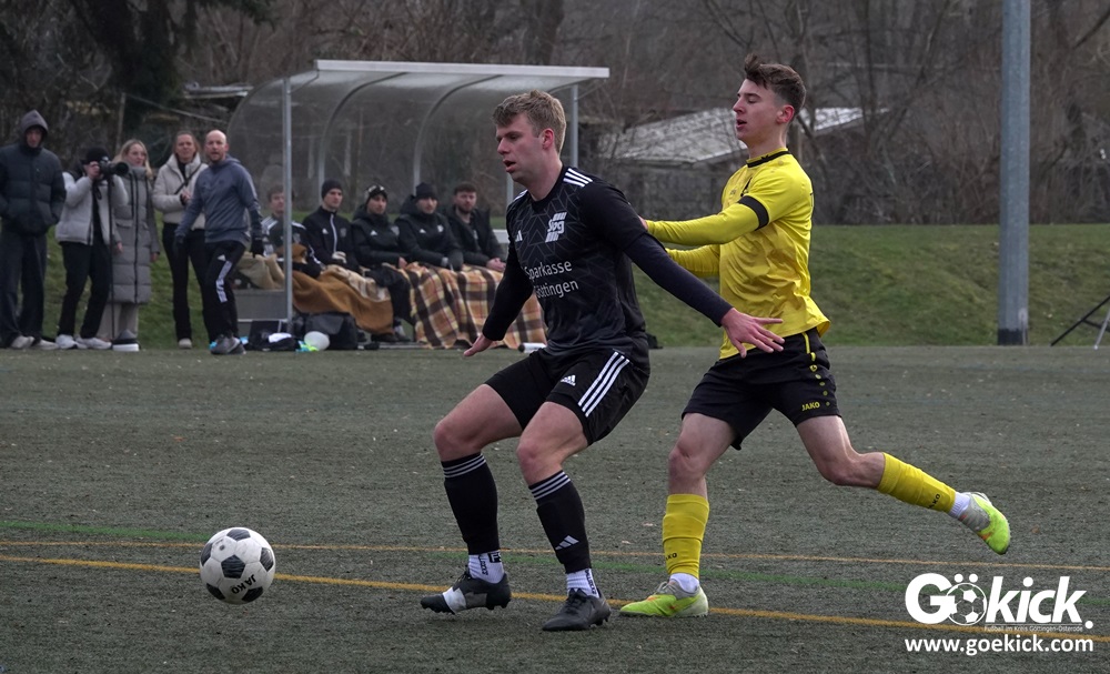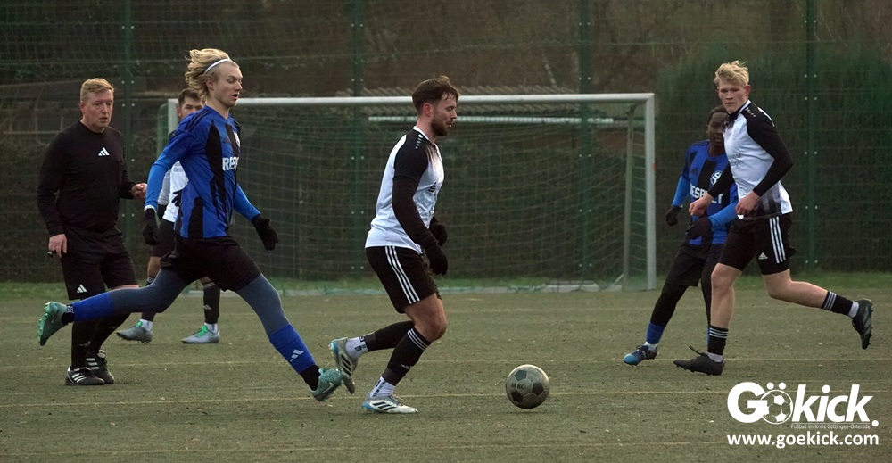 Die frühe Phase der Begegnung war von hoher Aufmerksamkeit geprägt, echte Torchancen blieben zunächst rar. In der 14. Minute nutzte die SVG Göttingen dann einen Moment der Entschlossenheit: Nach einem Pfostenschuss reagierte Thore Salzmann am schnellsten, setzte nach und traf aus kurzer Distanz ins kurze Eck zum 1:0. Der Treffer verlieh der Mannschaft von Nils Reutter zusätzliche Sicherheit, ohne dass sie den strukturierten Ansatz aus den Augen verlor.
