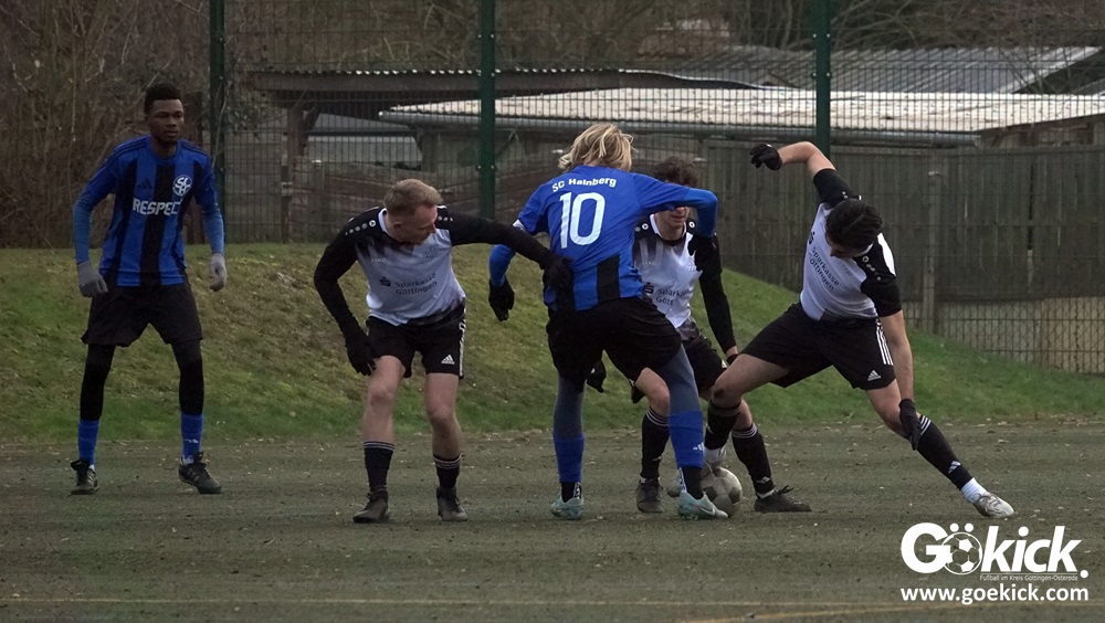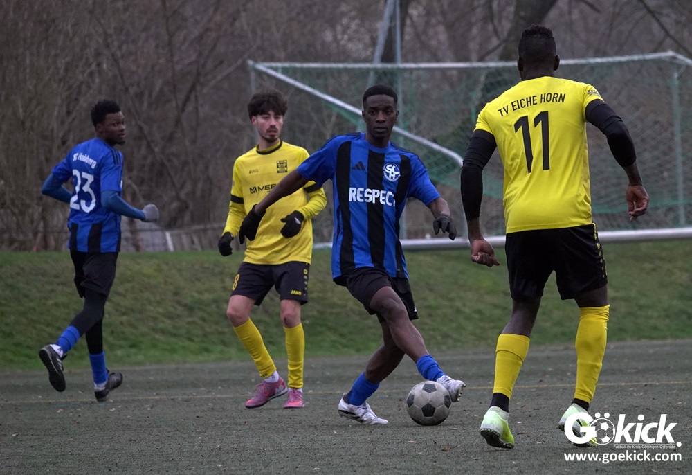 Zum ersten Test der Vorbereitung hatten die beiden Südstadtvereine SC Hainberg und SVG Göttingen zu einem Blitzturnier den Tabellenführer der Bremenliga, den TV Eiche Horn, eingeladen. Bei frostigen Temperaturen wollten nur sehr wenige Beobachter die drei Testspiele verfolgen. Diese sollten aber für diesen frühen Zeitpunkt der Vorbereitung attraktiven Fußball mit großem Ehrgeiz und schönen Treffern erleben. Die Spielzeit der drei Partien betrug zweimal 35 Minuten.