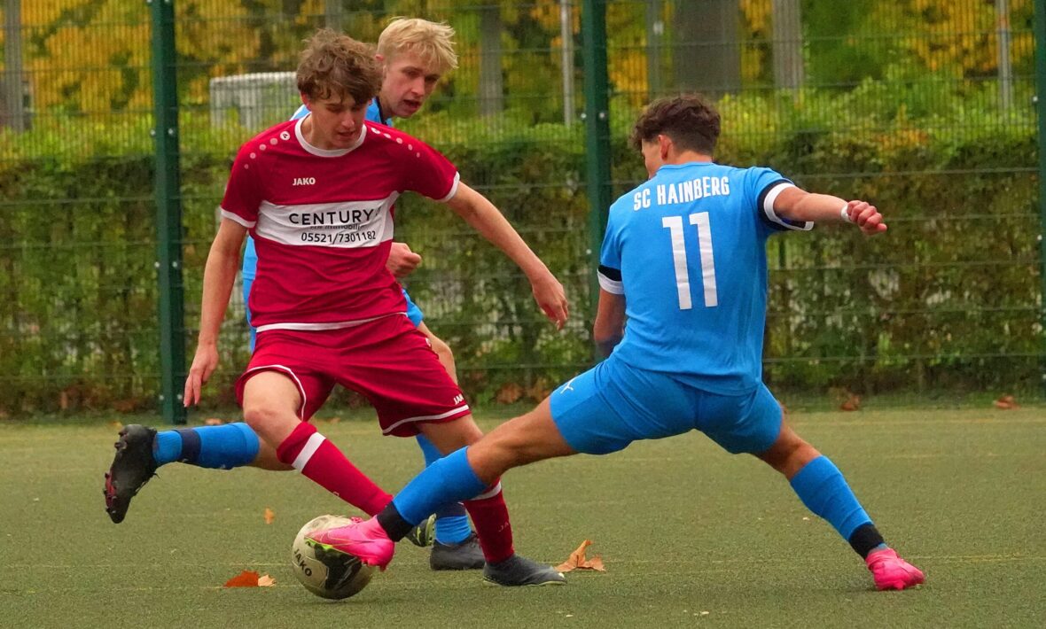 In der A-Jugend-Kreisliga-Staffel Nord bleibt der SC Hainberg ungeschlagen. Der Stammverein des JFV 37 Göttingen tritt gleich mit zwei Mannschaften in der Liga an, jeweils ein Team pro Staffel. Die erste Mannschaft in der Nord-Staffel gewann auch am vergangenen Samstag im Heimspiel auf dem Kunstrasenplatz des Göttinger Jahnsportparks gegen den VfR Dostluk Osterode deutlich. Die Zietenterrassen-Kicker besiegten das Harzer Team mit 11:1 (5:1).  Mit vier Punkten und zwei Spielen Rückstand belegt der SCH aktuell den zweiten Tabellenplatz. Der VfR Dostluk bleibt mit sechs Punkten Sechster der Kreisliga Nord.