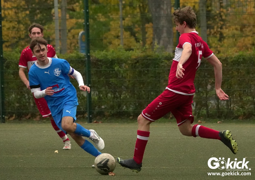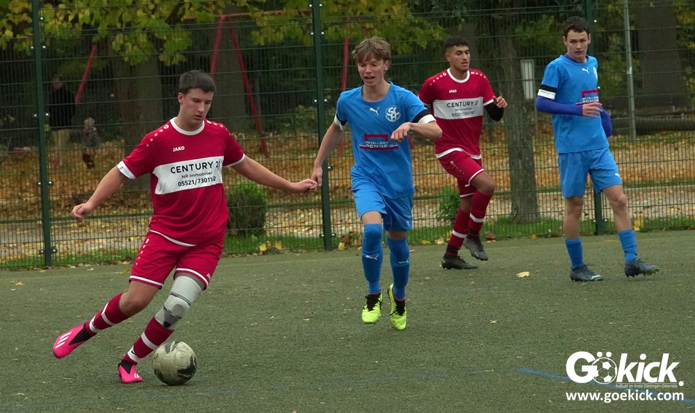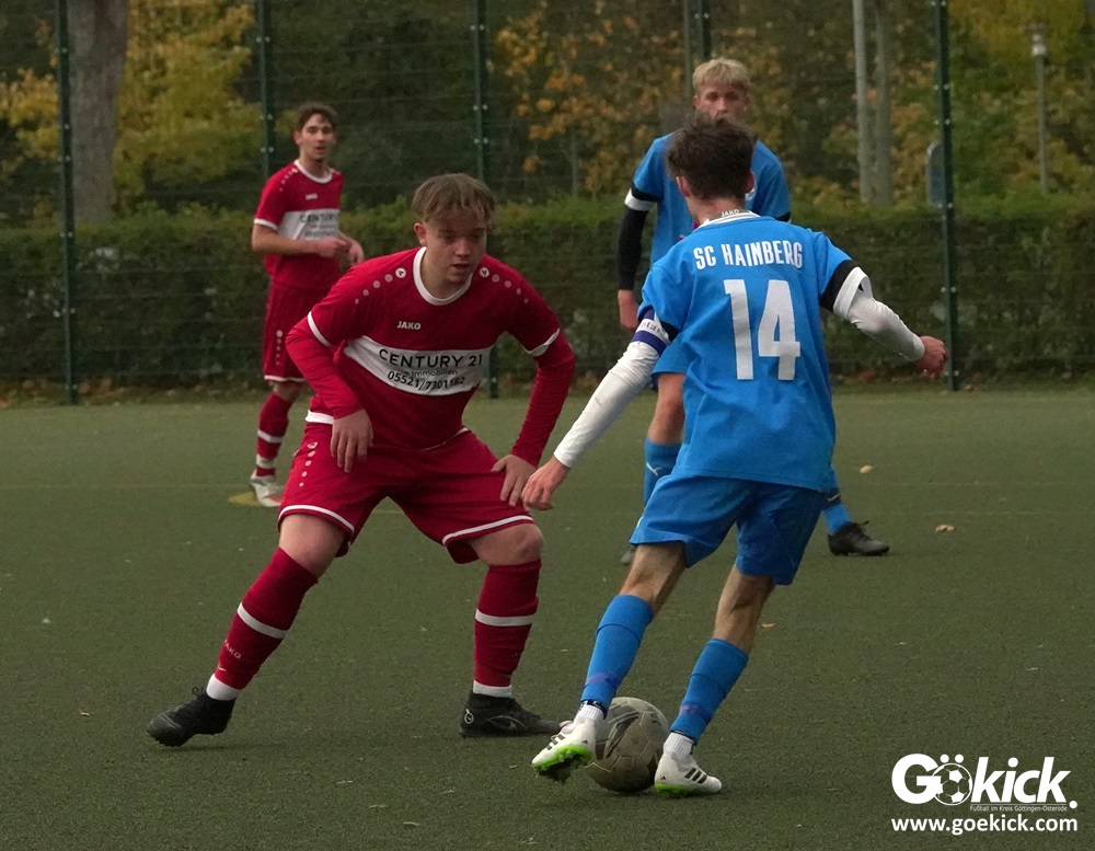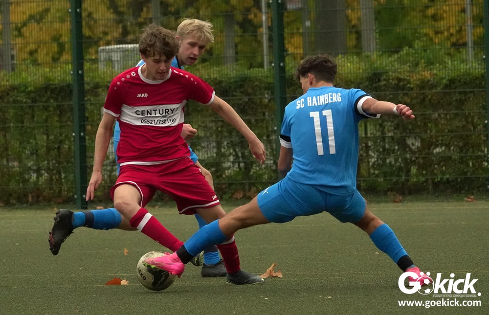 In der A-Jugend-Kreisliga-Staffel Nord bleibt der SC Hainberg ungeschlagen. Der Stammverein des JFV 37 Göttingen tritt gleich mit zwei Mannschaften in der Liga an, jeweils ein Team pro Staffel. Die erste Mannschaft in der Nord-Staffel gewann auch am vergangenen Samstag im Heimspiel auf dem Kunstrasenplatz des Göttinger Jahnsportparks gegen den VfR Dostluk Osterode deutlich. Die Zietenterrassen-Kicker besiegten das Harzer Team mit 11:1 (5:1).  Mit vier Punkten und zwei Spielen Rückstand belegt der SCH aktuell den zweiten Tabellenplatz. Der VfR Dostluk bleibt mit sechs Punkten Sechster der Kreisliga Nord.