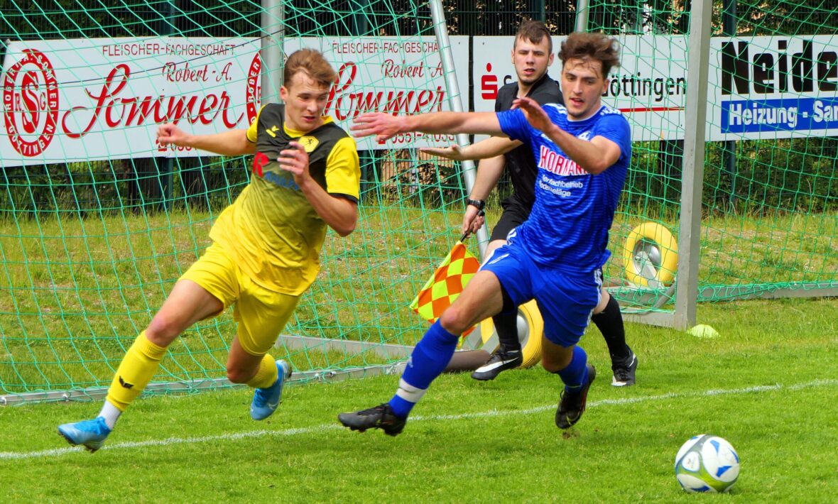 Die Gastgeber begannen hochkonzentriert. Waren sie im Viertelfinale gegen den SSV Vorsfelde in der ersten Halbzeit noch spielerisch klar unterlegen, erzielten sie diesmal fast Gleichwertigkeit. Der höherklassige Gast hatte zwar etwas mehr vom Spiel und im ersten Abschnitt auch eine Chancenplus, doch die Hainberger gefielen mit gutem Zweikampfverhalten und flüssigen Kombinationen. Zweimal konnten sich die Hausherren bei ihrem Schlussmann Justus Mühlhausen bedanken, der Großchancen der Gäste mit starken Paraden vereitelte. Doch in der 36. Spielminute war auch er machtlos, als Athanasios Palanis nach einer Ecke per Kopf die Gästeführung besorgte (Video). Mit den 0:1 wurden die Seiten gewechselt.