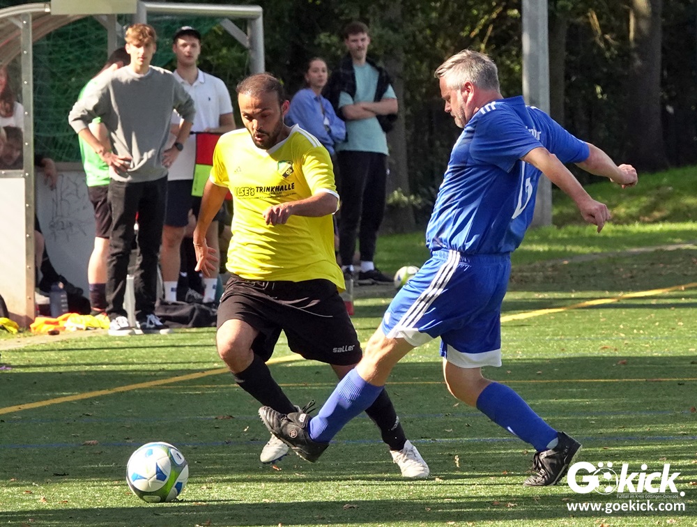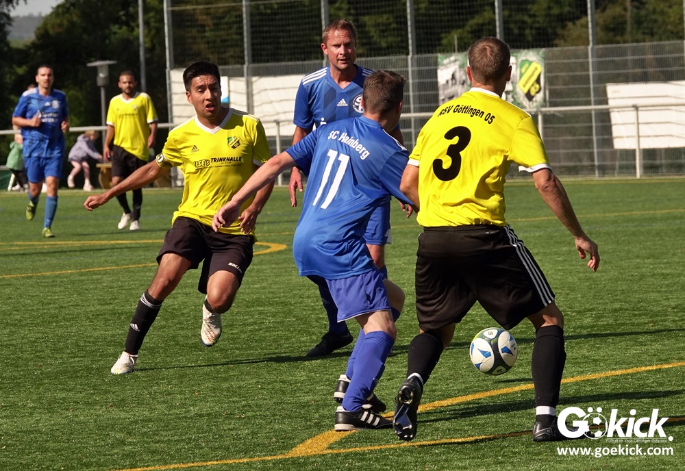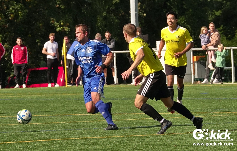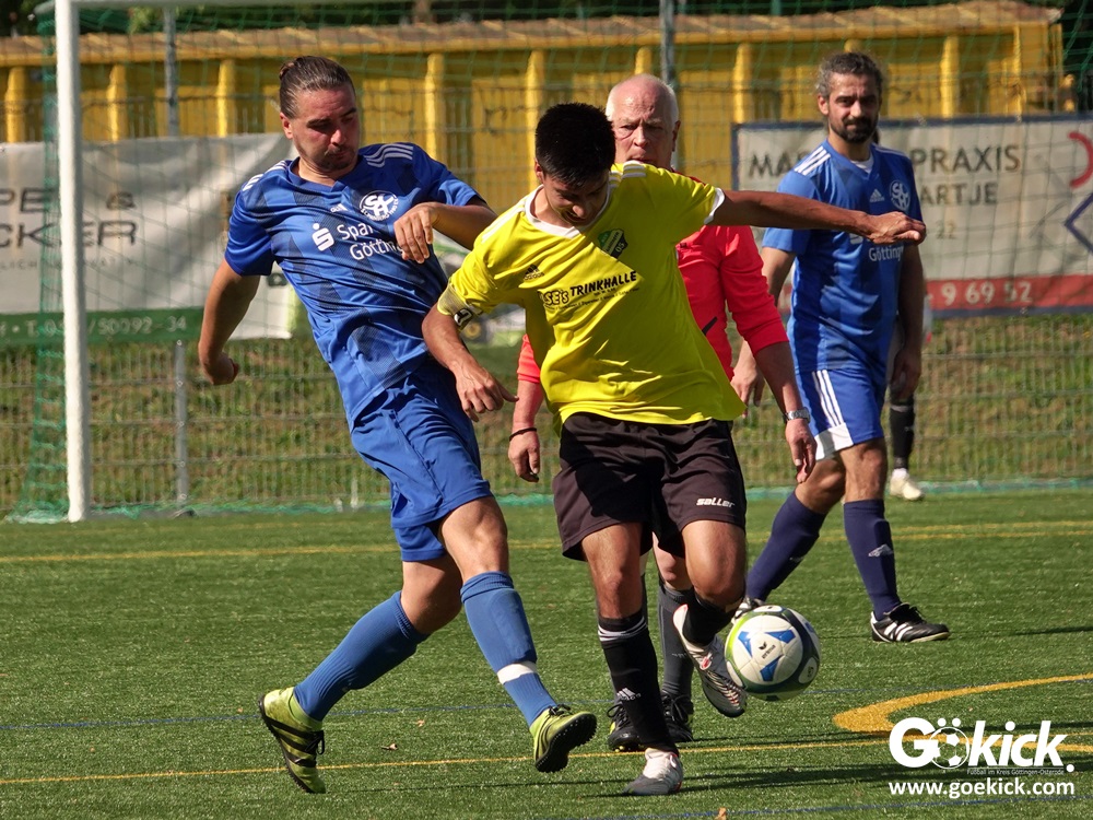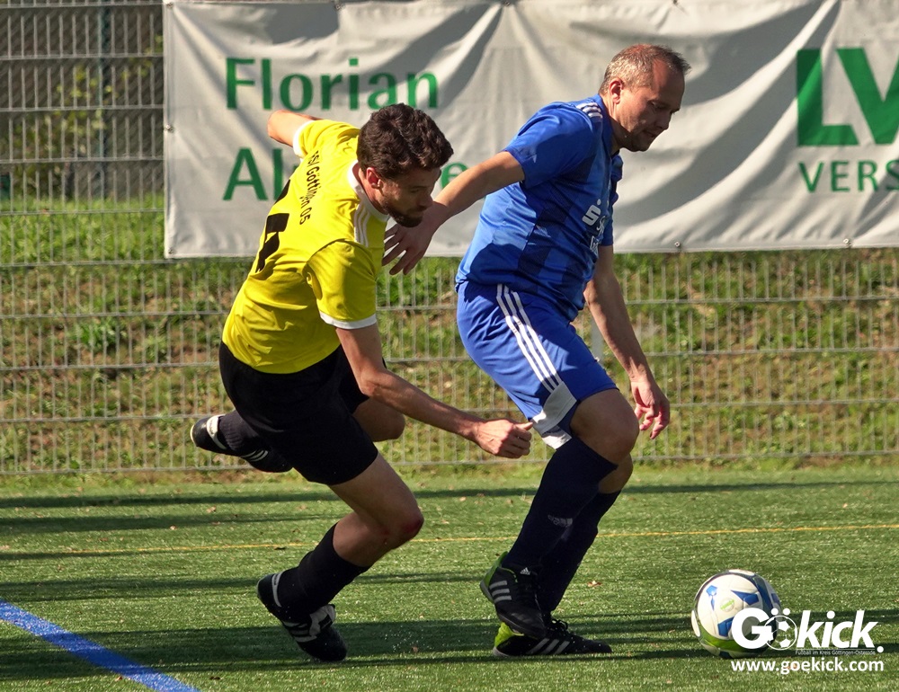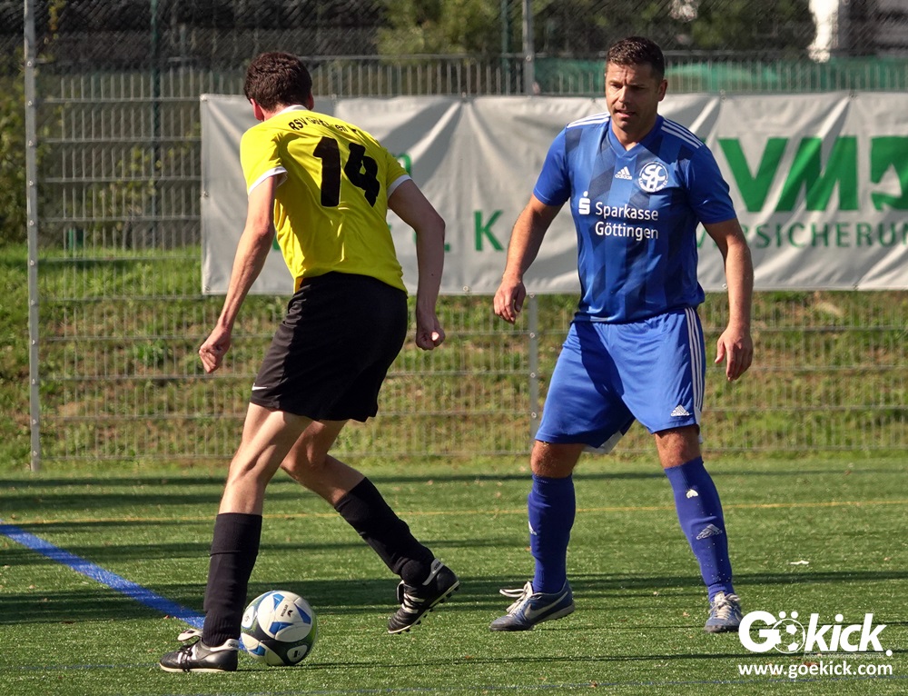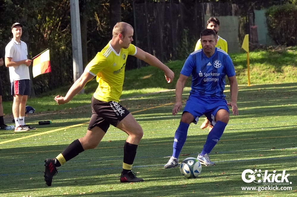 Die Gäste gingen bereit nach fünf Minuten durch Dennis Steinmetz mit 1:0 in Führung. Nur vier Minuten später konnte Ex-Profi Özgür Bilge auf 2:0 erhöhen. Praktisch im Gegenzug keimte durch den Treffer von Shamdin Dalil (10.) Hoffnung bei den Gastgebern auf. Doch Johannes Schweiger stellte nach 25 Minuten auf 3:1. Der Hainberger Elmar Schulte brachte sein Team nach 40 Minuten durch das 4:1 deutlich in Front. Doch Ricardo Castro Hernandez gelang es, die Hainberger Torwart-Legende Reinhard Penno per Kopf zu überwinden (42). Mit dem 2:4 aus Sicht der Gastgeber wurden auf dem Kunstrasenplatz in Geismar die Seiten gewechselt.