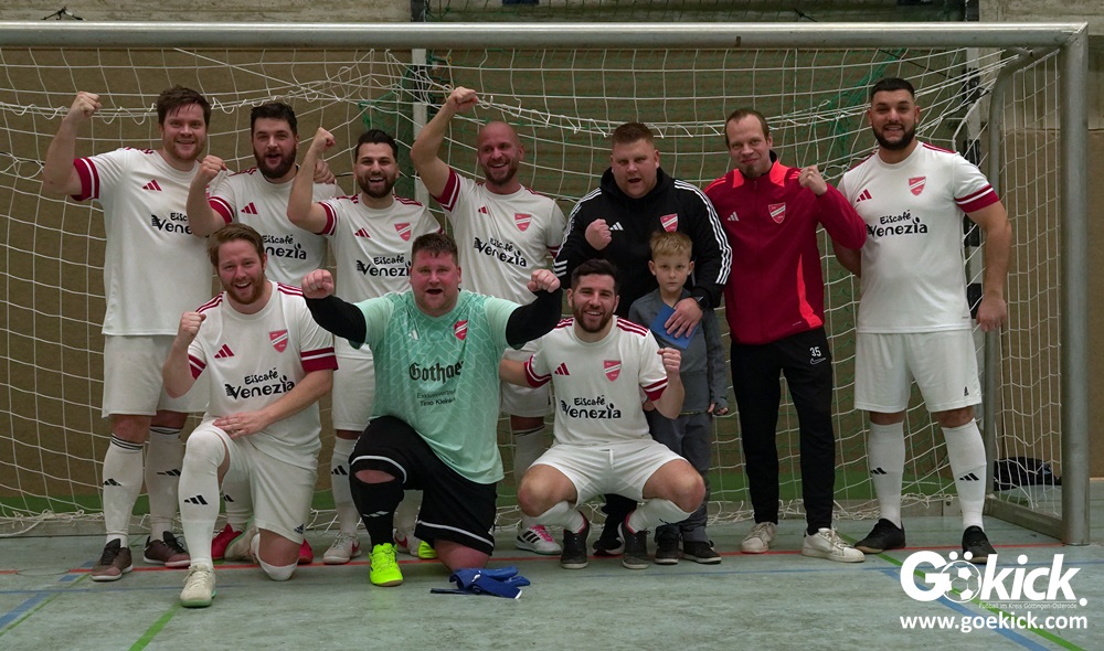 Der Fahrschule Azad Onal-Cup des SC Rosdorf bot am Samstagvormitta alles, was den Hallenfußball in Südniedersachsen auszeichnet: volle Ränge, sportliche Ausgeglichenheit und eine Entscheidung, die erst im allerletzten Spiel fiel. Sieben Mannschaften aus der 2. Kreisklasse traten in einer einfachen Gruppenrunde gegeneinander an, die Sporthalle am Siedlungsweg war ausverkauft.