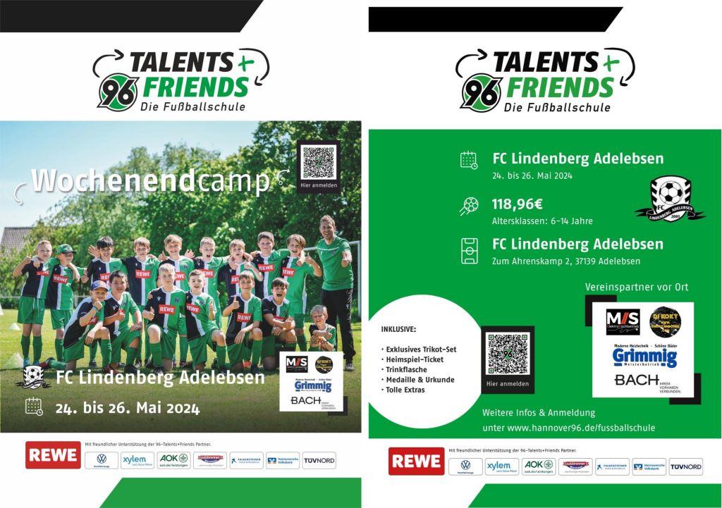 Die Hannover 96 Fußballschule „Talents & Friends“ ist vom 24.05.-26.05.2024 zu Gast beim FC Lindenberg Adelebsen 01 in Adelebsen.