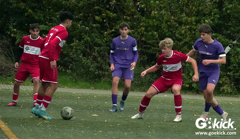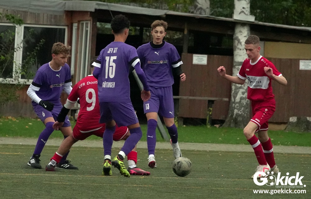 Im Verfolger-Duell der B-Jugend-Bezirksliga unterlag die zweite Mannschaft des JFV 37 Göttingen (U16) am vergangenen Samstag auf dem Kunstrasenplatz des KRÜGERPARKs am Sandweg dem VfR Osterode mit 0:2 (0:1). Mit dem Sieg überholt der Harzer Gast das Göttinger Team in der Tabelle und klettert auf Platz zwei hinter dem Spitzenreiter JSG Seesen.