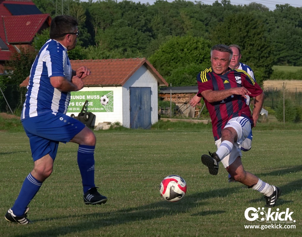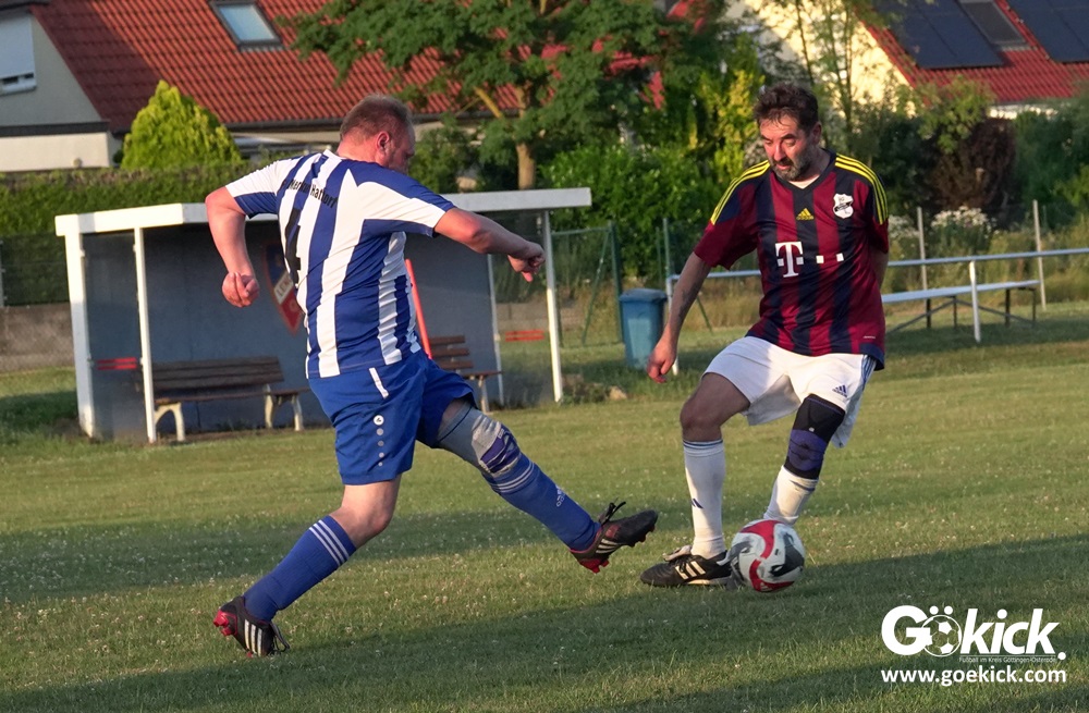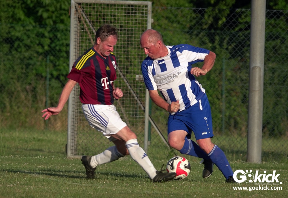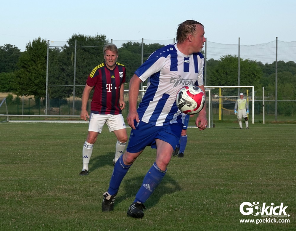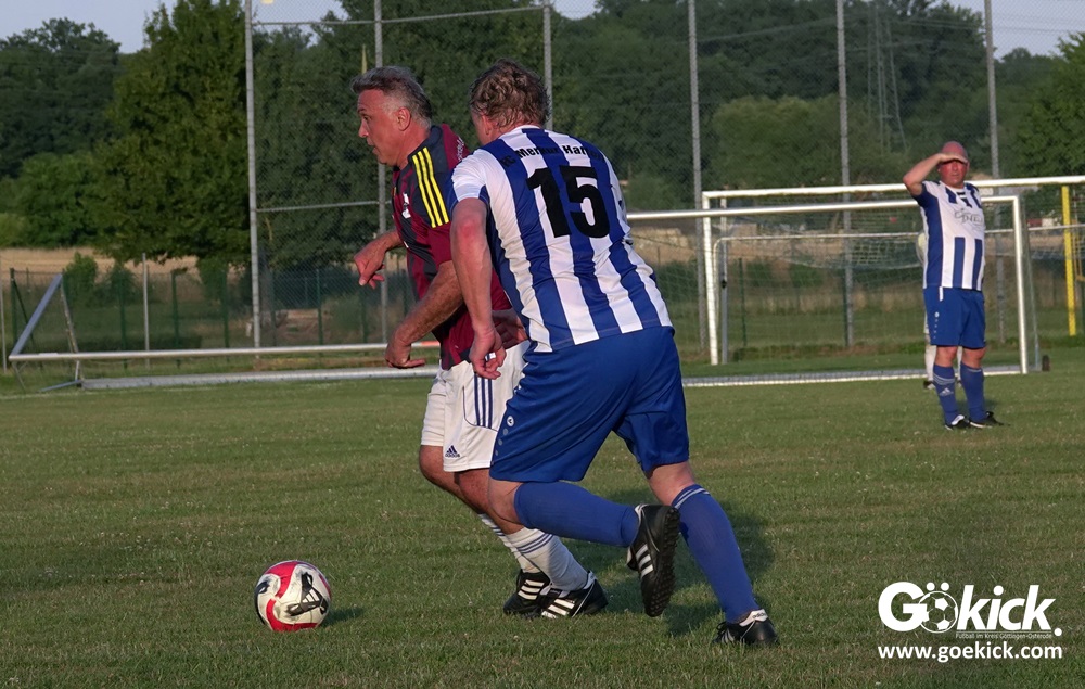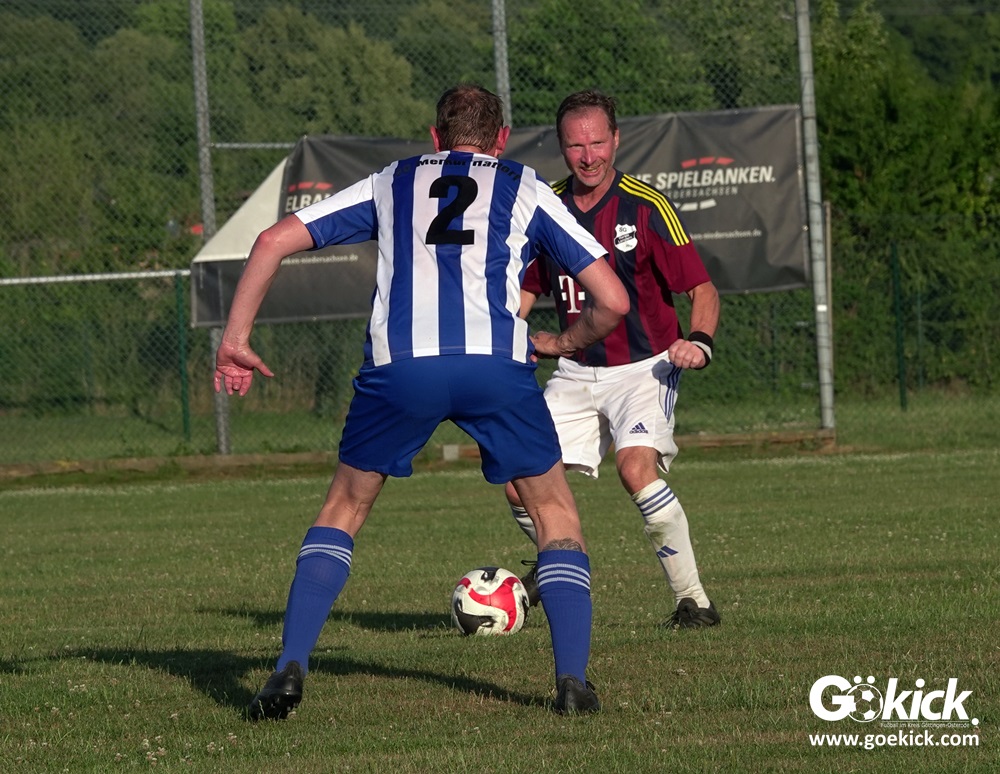 Gerd Häusler brachte die Hausherren bei tropischen Temperaturen nach acht Minuten mit 1:0 in Führung. Weiter Chancen zur Erhöhung der Führung ließen die Gastgeber von Trainer Thomas Streibel liegen. Nach 18 Minuten mussten sie sogar den Ausgleich durch Thomas Kaiser hinnehmen. Und nur drei Minuten später gingen die Gäste aus Hattorf erstmals in dieser Partie durch Klaus Sukkardt mit 2:1 in Front. Obwohl die Hausherren noch zweimal das Aluminium des von Udo Schirmer gehüteten Gäste-Tores trafen, gingen sie mit einem Rückstand in die Halbzeitpause.