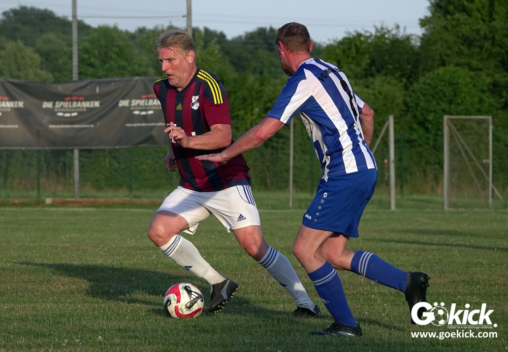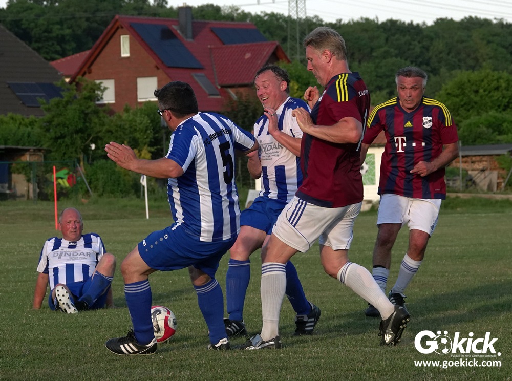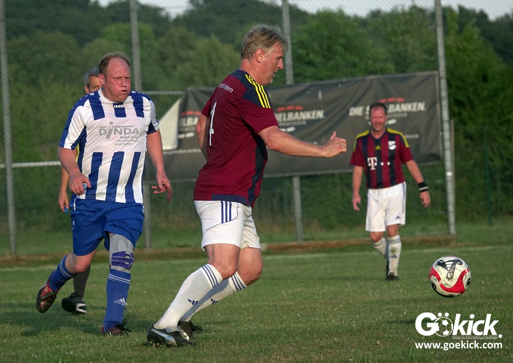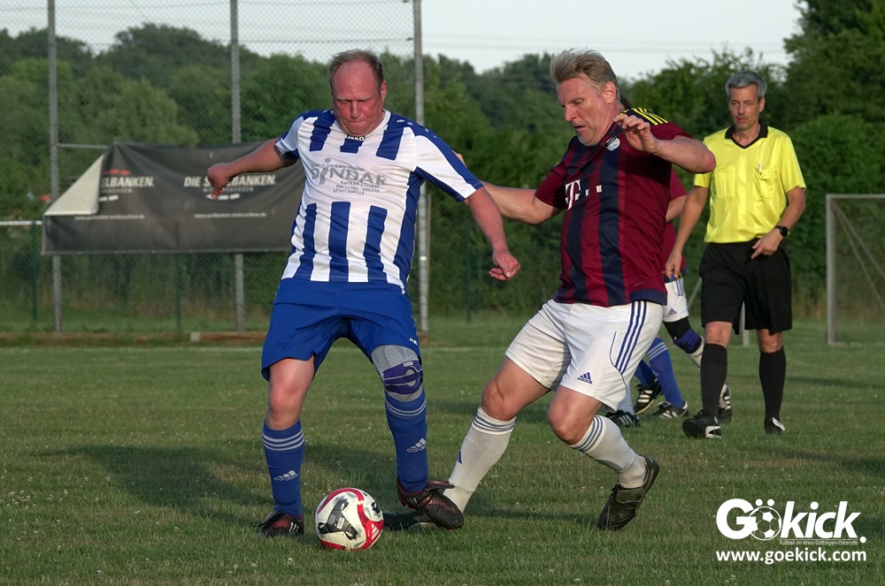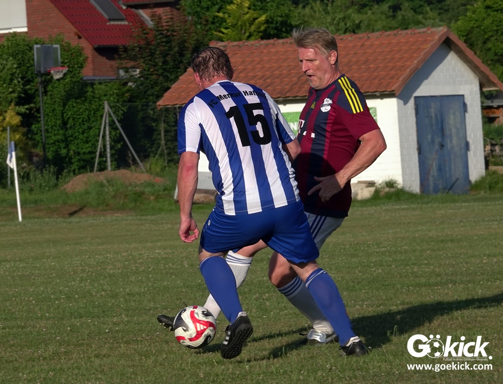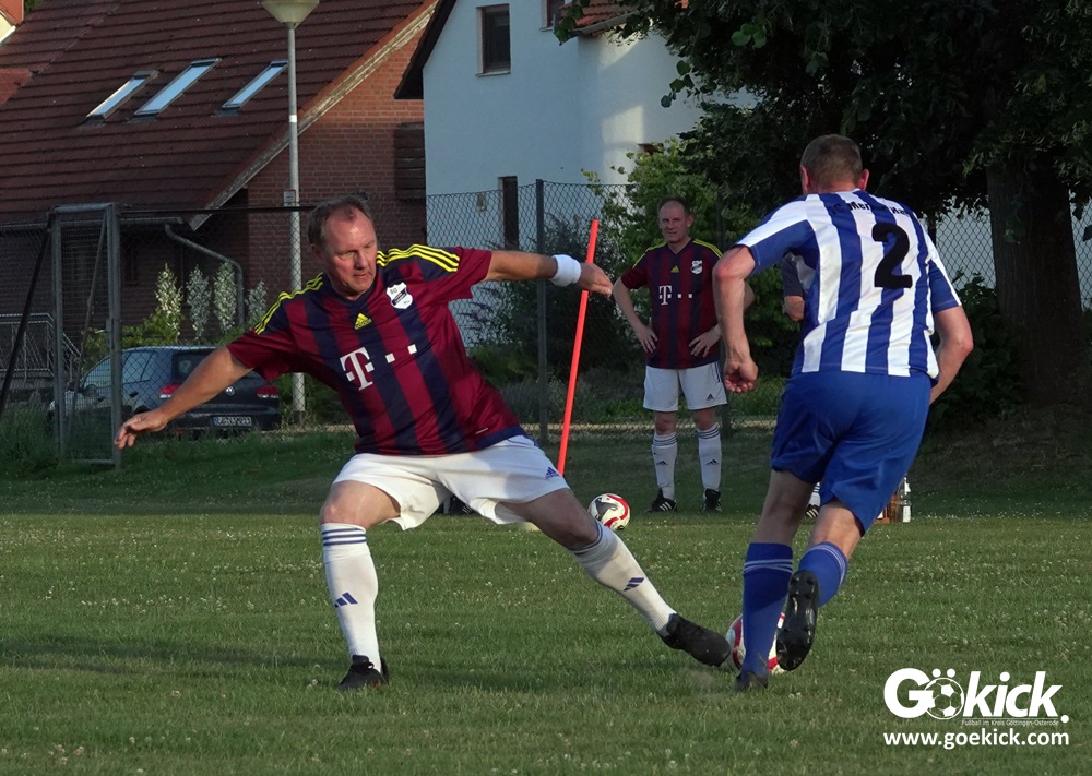 Gerd Häusler brachte die Hausherren bei tropischen Temperaturen nach acht Minuten mit 1:0 in Führung. Weiter Chancen zur Erhöhung der Führung ließen die Gastgeber von Trainer Thomas Streibel liegen. Nach 18 Minuten mussten sie sogar den Ausgleich durch Thomas Kaiser hinnehmen. Und nur drei Minuten später gingen die Gäste aus Hattorf erstmals in dieser Partie durch Klaus Sukkardt mit 2:1 in Front. Obwohl die Hausherren noch zweimal das Aluminium des von Udo Schirmer gehüteten Gäste-Tores trafen, gingen sie mit einem Rückstand in die Halbzeitpause.