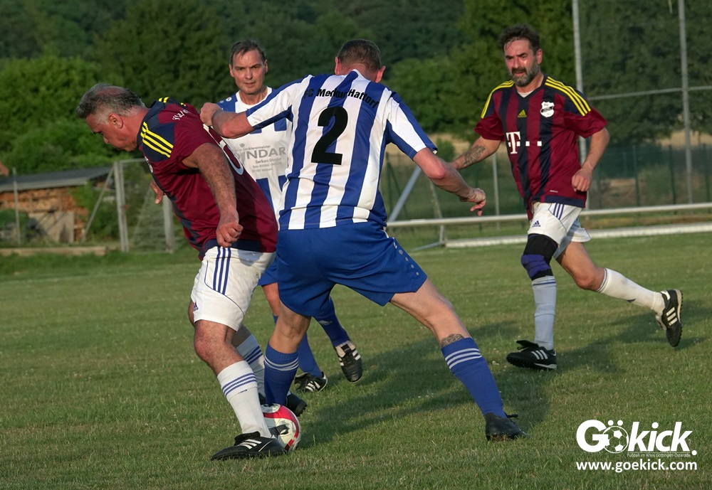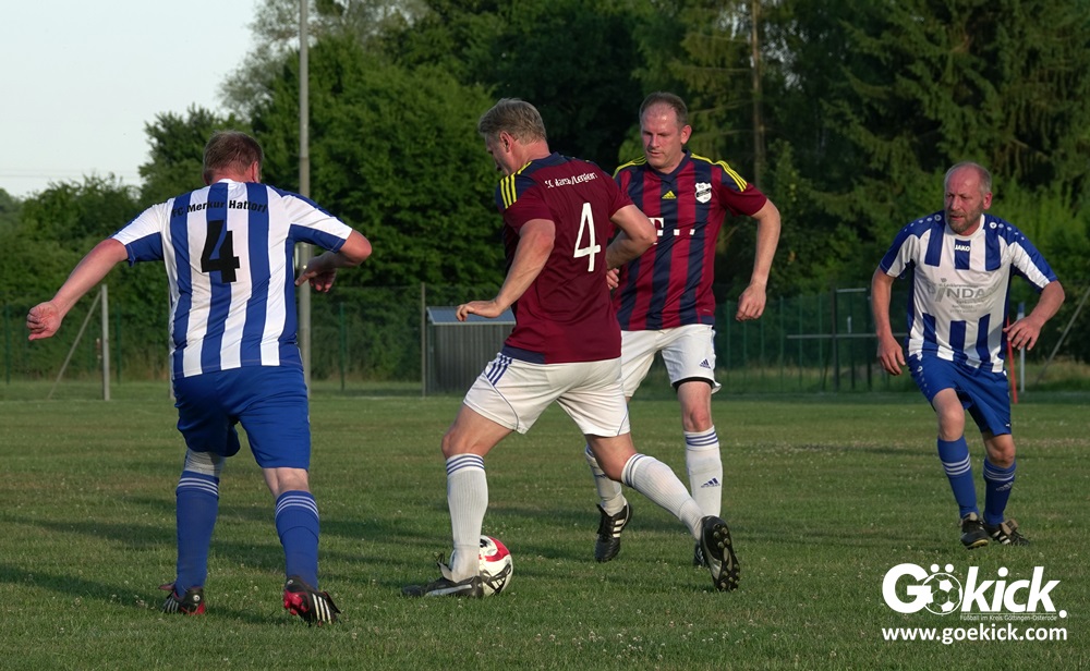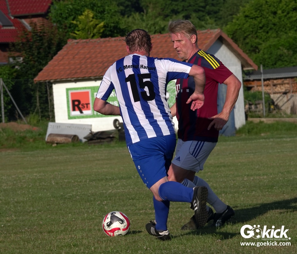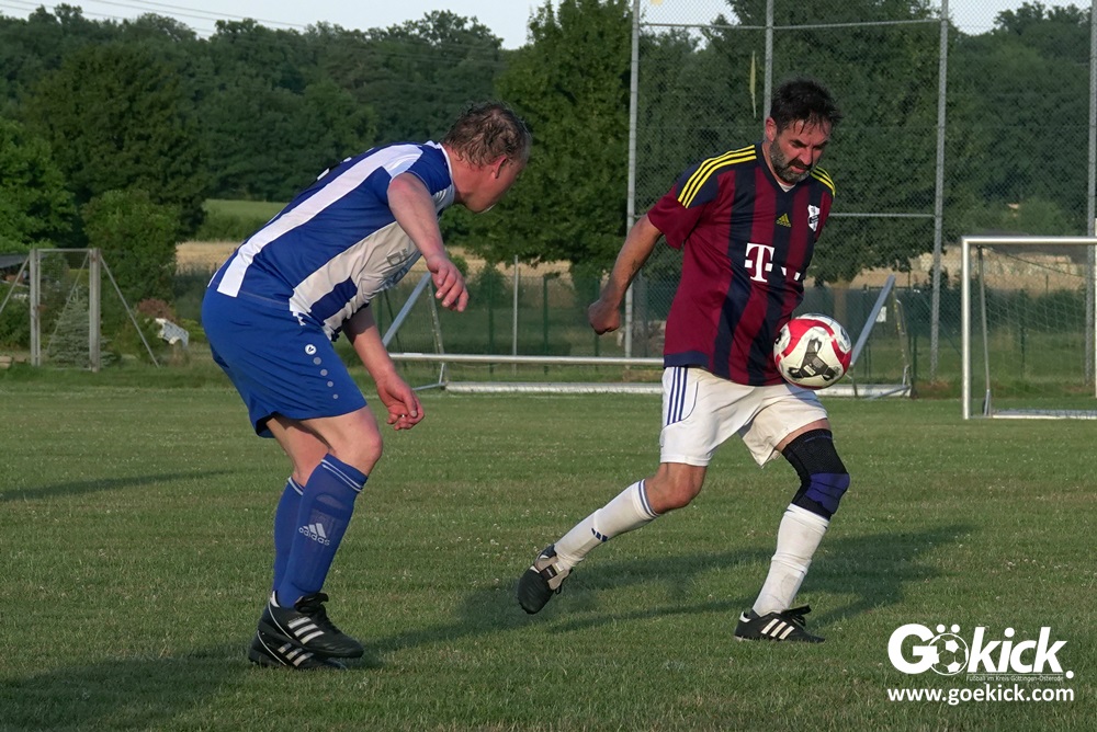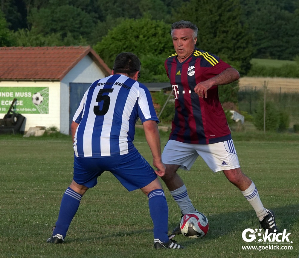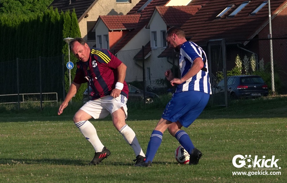 Gerd Häusler brachte die Hausherren bei tropischen Temperaturen nach acht Minuten mit 1:0 in Führung. Weiter Chancen zur Erhöhung der Führung ließen die Gastgeber von Trainer Thomas Streibel liegen. Nach 18 Minuten mussten sie sogar den Ausgleich durch Thomas Kaiser hinnehmen. Und nur drei Minuten später gingen die Gäste aus Hattorf erstmals in dieser Partie durch Klaus Sukkardt mit 2:1 in Front. Obwohl die Hausherren noch zweimal das Aluminium des von Udo Schirmer gehüteten Gäste-Tores trafen, gingen sie mit einem Rückstand in die Halbzeitpause.