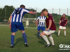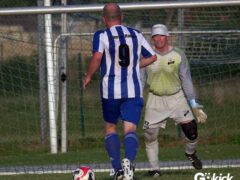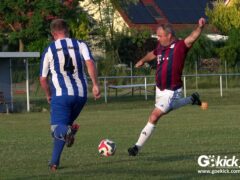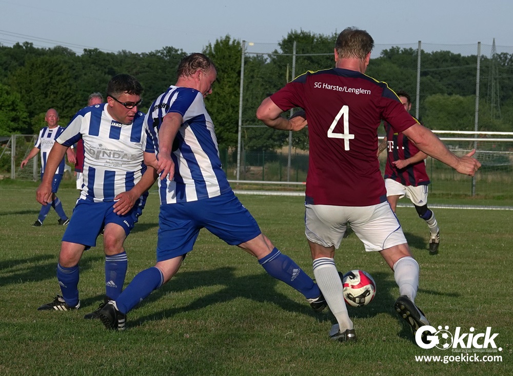Nach Wiederanpfiff von Schiedsrichter Dr. Kay Terpe dauerte es bis zur 37. Spielminute, ehe der Unparteiische auf Strafstoß für die Gäste entschied, als Thomas Kaiser im Strafraum der SGL gefoult wurde. Lutz Naumann verwandelte sicher zum 3:1 für Hattorf (Video). Die Hausherren wollten nicht ausscheiden und antworteten mit wütenden Angriffen. Doch Udo Schirmer im Tor der Gäste erwies sich als Meister seines Faches. In der 50. Spielminute war aber auch er machtlos, als Robert Semenic aus zehn Metern zum 2:3 für die Hausherren traf. In den letzten zehn Minuten dieser Partie rannten die Gastgeber an und trafen erneut den Querbalken des Hattorf-Tores. Doch ein weiterer Treffer sollte nicht gelingen. Nach dem Schlusspfiff war die Freude beim FC Merkur Hattorf groß. Die Spieler gewannen die Hitzeschlacht von Lenglern mit 3:2 und stehen nun erschöpft aber glücklich in der Qualifikation zur Niedersachsenmeisterschaft 2026.