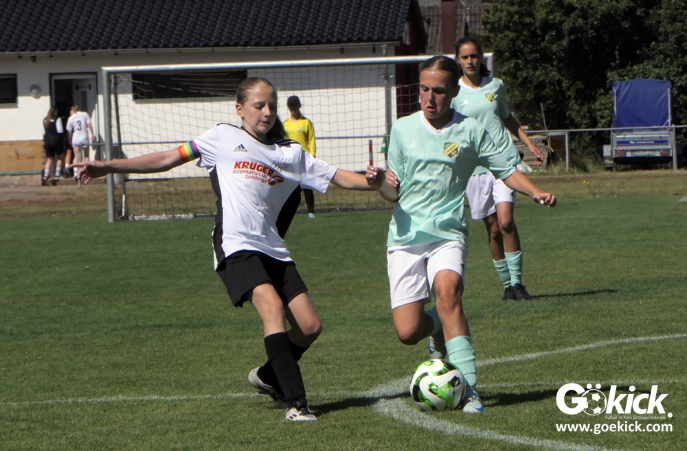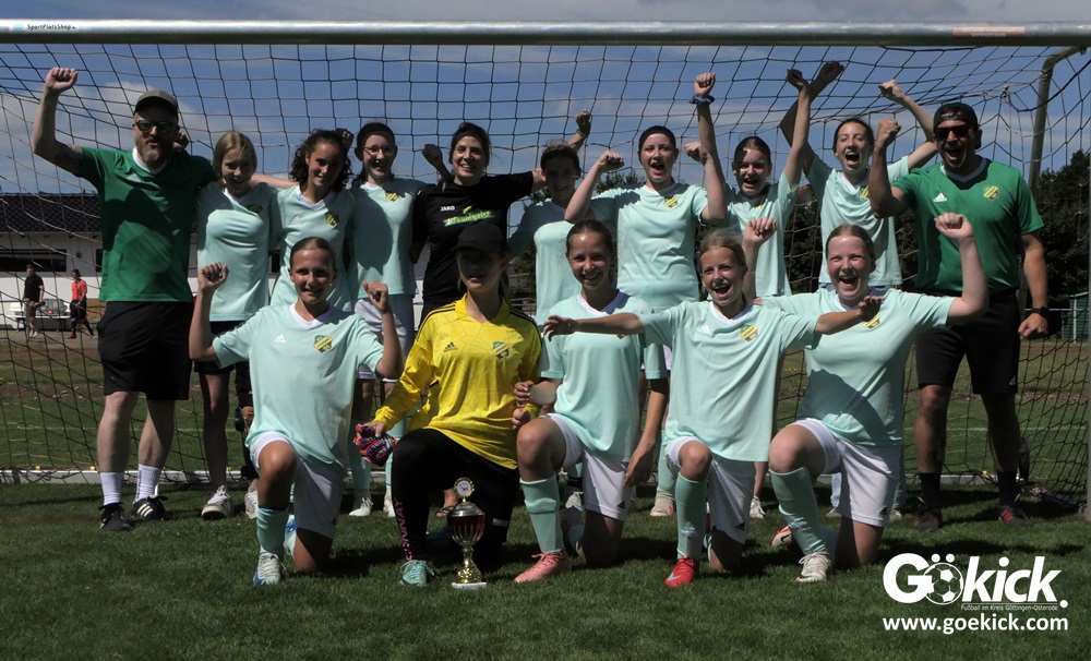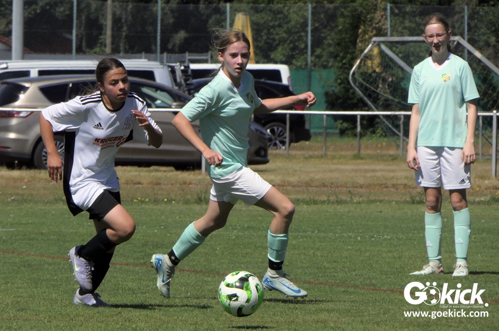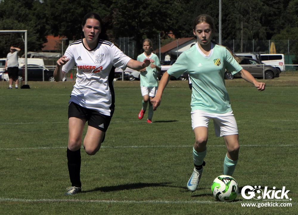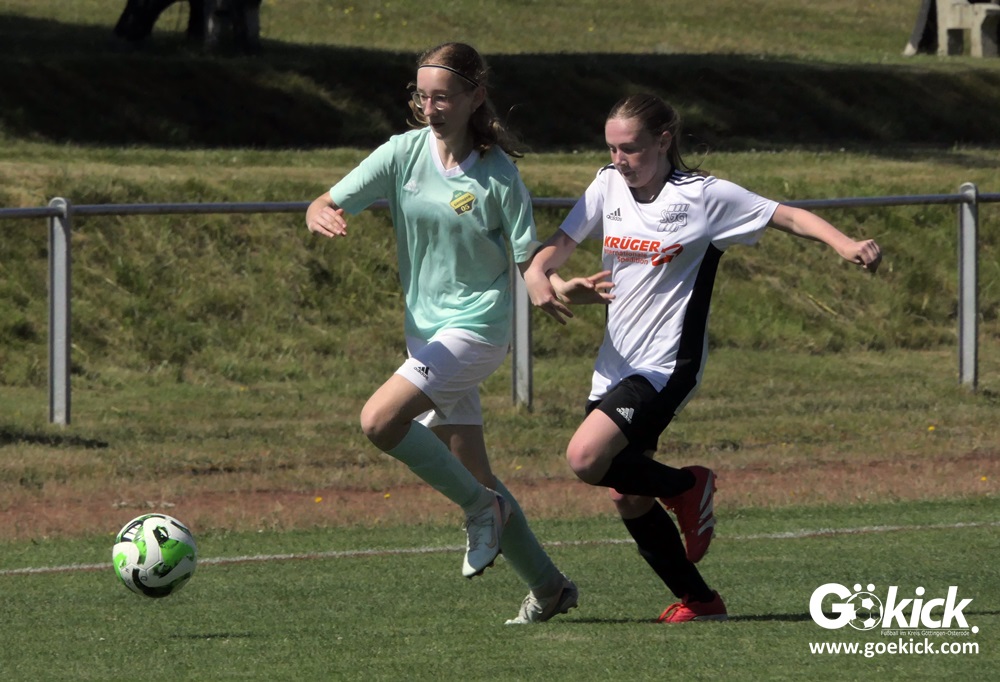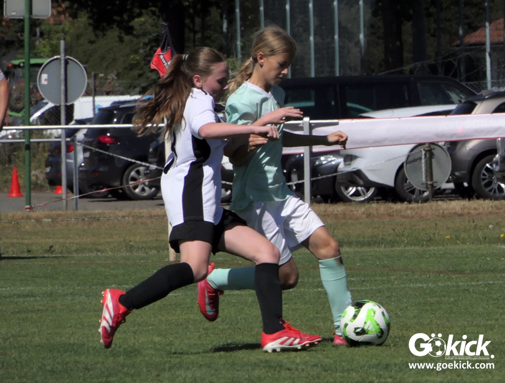 In der D-Mädchen-Kreisliga war der Vorsprung des Meisters SVG Göttingen auf den Verfolger RSV Geismar hauchdünn – wie Gökick exklusiv berichtete. Beide Teams waren punktgleich mit gleicher Tordifferenz. Die SVG feierte die Meisterschaft also nur aufgrund der mehr erzielten Tore. Im Kreispokalfinale am vergangenen Samstag trafen sich die beiden Mannschaften auf dem Sportplatz in Barbis wieder. Das Punktspiel der beiden Kontrahenten in der Kreisliga hatte die SVG auf eigenem Platz mit 3:2 gewonnen. Doch das Double blieb den Sandweg-Kickerinnen verwehrt. Im Pokalfinale drehte der RSV Geismar den Spieß um und gewann deutlich mit 6:3 (6:3).
