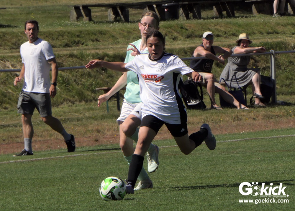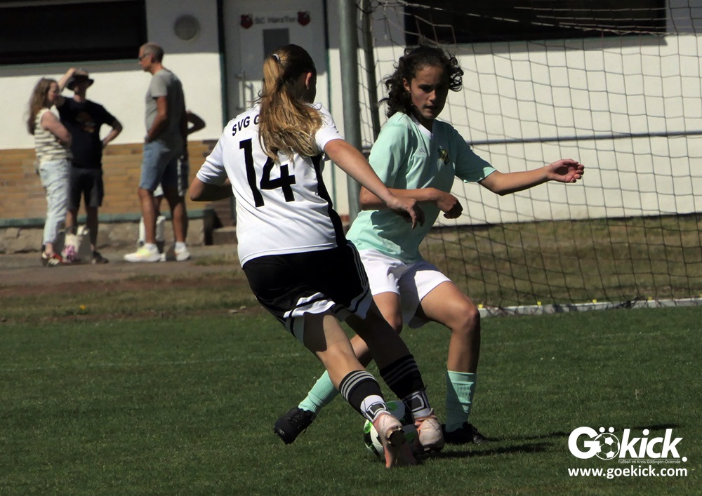 Johanna Störmer erzielte bereits in der ersten Spielminute die Führung für den RSV. Anschließend gelang Lisa Reichler in den Minuten 8, 9 und 12 ein lupenreiner Hattrick innerhalb von nur vier Minuten. Respektabel! Das 5:0 besorgte Sarah Rühlmann in der 13. Spielminute. Der Meister wurde also regelrecht vorgeführt. Doch dann reagierte die Mannschaft von Trainer Mike Lewandowski. Julia Breitling verkürzte nach 15 Minuten auf 1:5, Mila Maria Faulstich traf nur eine Minuten später zum 2:5 aus Sicht der Sandweg-Kickerinnen. Und als Julia Breitling mit ihrem zweiten Treffer in der 19. Spielminute gar das 3:5 für die SVG gelang, war die Hoffnung geboren, in den restlichen 41 Minuten Spielzeit das Finale noch drehen zu können. Doch Sarah Rühlmann begrub diese Wünsche mit dem 6:3 für den RSV Geismar in der 27. Spielminute. Damit ging es in die Halbzeitpause.