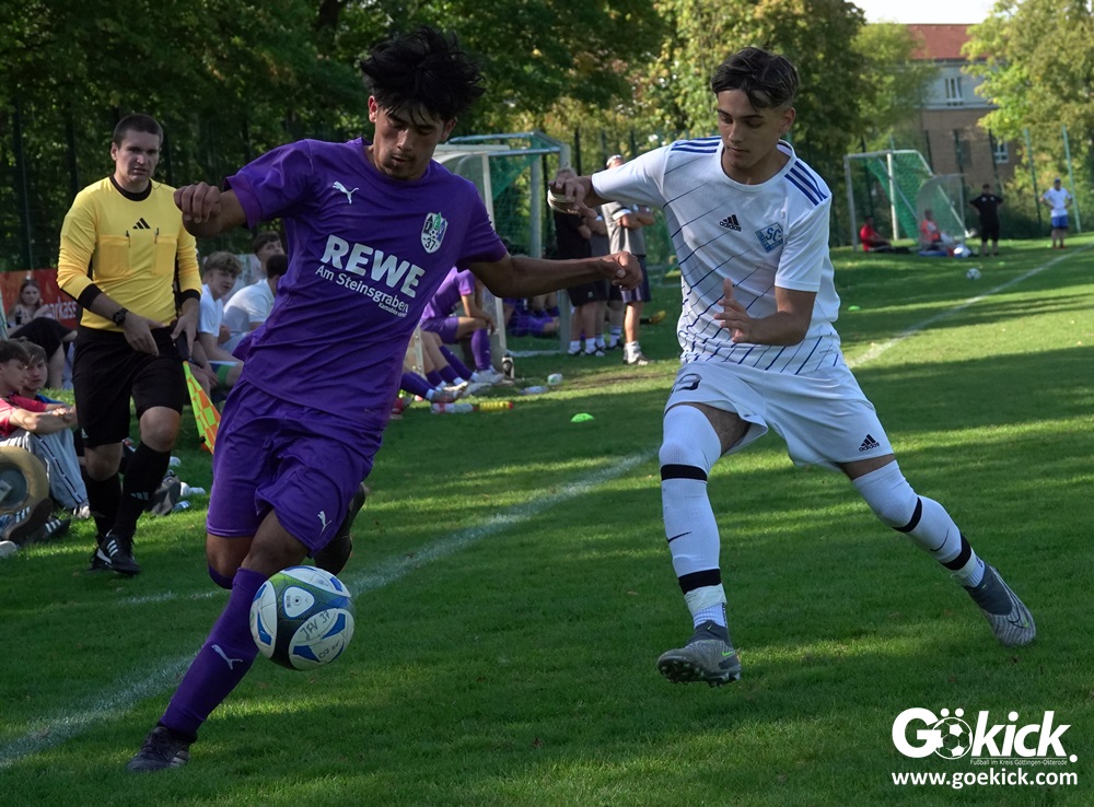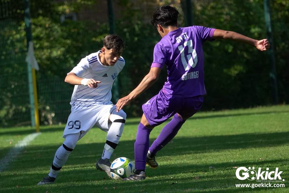 Schon in der Anfangsphase ergriff Göttingen die Initiative und setzte die Gästeabwehr immer wieder unter Druck. In der 20. Minute zahlte sich die Überlegenheit erstmals aus: Rohin Walizada tankte sich von halblinks in den Strafraum und schloss aus 14 Metern ab. Zwar war Gästetorwart Carlos Koch noch am Ball, doch das Spielgerät fand seinen Weg ins Netz. Nur zwölf Minuten später sorgte Clemens Vogel für den nächsten Höhepunkt. Nach schnellem Umschaltspiel wurde er mustergültig bedient und schob den Ball überlegt aus 20 Metern am Schlussmann vorbei zum 2:0.