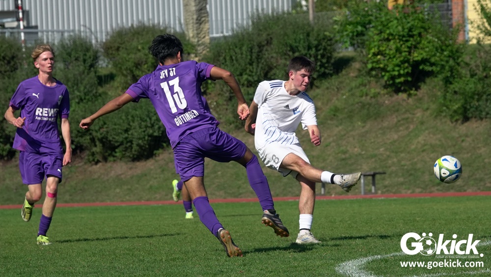 Nach 92 Minuten pfiff Marc Schramm die Begegnung ab. Mit dem dritten Saisonsieg klettert der JFV 37 Göttingen auf den vierten Tabellenplatz der Landesliga Süd. Die Gäste aus Salzgitter bleiben dagegen mit einem Punkt am Tabellenende.