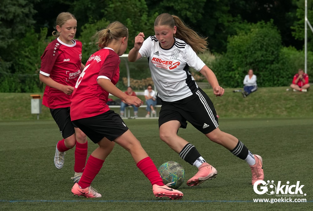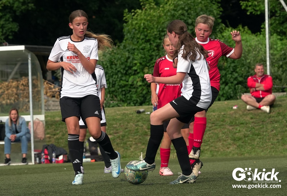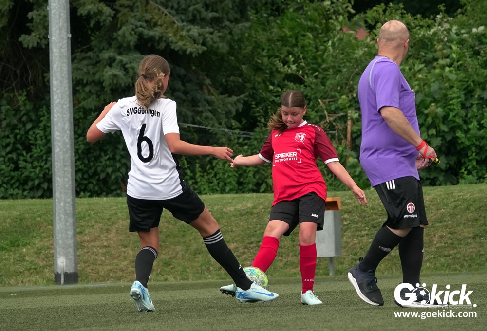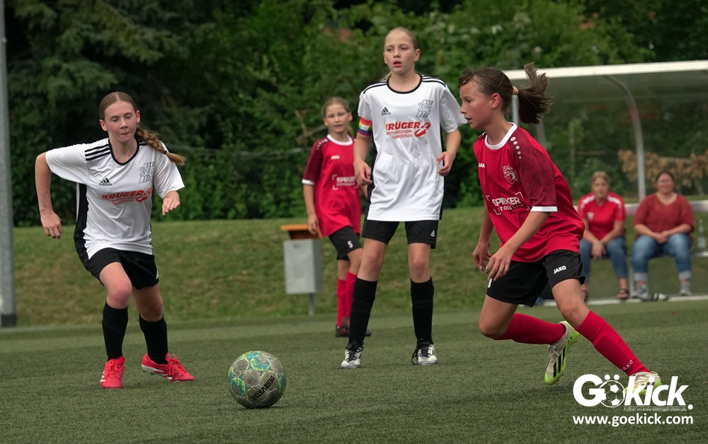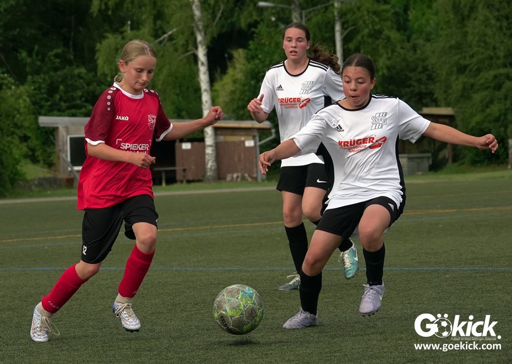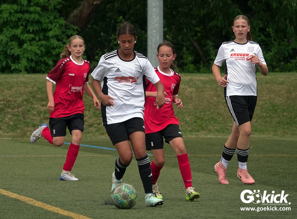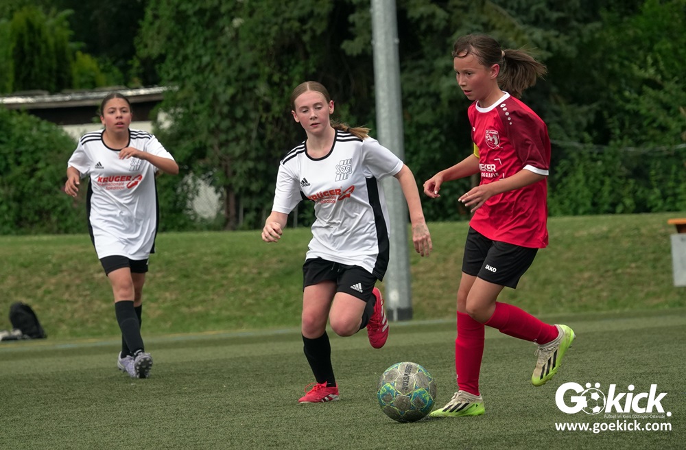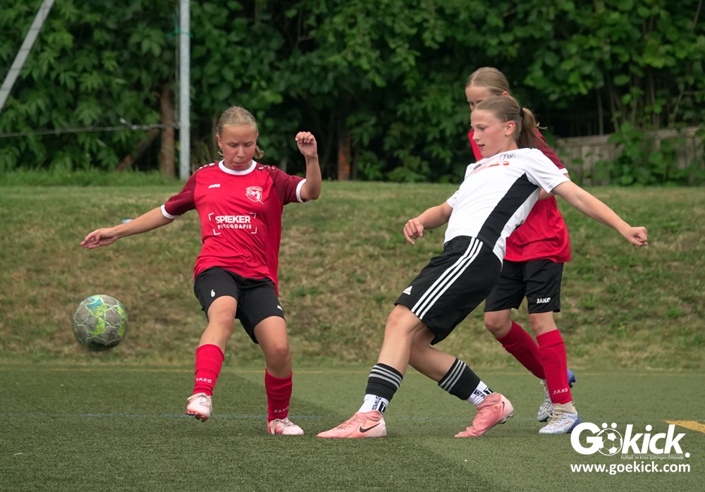 Millimeter-Entscheidung in der D-Mädchen-Kreisliga: Am vorletzten Spieltag standen Tabellenführer FC Merkur Hattorf, der Tabellenzweite SVG Göttingen und der Dritte des Klassements, der RSV Geismar, punktgleich, nur getrennt durch die Tordifferenz an der Spitze der Liga. Der abschließende Spieltag musste entscheiden, wer sich am Ende mit dem Titel Kreismeister schmücken durfte.