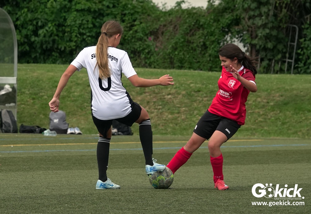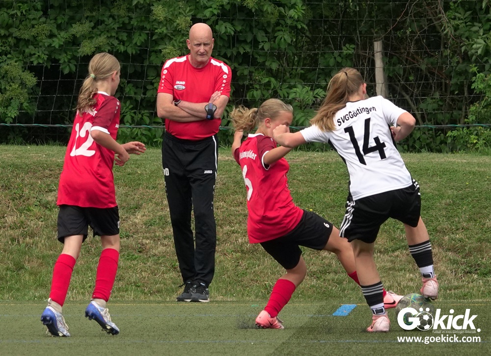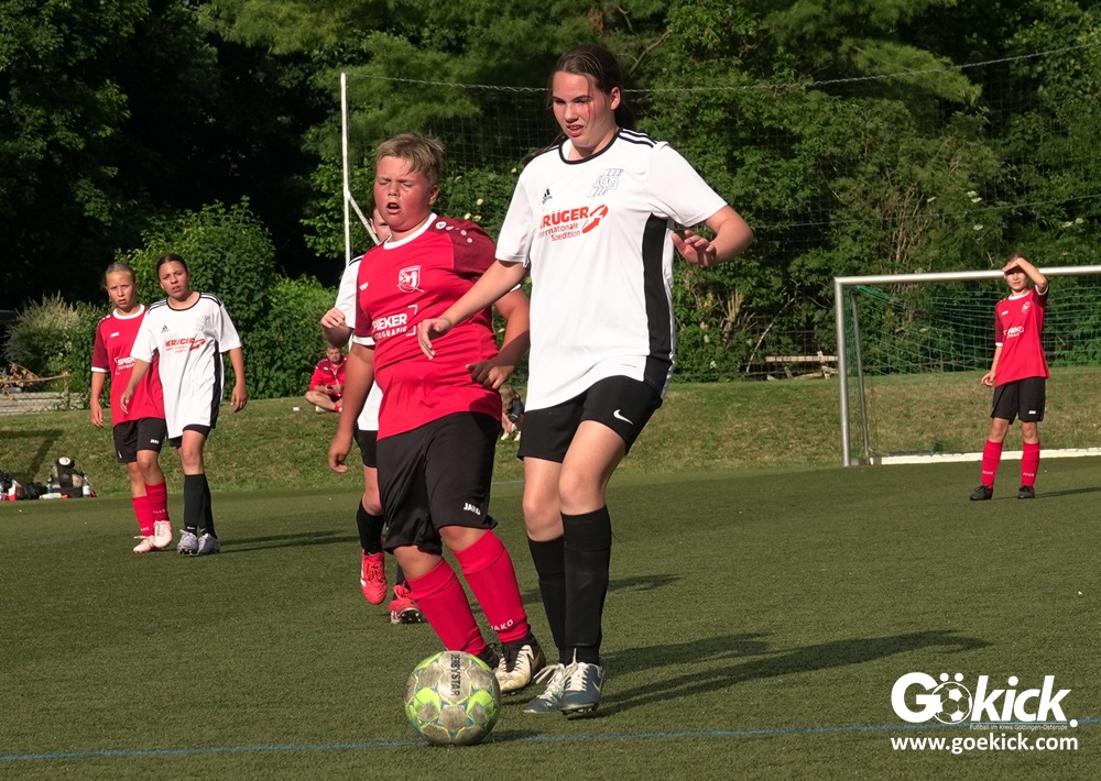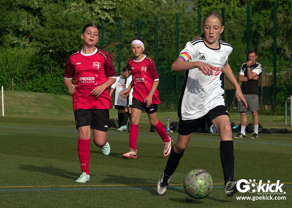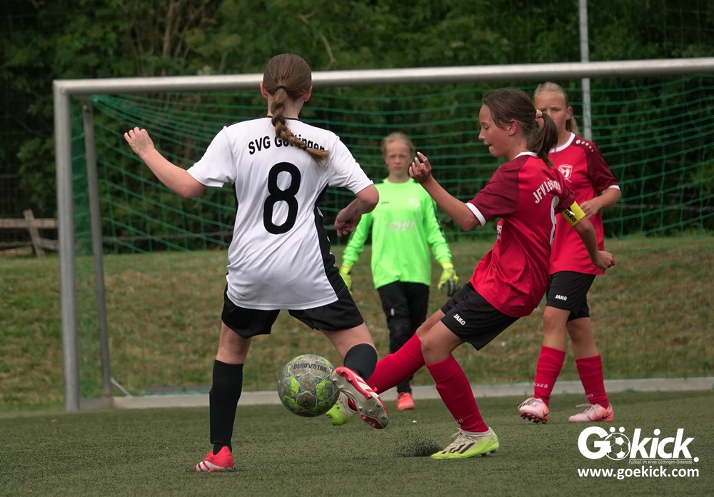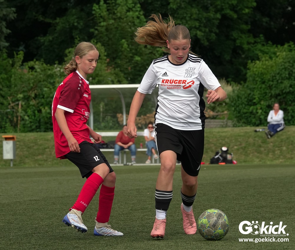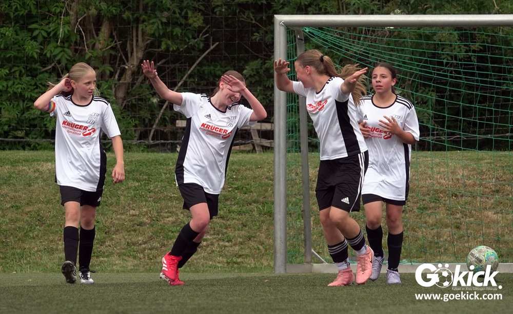 Die SVG besiegte am Dienstag auf dem eigenen Kunstrasenplatz den JFV Leinepolder mit 6:0 und übernahm selbst die Tabellenführung. Fest stand: Sollte der RSV Geismar am Mittwoch mit mehr als zehn Toren gegen das punktlose Schlusslicht TSV Nesselröden II gewinnen, dann dürfte das Team aus Geismar die Meisterschaft feiern. Doch es reichte für den RSV nur zum 10:0. Somit feierte die SVG Göttingen nur aufgrund eines einzigen Tores die Meisterschaft in der D-Mädchen-Kreisliga. Glückwunsch!
