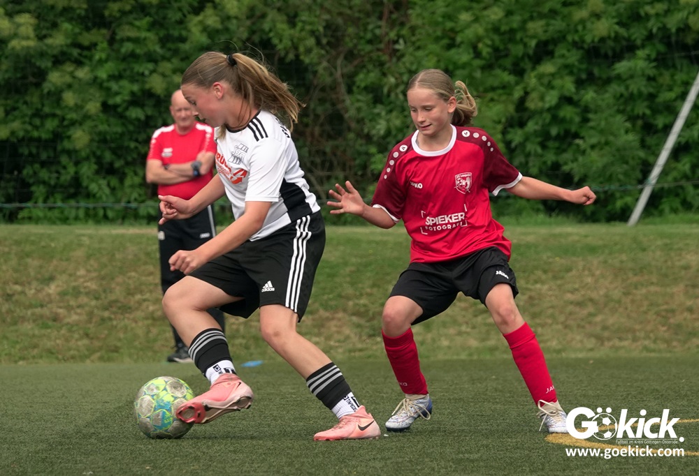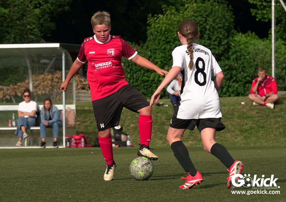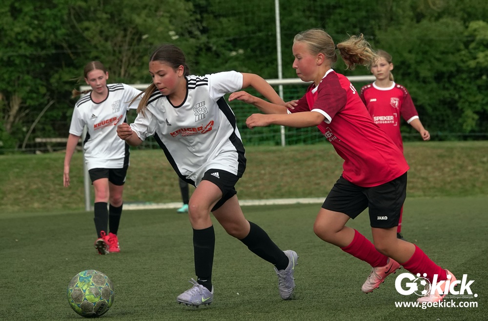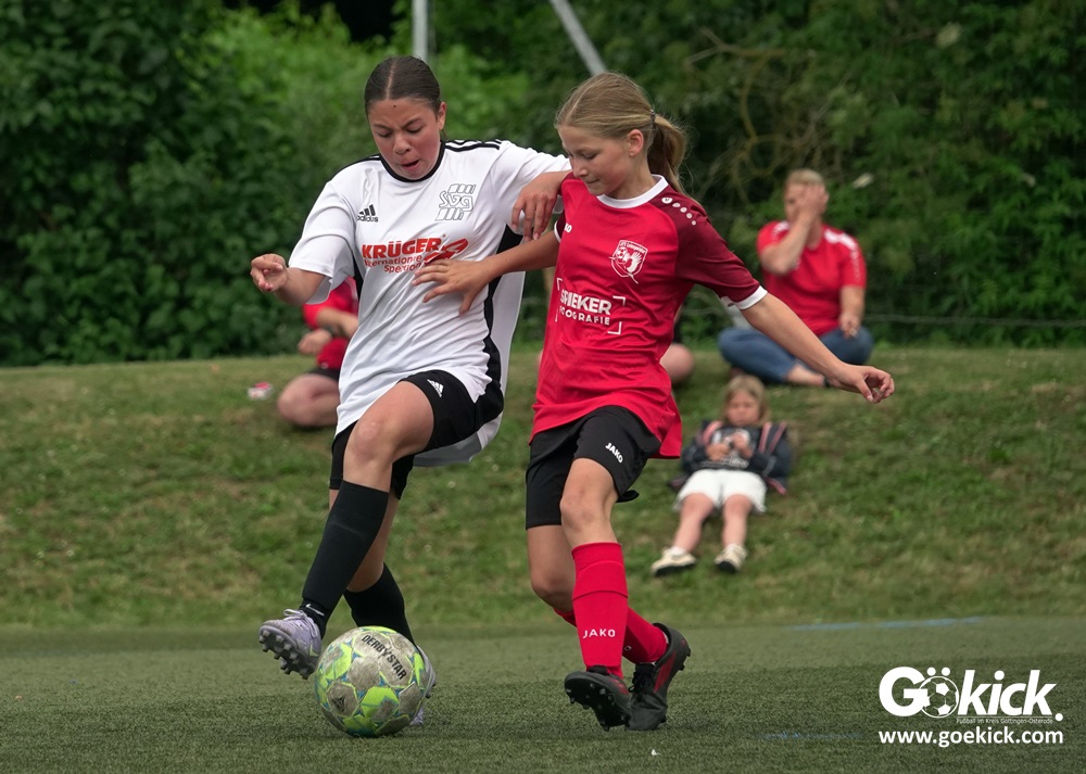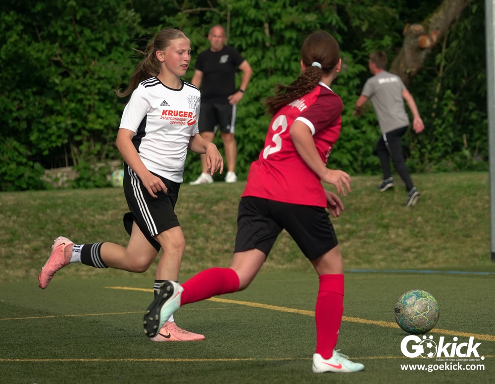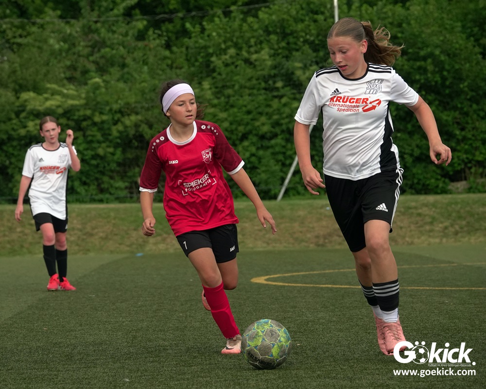 Die SVG besiegte am Dienstag auf dem eigenen Kunstrasenplatz den JFV Leinepolder mit 6:0 und übernahm selbst die Tabellenführung. Fest stand: Sollte der RSV Geismar am Mittwoch mit mehr als zehn Toren gegen das punktlose Schlusslicht TSV Nesselröden II gewinnen, dann dürfte das Team aus Geismar die Meisterschaft feiern. Doch es reichte für den RSV nur zum 10:0. Somit feierte die SVG Göttingen nur aufgrund eines einzigen Tores die Meisterschaft in der D-Mädchen-Kreisliga. Glückwunsch!
