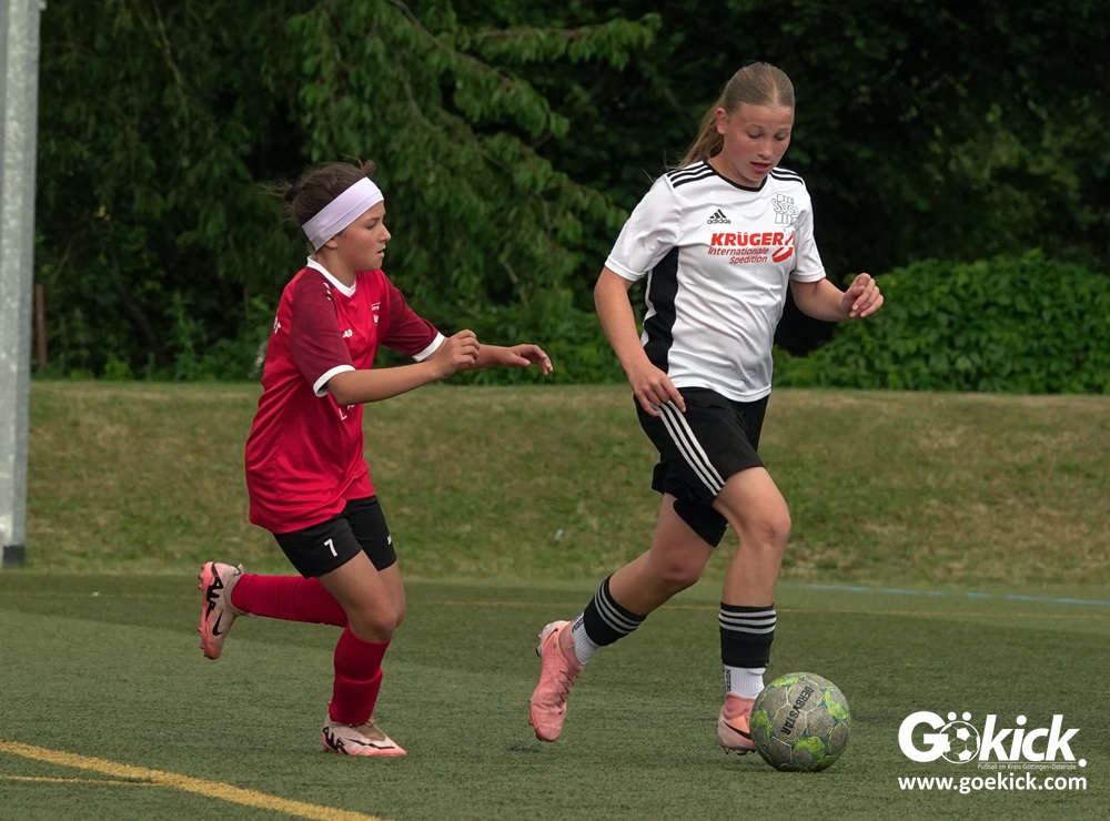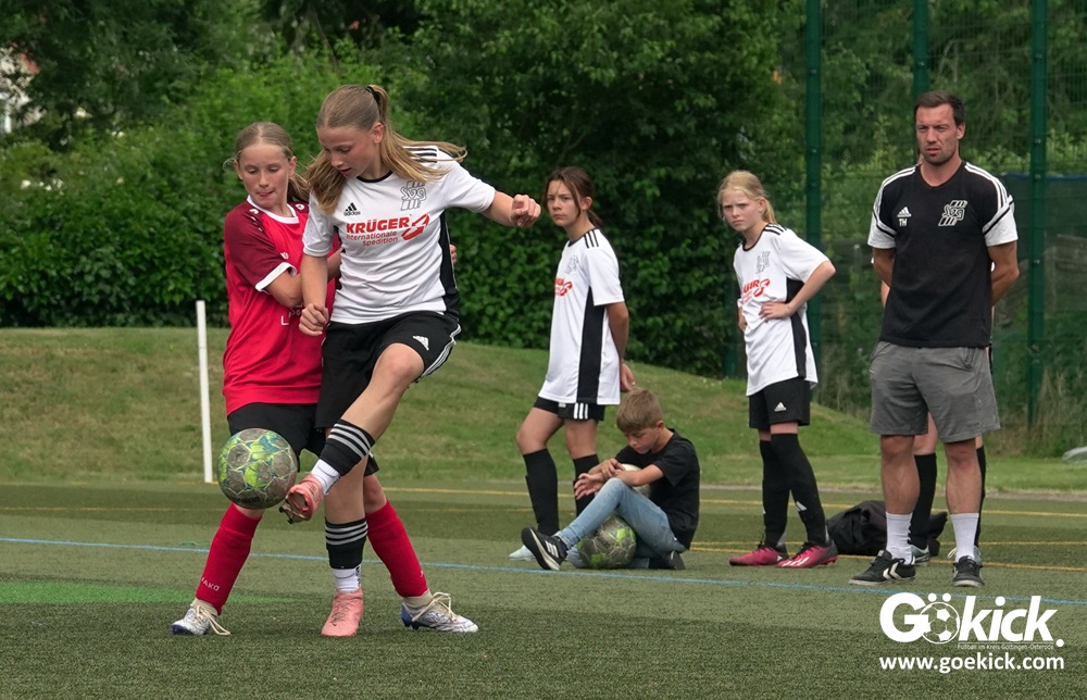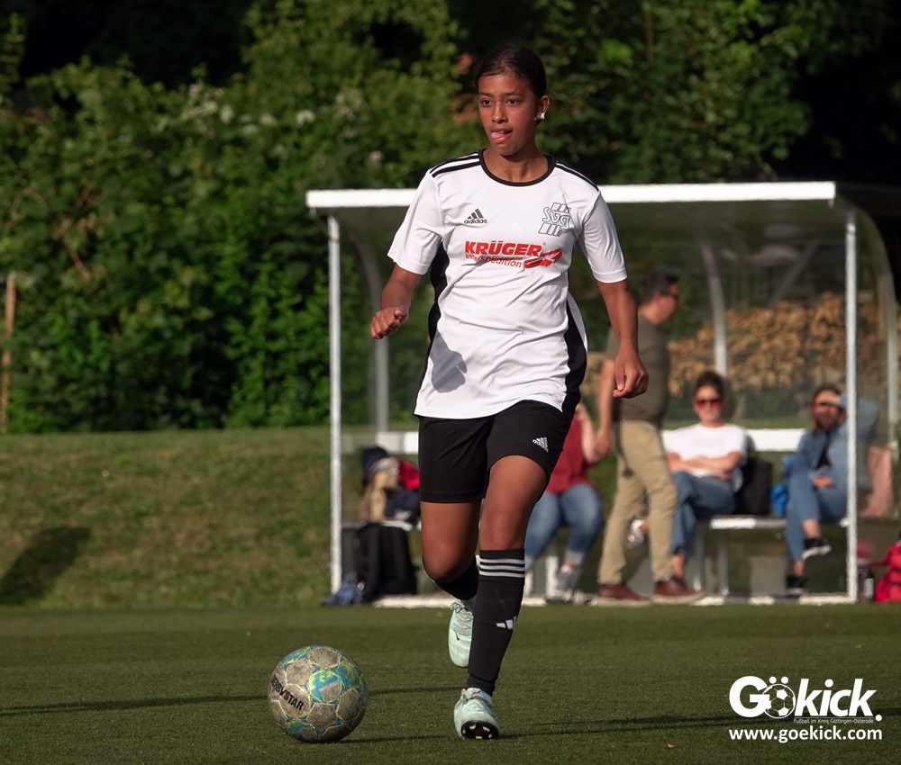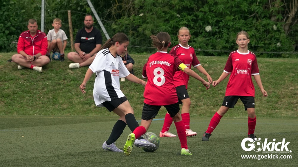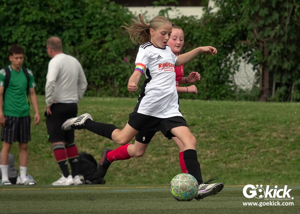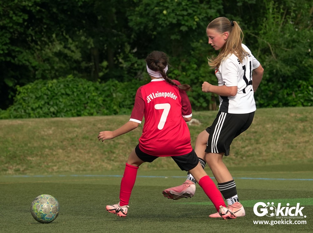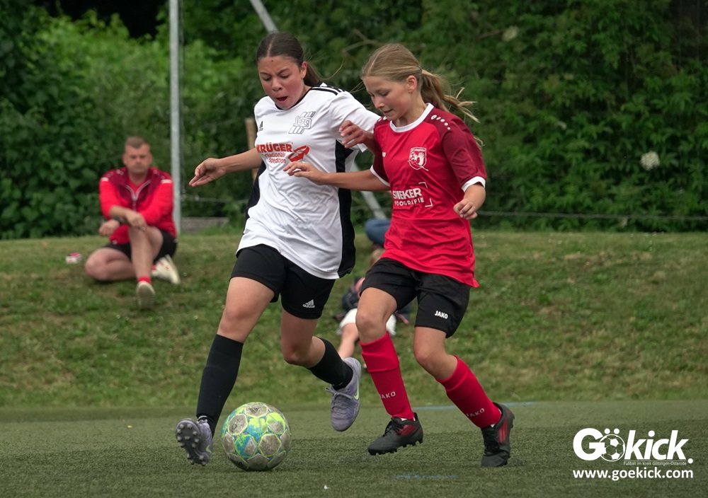 Die SVG besiegte am Dienstag auf dem eigenen Kunstrasenplatz den JFV Leinepolder mit 6:0 und übernahm selbst die Tabellenführung. Fest stand: Sollte der RSV Geismar am Mittwoch mit mehr als zehn Toren gegen das punktlose Schlusslicht TSV Nesselröden II gewinnen, dann dürfte das Team aus Geismar die Meisterschaft feiern. Doch es reichte für den RSV nur zum 10:0. Somit feierte die SVG Göttingen nur aufgrund eines einzigen Tores die Meisterschaft in der D-Mädchen-Kreisliga. Glückwunsch!