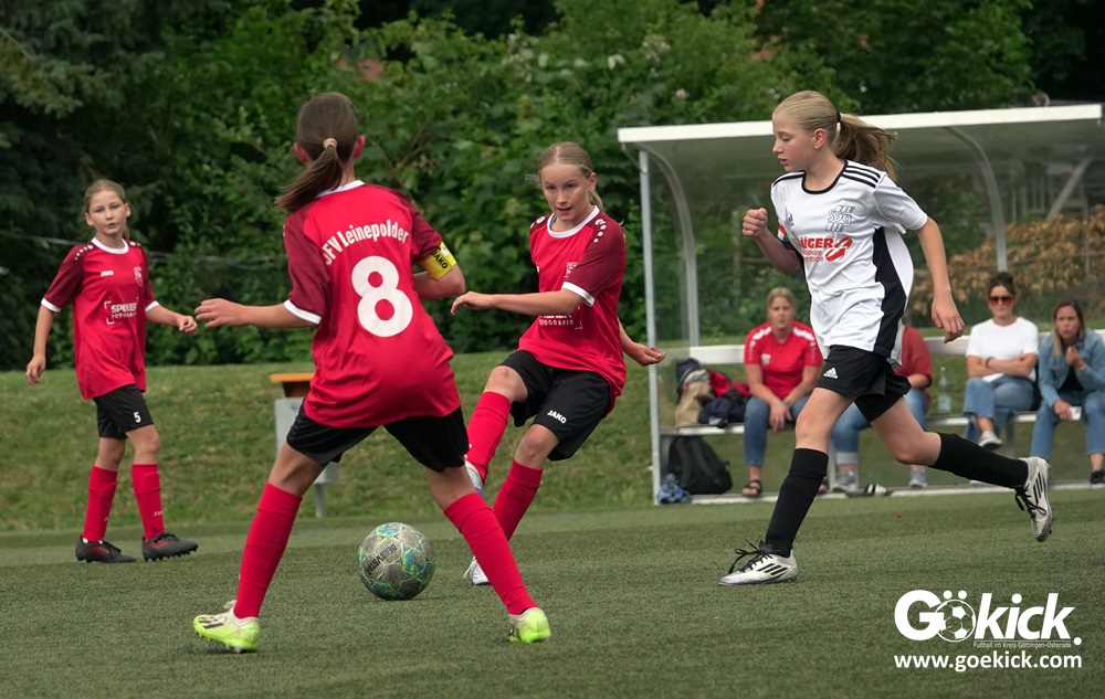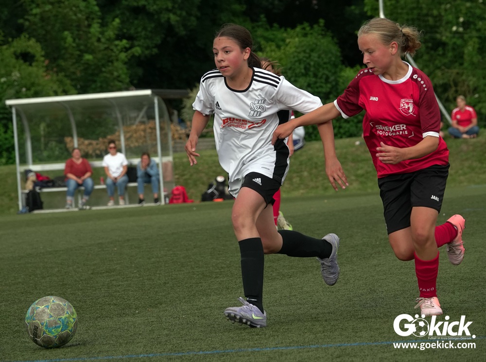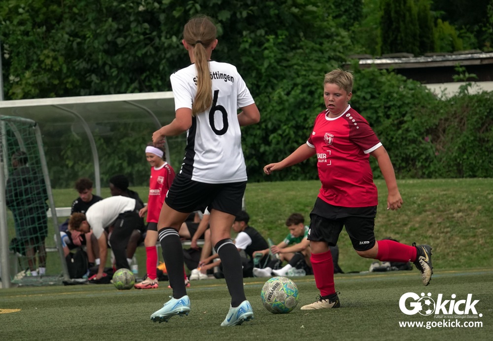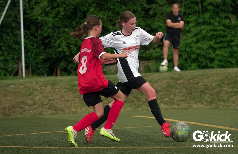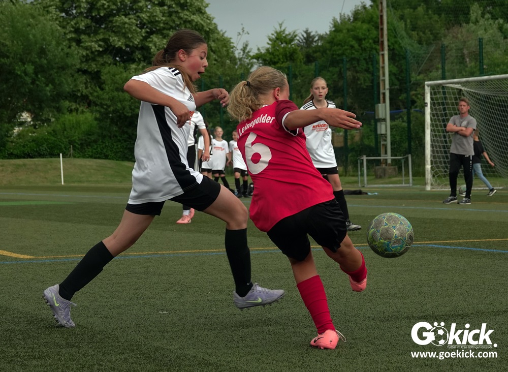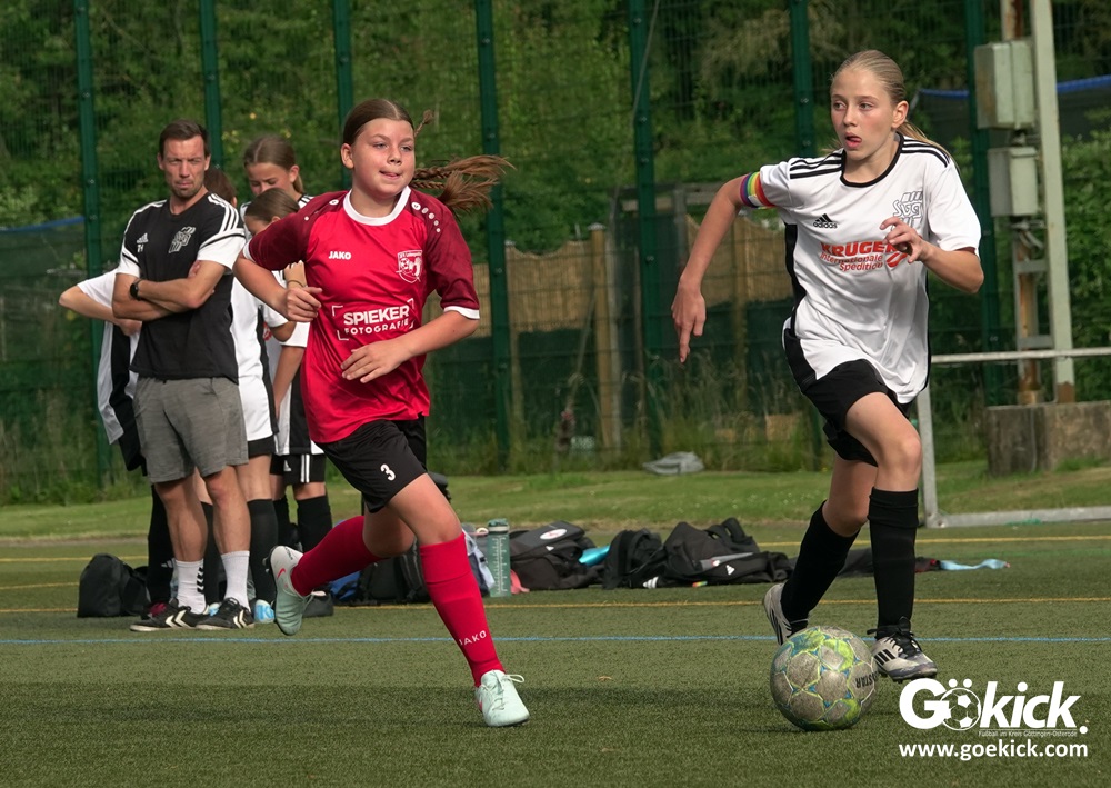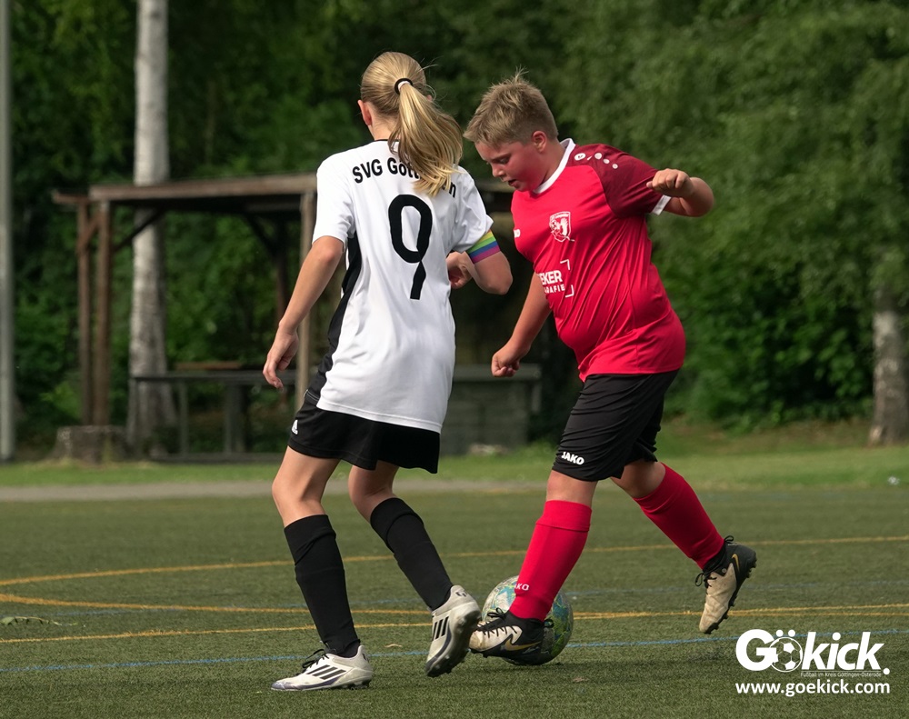 Die SVG besiegte am Dienstag auf dem eigenen Kunstrasenplatz den JFV Leinepolder mit 6:0 und übernahm selbst die Tabellenführung. Fest stand: Sollte der RSV Geismar am Mittwoch mit mehr als zehn Toren gegen das punktlose Schlusslicht TSV Nesselröden II gewinnen, dann dürfte das Team aus Geismar die Meisterschaft feiern. Doch es reichte für den RSV nur zum 10:0. Somit feierte die SVG Göttingen nur aufgrund eines einzigen Tores die Meisterschaft in der D-Mädchen-Kreisliga. Glückwunsch!