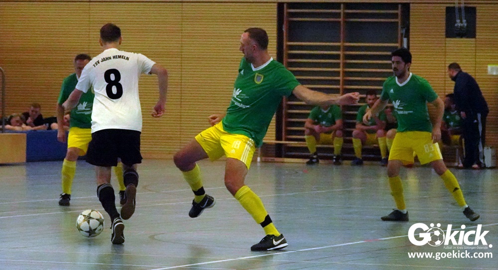 Im vergangenen Winter starteten nach den politischen Maßnahmen im Zuge der Corona-Krise die ersten Hallenturniere in unserer Region nach fast drei Jahren Pause. Der damals erste Turniersieger war die zweite Mannschaft des TSV Jahn Hemeln beim Wettbewerb für Teams der 3. Kreisklasse im Rahmen des LeineCups der SG Niedernjesa in der Sporthalle Groß Schneen. Am Samstag-Morgen verteidigte die Mannschaft an gleicher Stelle diesen Triumph. Sie siegte beim Elektrotechnik Kornmüller-Cup 2023 mit 12 Punkten aus sechs Spielen vor den punktgleichen Teams der SG Ballenhausen/Groß Schneen II und des TSV Dramfeld II aufgrund der besseren Tordifferenz.
