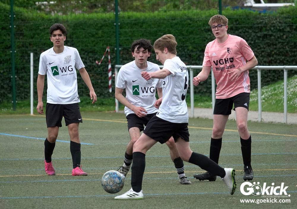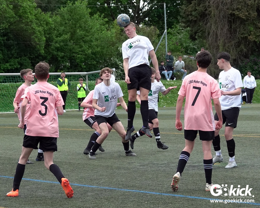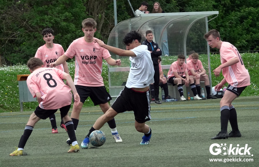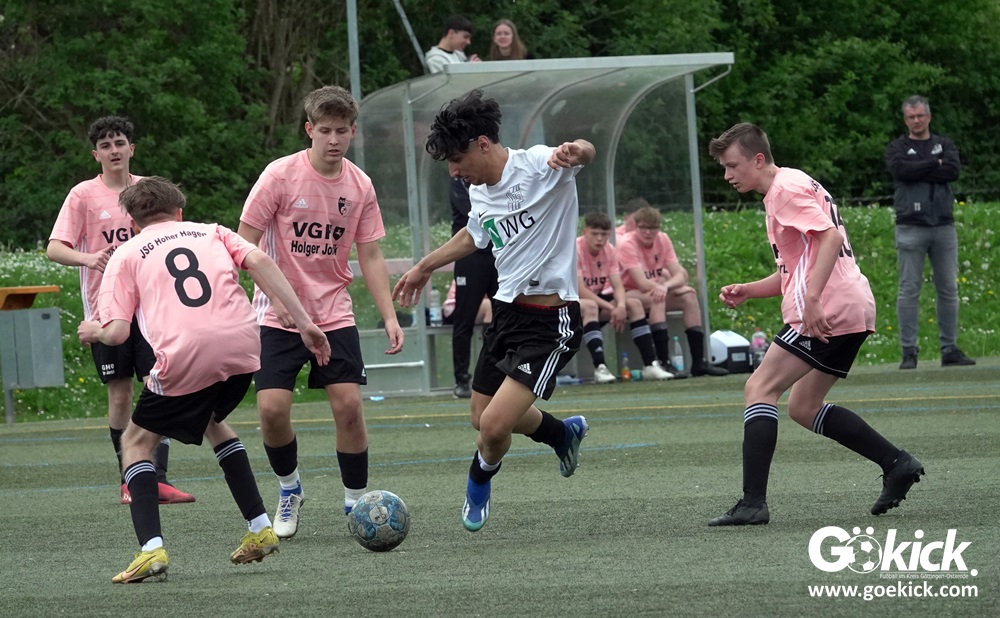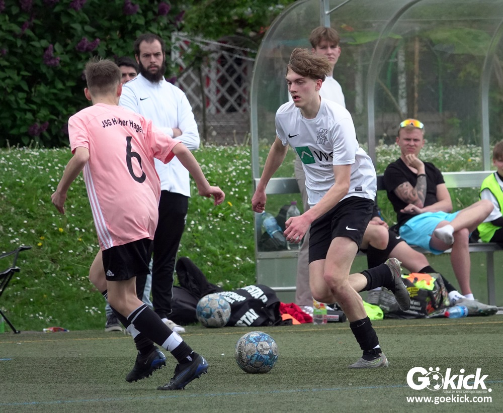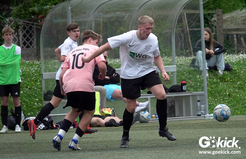 Es war das mit Spannung erwartete Spitzenspiel der B-Jugend-Kreisliga Süd zwischen dem Tabellenzweiten SVG Göttingen und dem Anführer des Klassements, der JSG Hoher Hagen/Lindenberg Adelebsen. Nach einer unterhaltsamen Partie auf dem Kunstrasenplatz des KRÜGERPARKs am Sandweg siegte der Gast knapp, aber nicht unverdient mit 2:1 (2:0). Mit diesem Sieg baut die JSG aus dem Süd-Westen der Region ihren Vorsprung weiter aus, er beträgt jetzt fünf Punkte. Allerdings hat die SVG zwei Spiele weniger absolviert und könnte mit zwei Siegen noch an die Spitze springen.