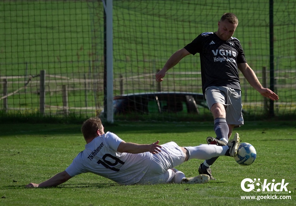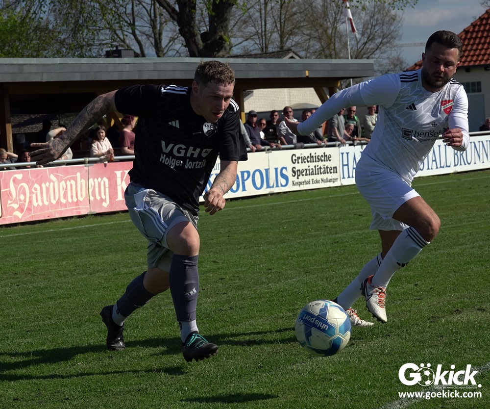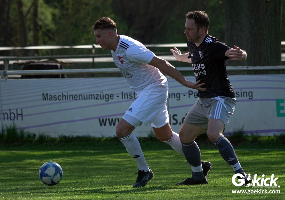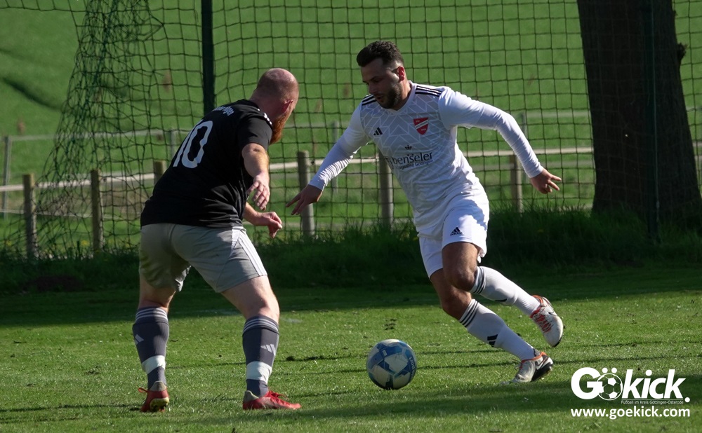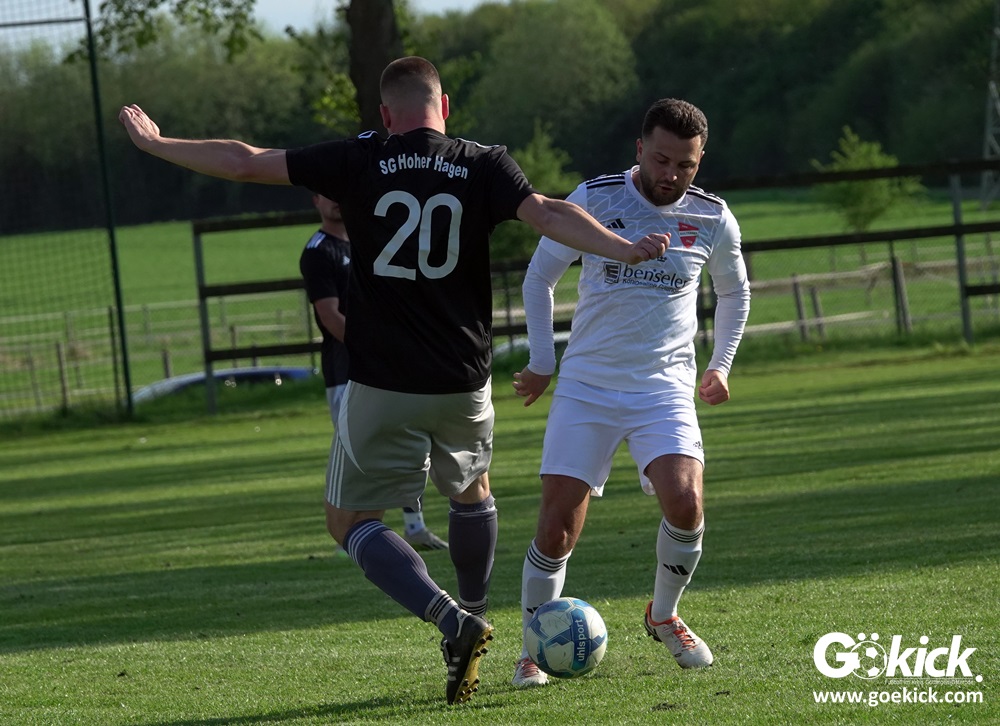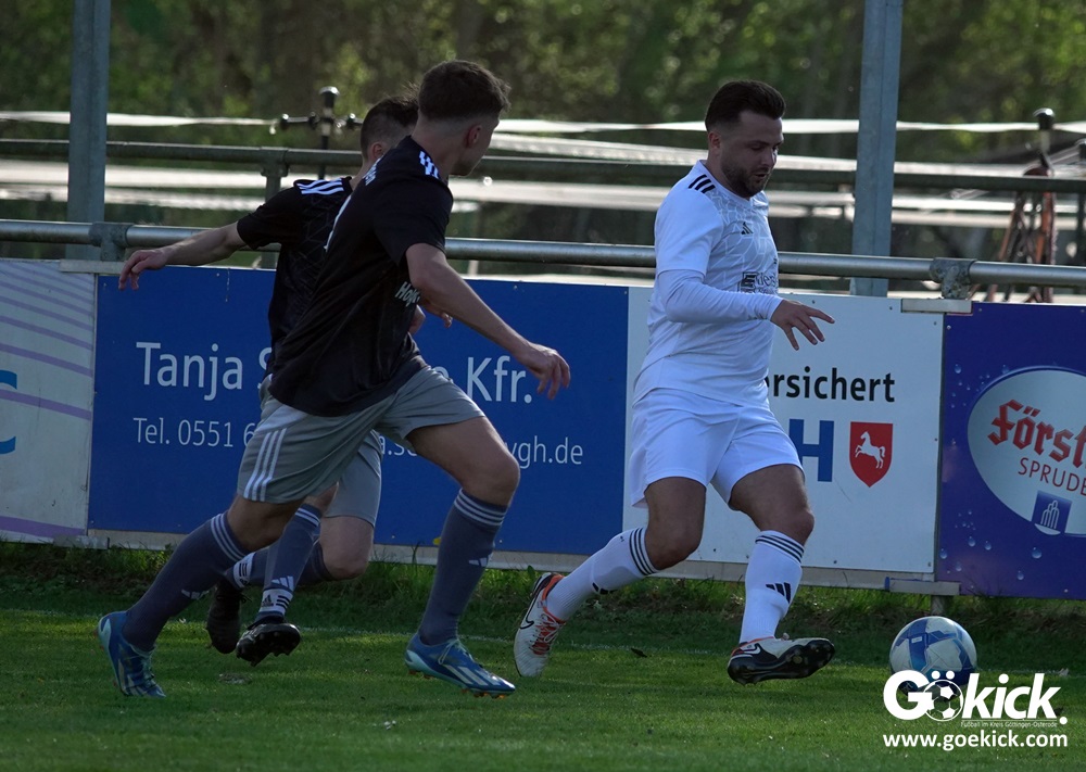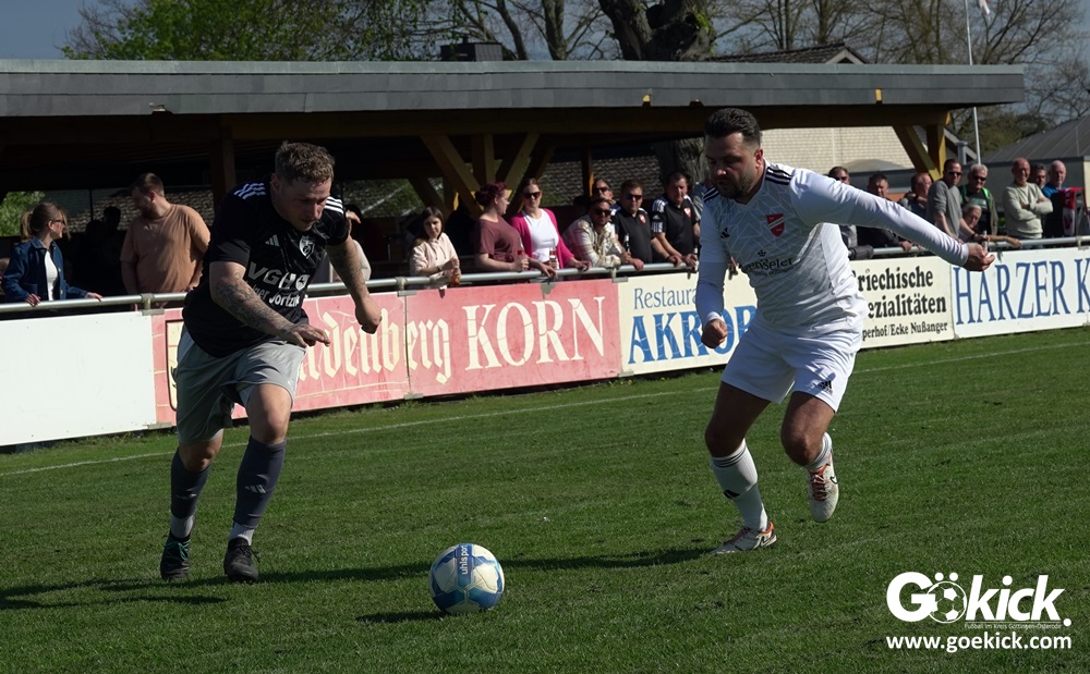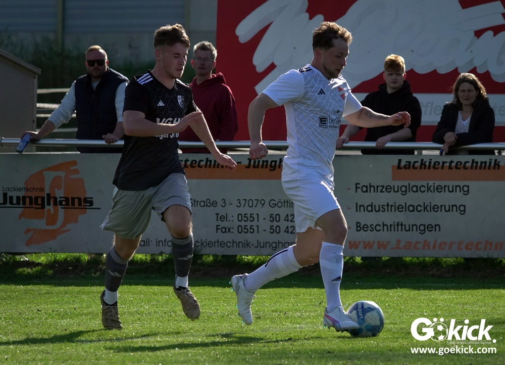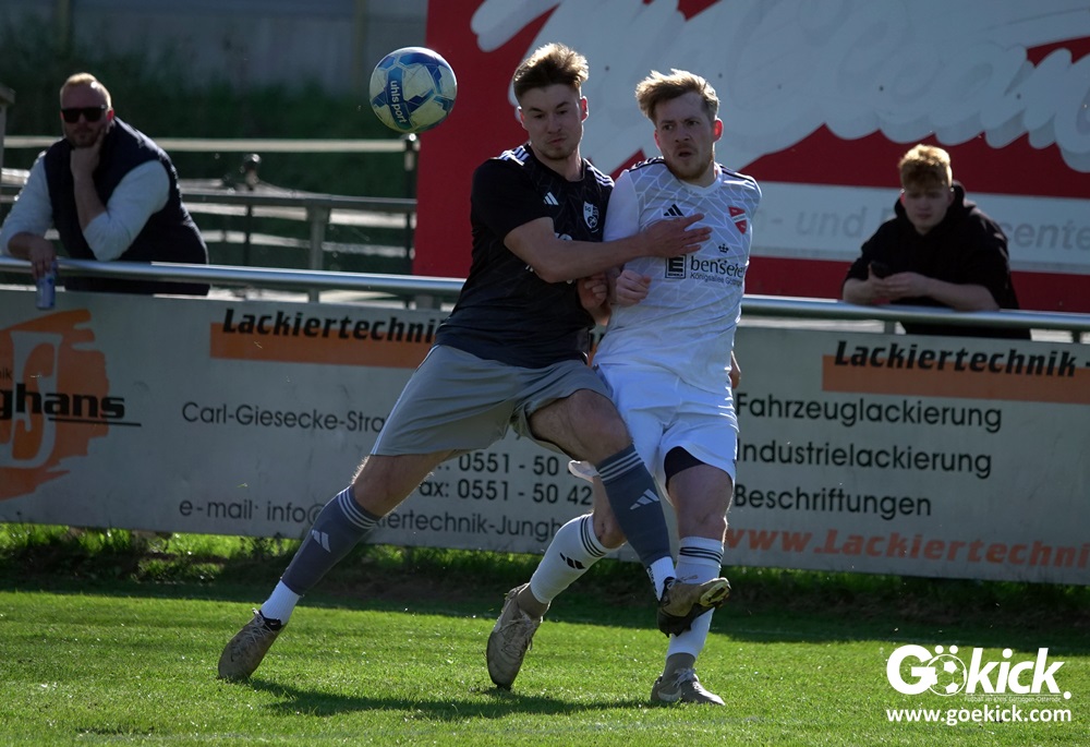Für den TSV begann das zweite Spitzenspiel in Folge – eine Woche zuvor war er mit 4:1 in Geismar siegreich – nach Wunsch. Nico Makowski köpfte nach acht Minuten zur Führung für die Hausherren ein. Nur drei Minuten später erhöhte Viktor Gerliz mit seinem starken linken Fuß auf 2:0. Weitere Treffer verhinderte vor allem Hoher Hagens Schlussmann Joshua Schouten. Kurz vor dem Seitenwechsel schickte der gut leitende Schiedsrichter Christian Schläger den Gäste-Spieler Nikolai-Simon Krause mit Gelb-Roter Karte zum Duschen. Dennoch blieb es bei der 2:0-Führung bis zur Halbzeitpause.