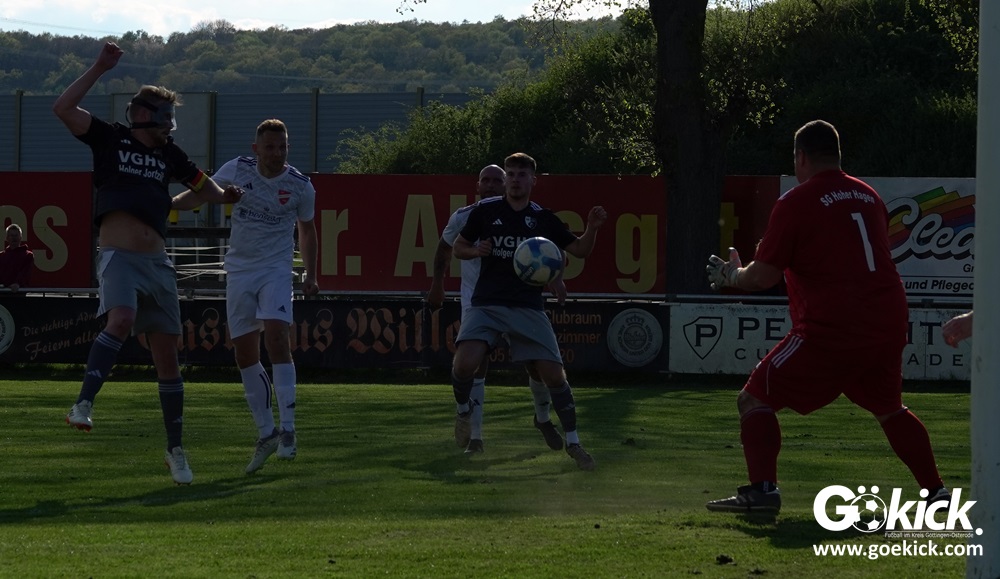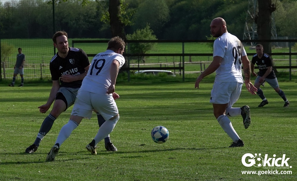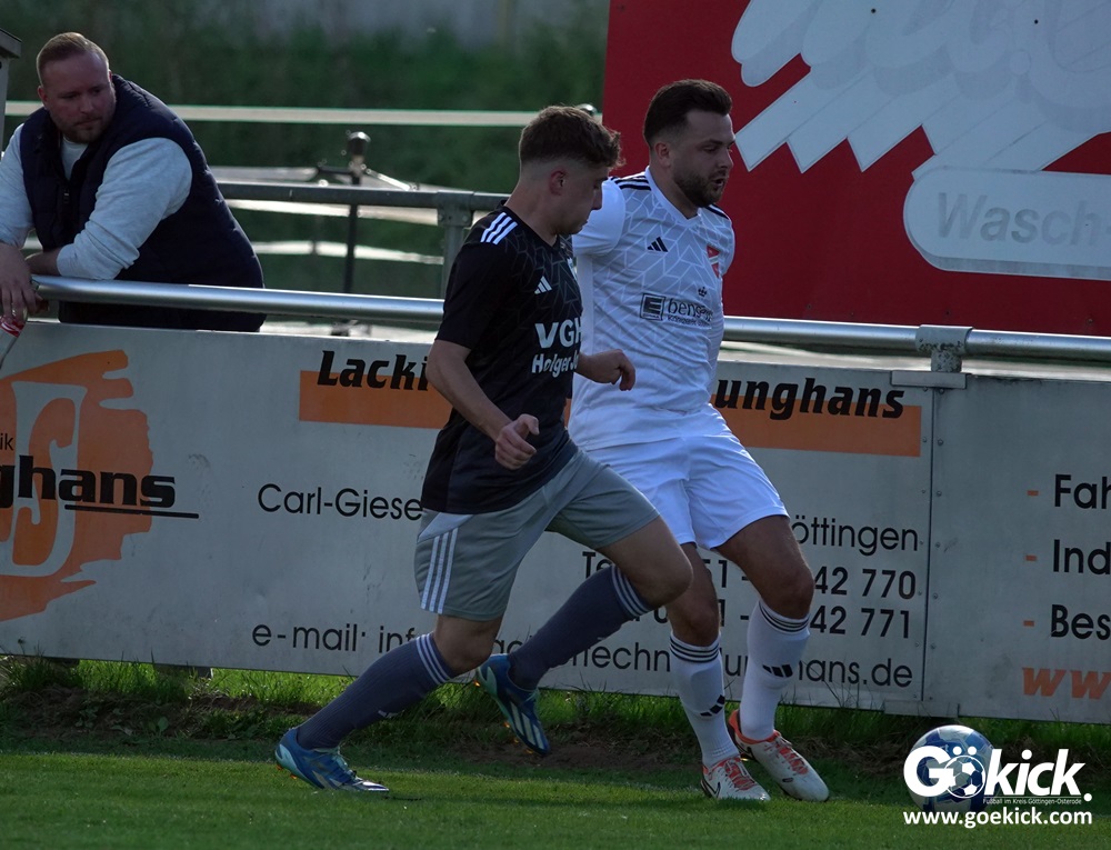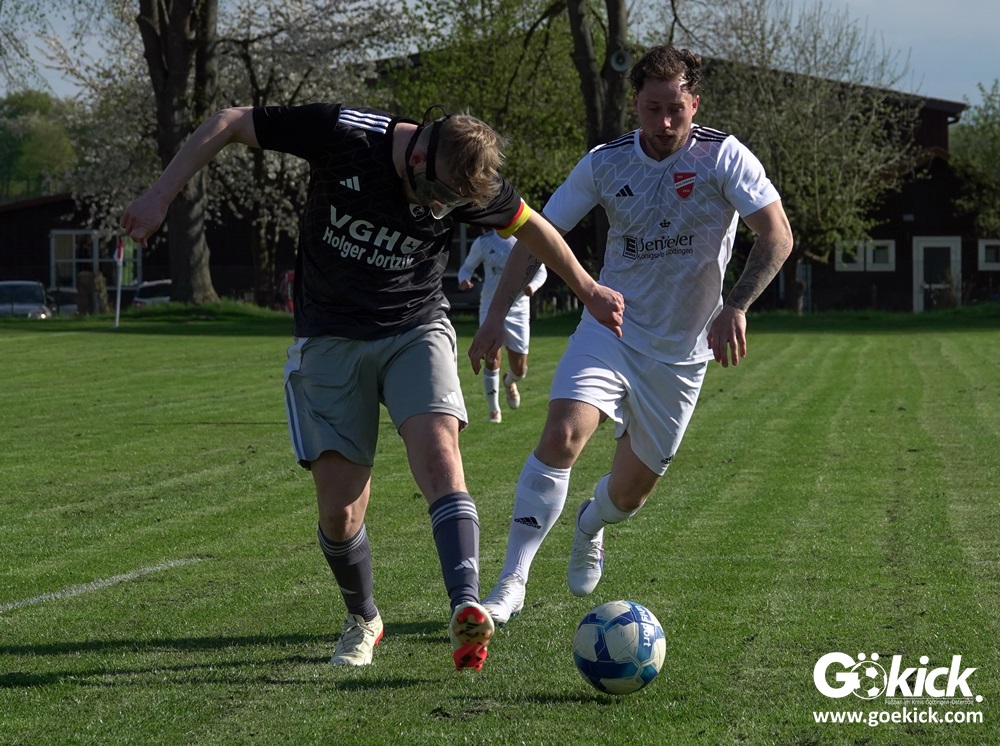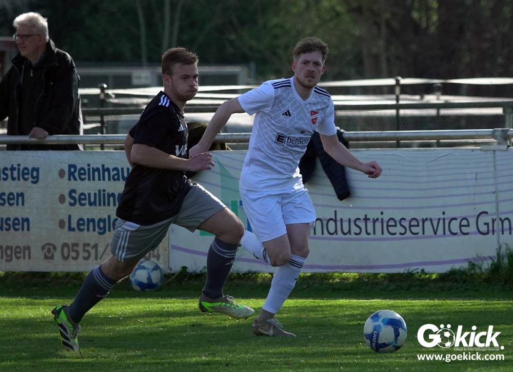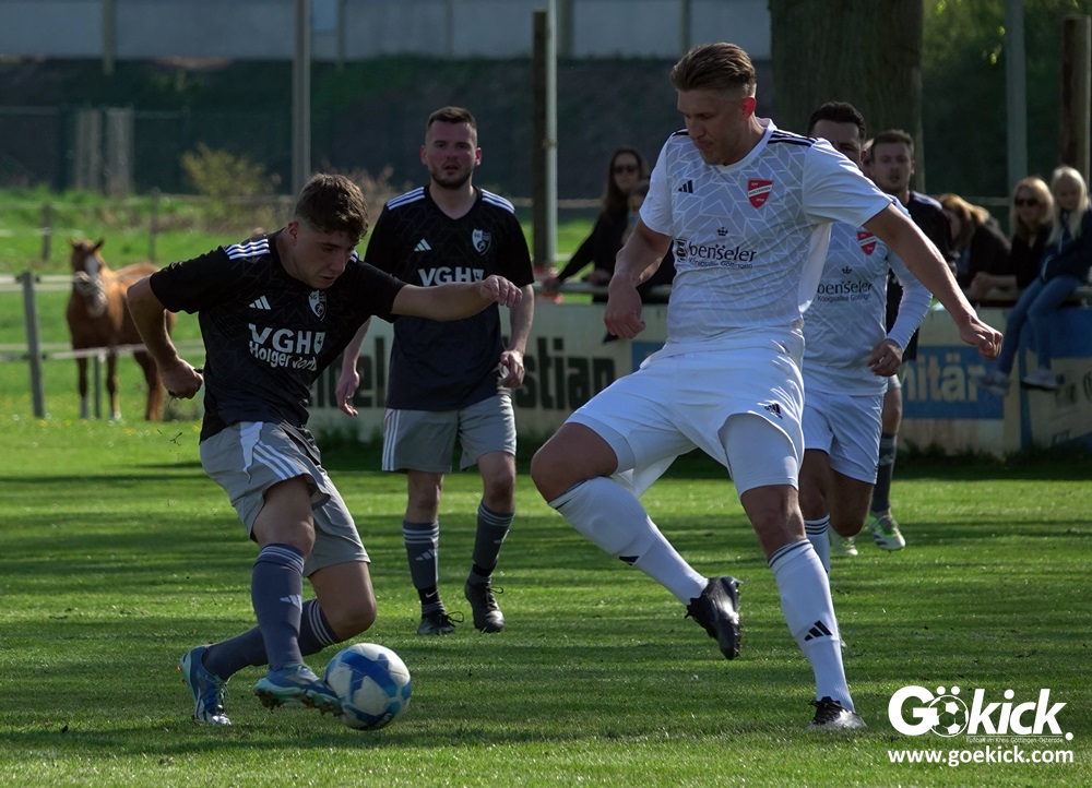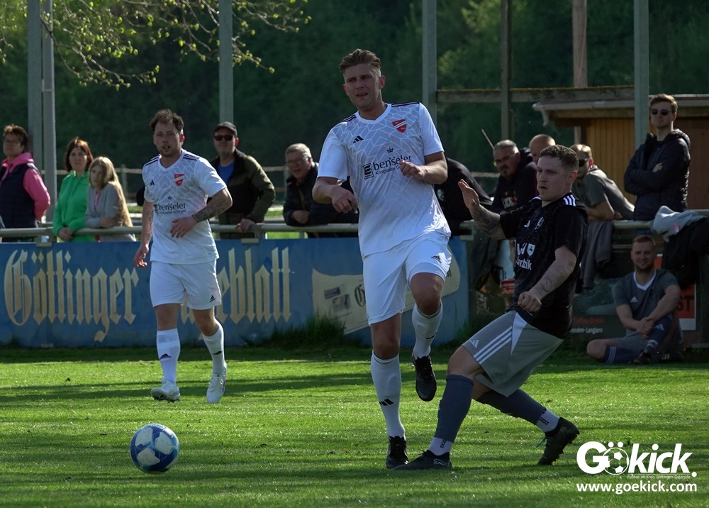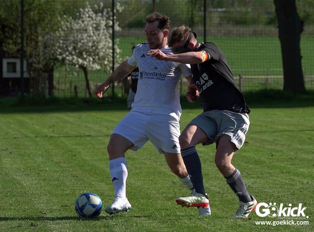 Für den TSV begann das zweite Spitzenspiel in Folge – eine Woche zuvor war er mit 4:1 in Geismar siegreich – nach Wunsch. Nico Makowski köpfte nach acht Minuten zur Führung für die Hausherren ein. Nur drei Minuten später erhöhte Viktor Gerliz mit seinem starken linken Fuß auf 2:0. Weitere Treffer verhinderte vor allem Hoher Hagens Schlussmann Joshua Schouten. Kurz vor dem Seitenwechsel schickte der gut leitende Schiedsrichter Christian Schläger den Gäste-Spieler Nikolai-Simon Krause mit Gelb-Roter Karte zum Duschen. Dennoch blieb es bei der 2:0-Führung bis zur Halbzeitpause.