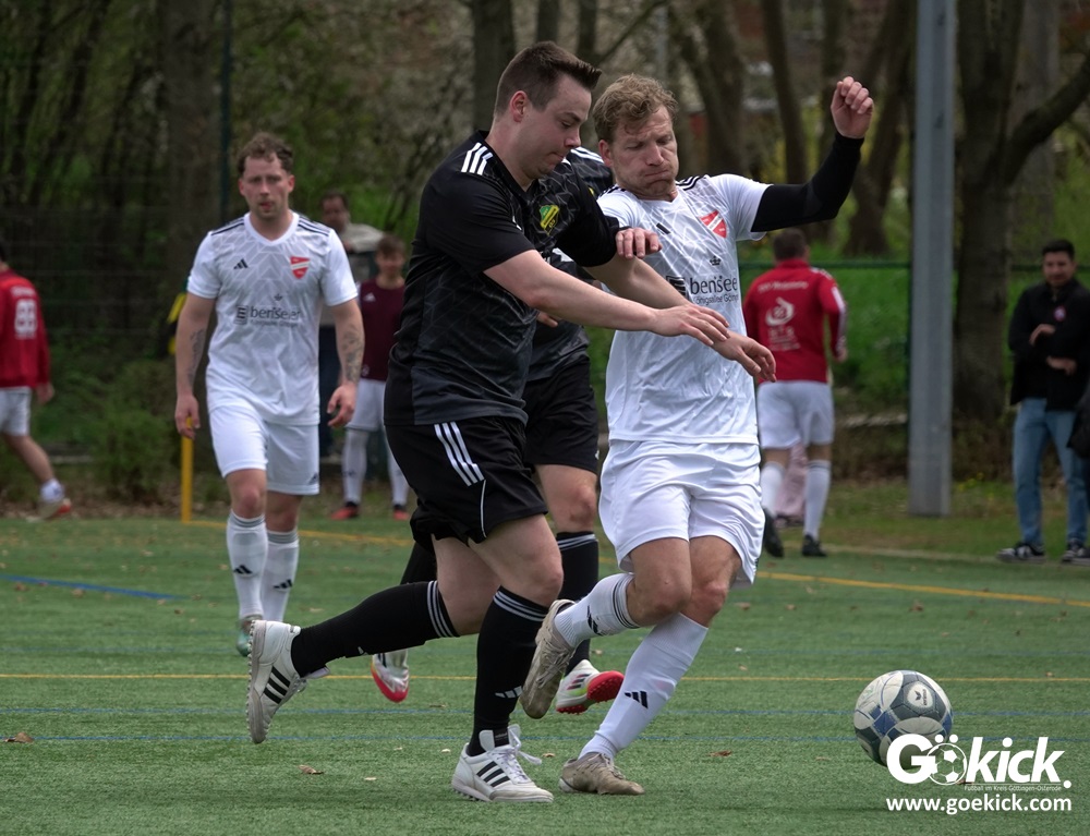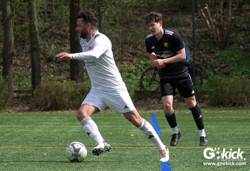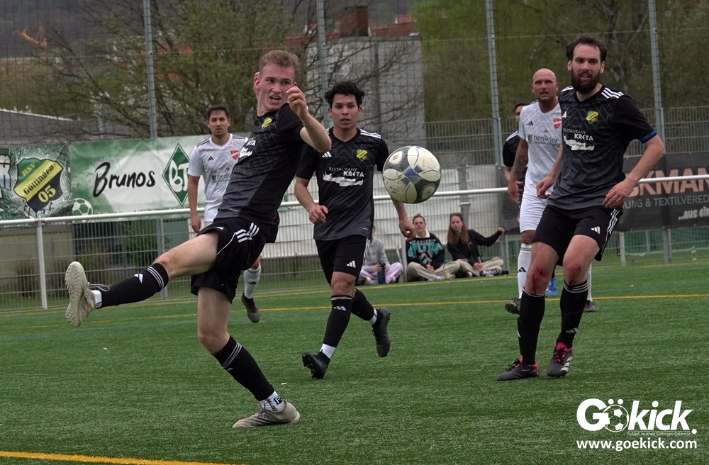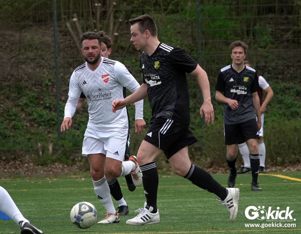 Beim Spitzenspiel auf dem Kunstrasenplatz begann Geismar II sehr aggressiv und lief den Gast frühzeitig an. Doch als der Anfangsdruck vorüber war, übernahm der erfahrende Gast die Initiative. Niclas Jahn erzielte nach 14 Minuten die Gäste-Führung. Miguel Bodenbach-Martin legte nach 26 Minuten das 2:0 nach und schließlich erhöhte Niclas Jahn mit seinem zweiten Tor drei Minuten vor dem Halbzeitpfiff auf 3:0. „RSV Geismar kam mit dem festen Willen in die Partie, uns zu zeigen, wer hier zu Hause spielt. Sie haben die ersten Minuten sehr aggressiv gespielt und versucht, dem Spiel ihren Stempel aufzudrücken. Aber nach zehn Minuten haben wir ich das Spiel gefunden. Nach dem verdienten 1:0 haben wir dann auf dem Platz alles unter Kontrolle gehabt. Wir sind leistungsgerecht mit 3:0 in die Halbzeitpause gegangen. Wir haben wirklich eine tolle erste Halbzeit gespielt.“, urteilt ein zufriedener Enrico Weiß.